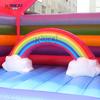 2. Coloque una alfombra (o tela de PVC, o tela de rayas de color) en el suelo y luego coloque el modelo inflable empaquetado en el centro del suelo.