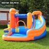 5. Conecte la bomba de aire a la fuente de alimentación, encienda el interruptor y la bomba de aire comenzará a insuflar aire en el modelo de aire. Después de unos 5-10 minutos, el modelo de aire estará completamente inflado y se mantendrá erguido. Después de revisar todo alrededor, los niños pueden subir y jugar.