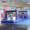 2. Coloque una alfombra (o tela de PVC, o tela de rayas de color) en el suelo y luego coloque el modelo inflable empaquetado en el centro del suelo.