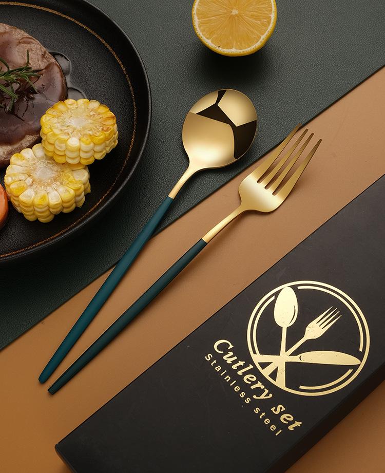 Caja de Regalo de Vajilla de Acero Inoxidable Juego de Cuchillo y Tenedor para Bistec Portugués Cuchara Palillos Caja de Regalo de Vajilla Occidental de Dos Piezas
