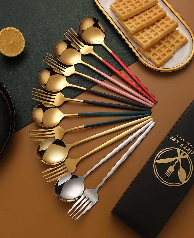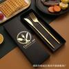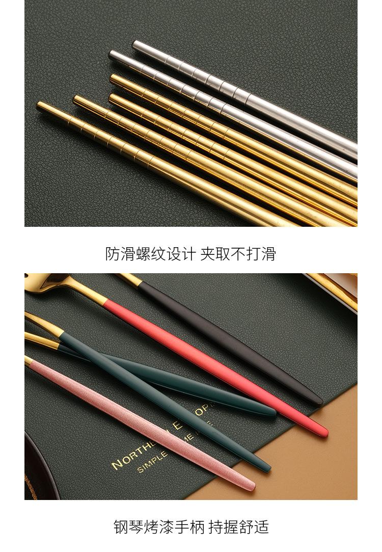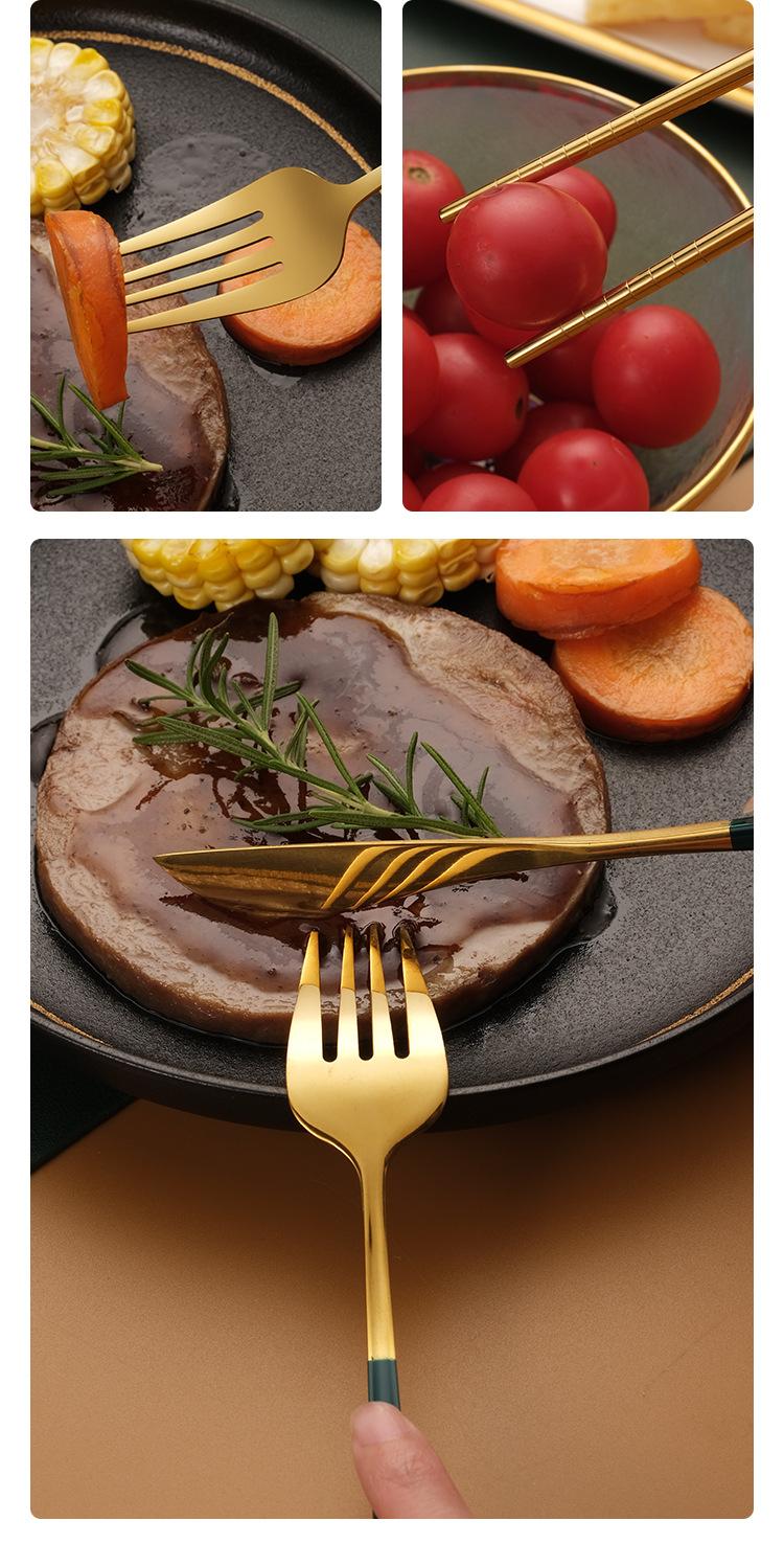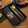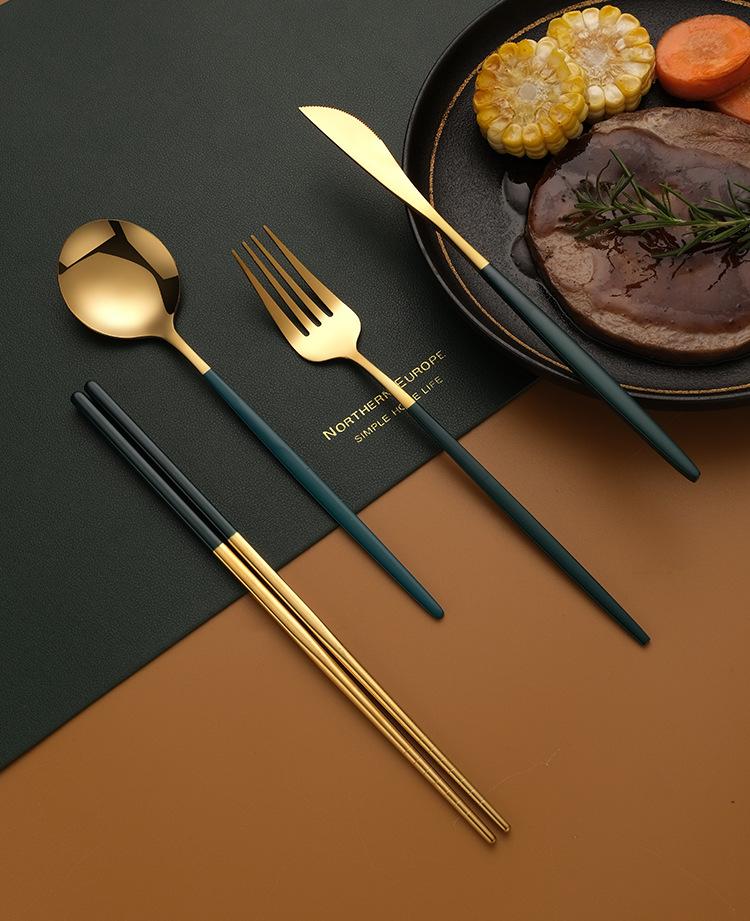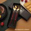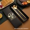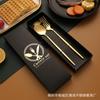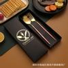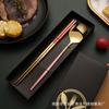 Silver-two-piece set of spoons and chopsticks, Gold-two-piece set of spoons and chopsticks, Black gold-two-pie...