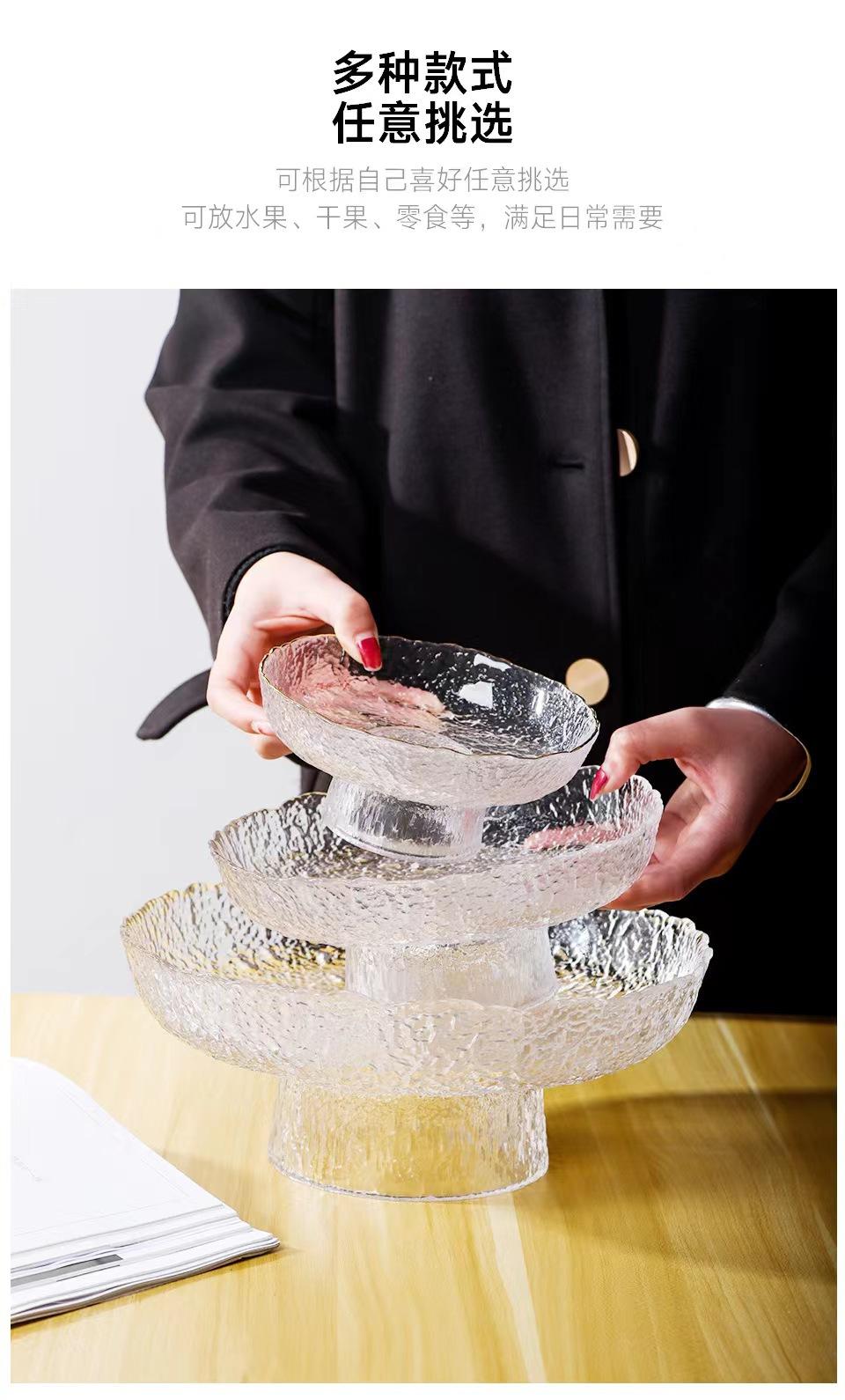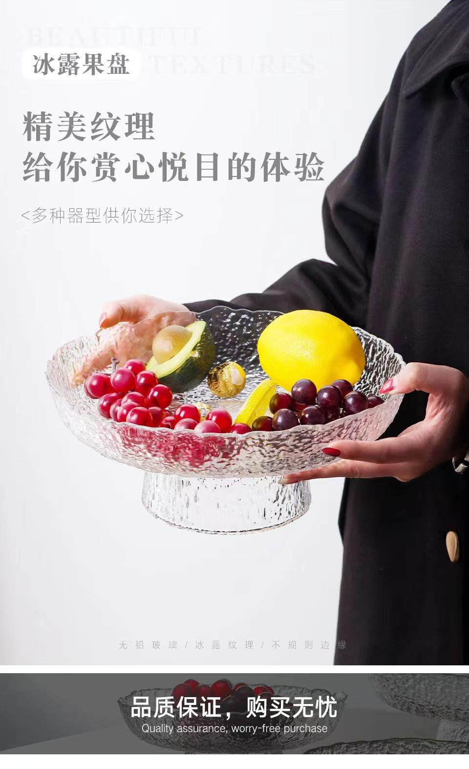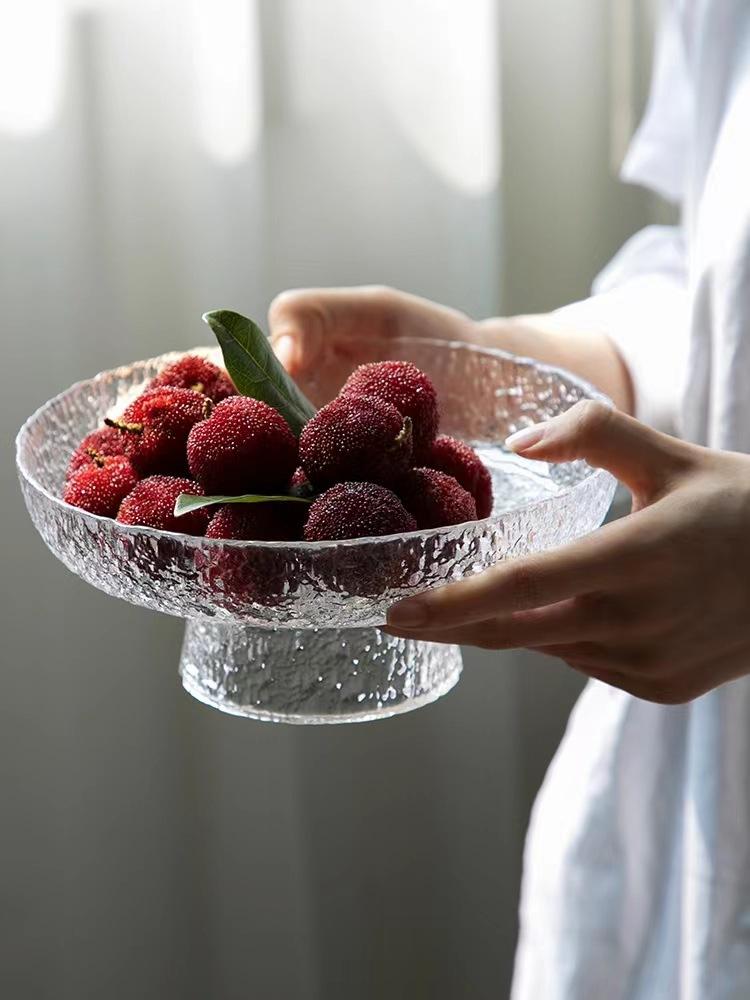 Plato de Frutas de Cristal Moderno Estilo Japonés para Uso Doméstico, Bandeja Creativa de Lujo Ligero para Exhibición de Frutas, Bandeja para Bocadillos para Frutas y Verduras Secas