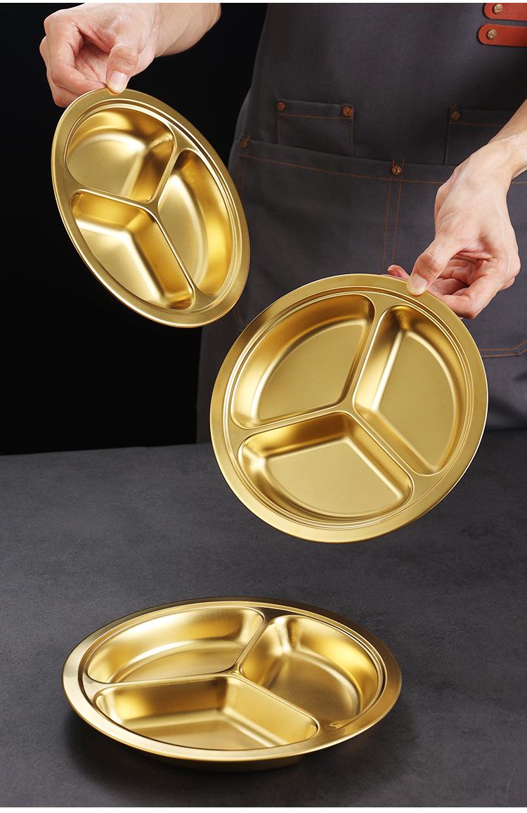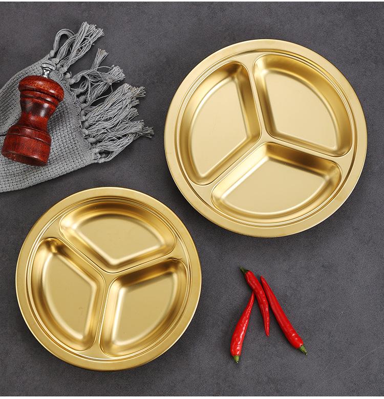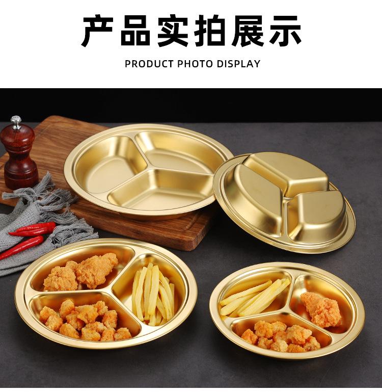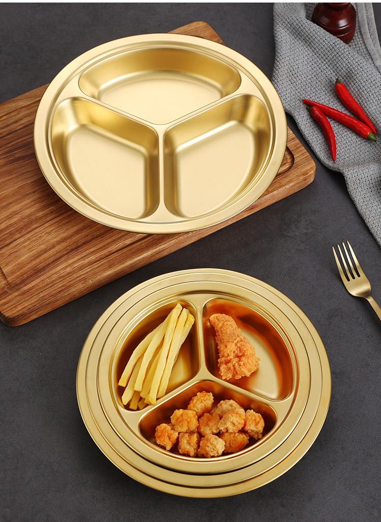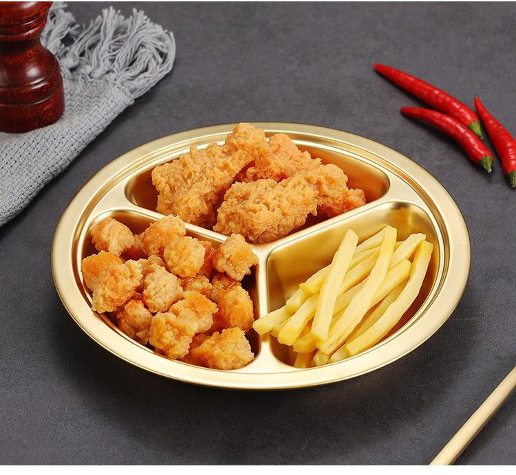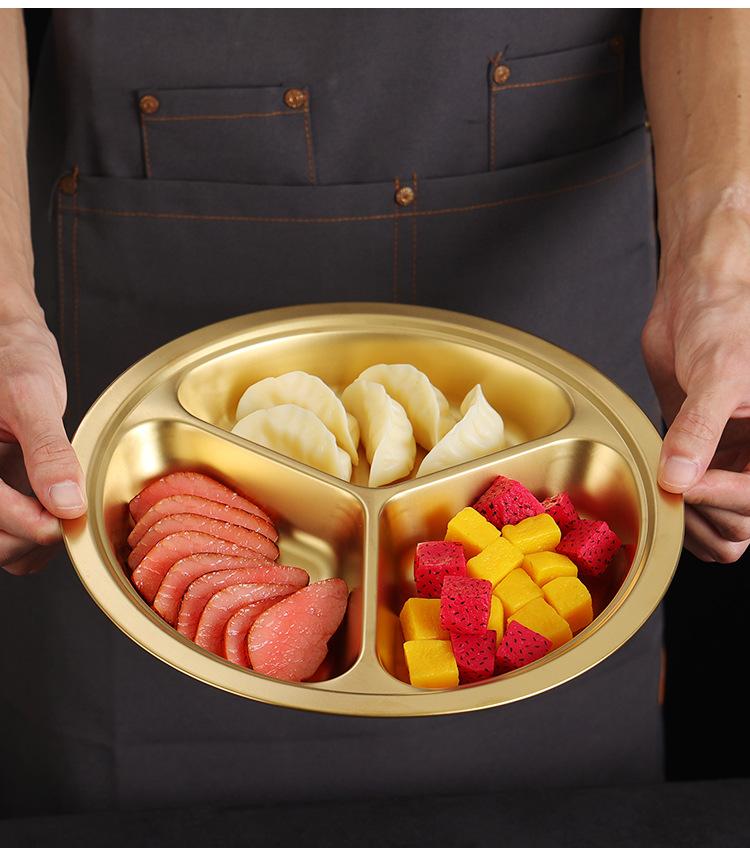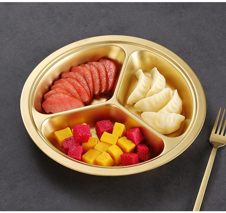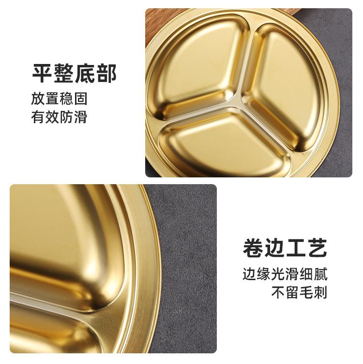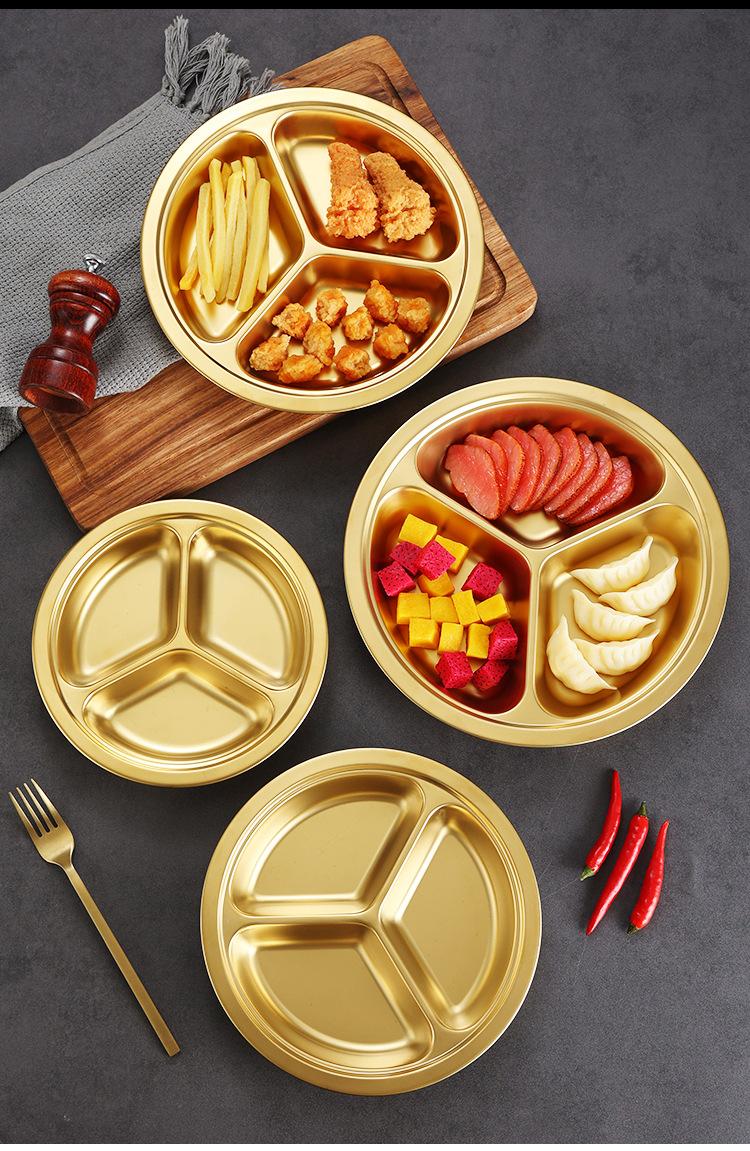 Plato Redondo Dorado de Acero Inoxidable 304 para Niños Jardín de Niños Lonchera para Bebé Personal de Restaurante Estudiante Plato Dividido