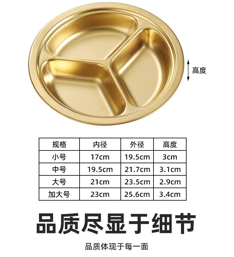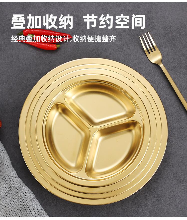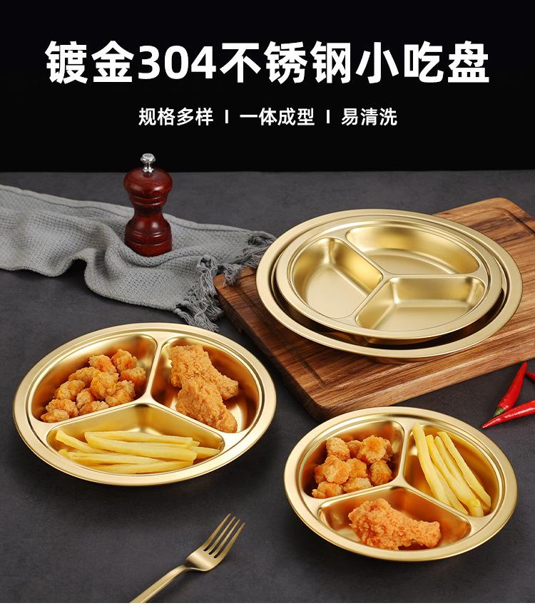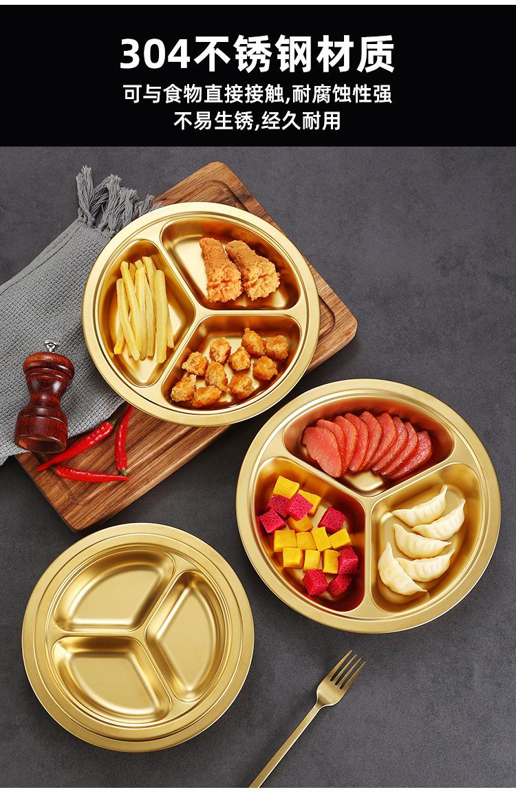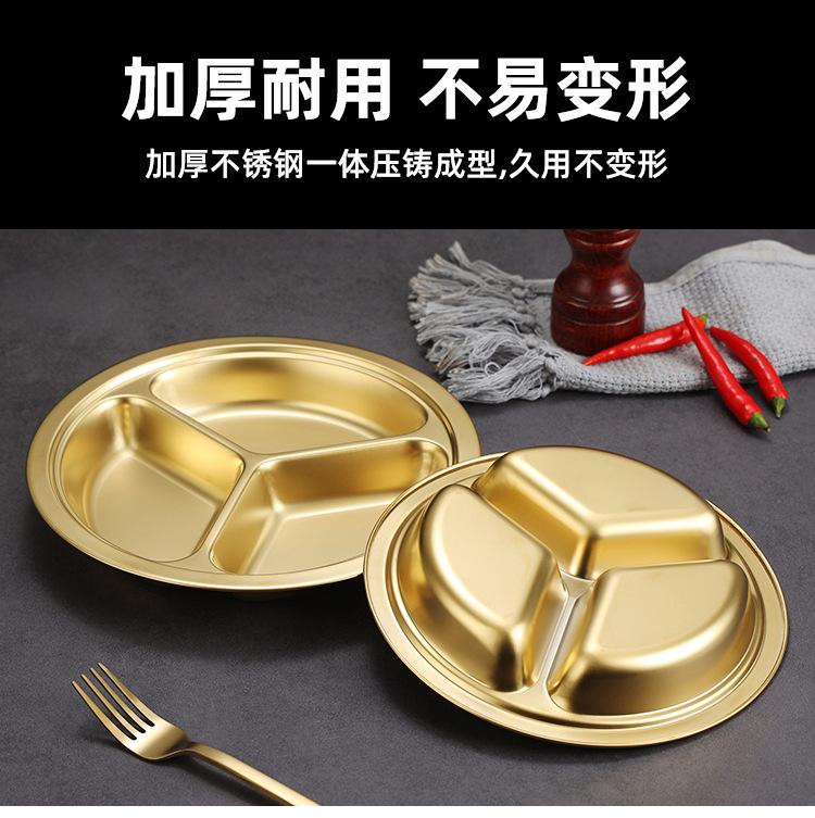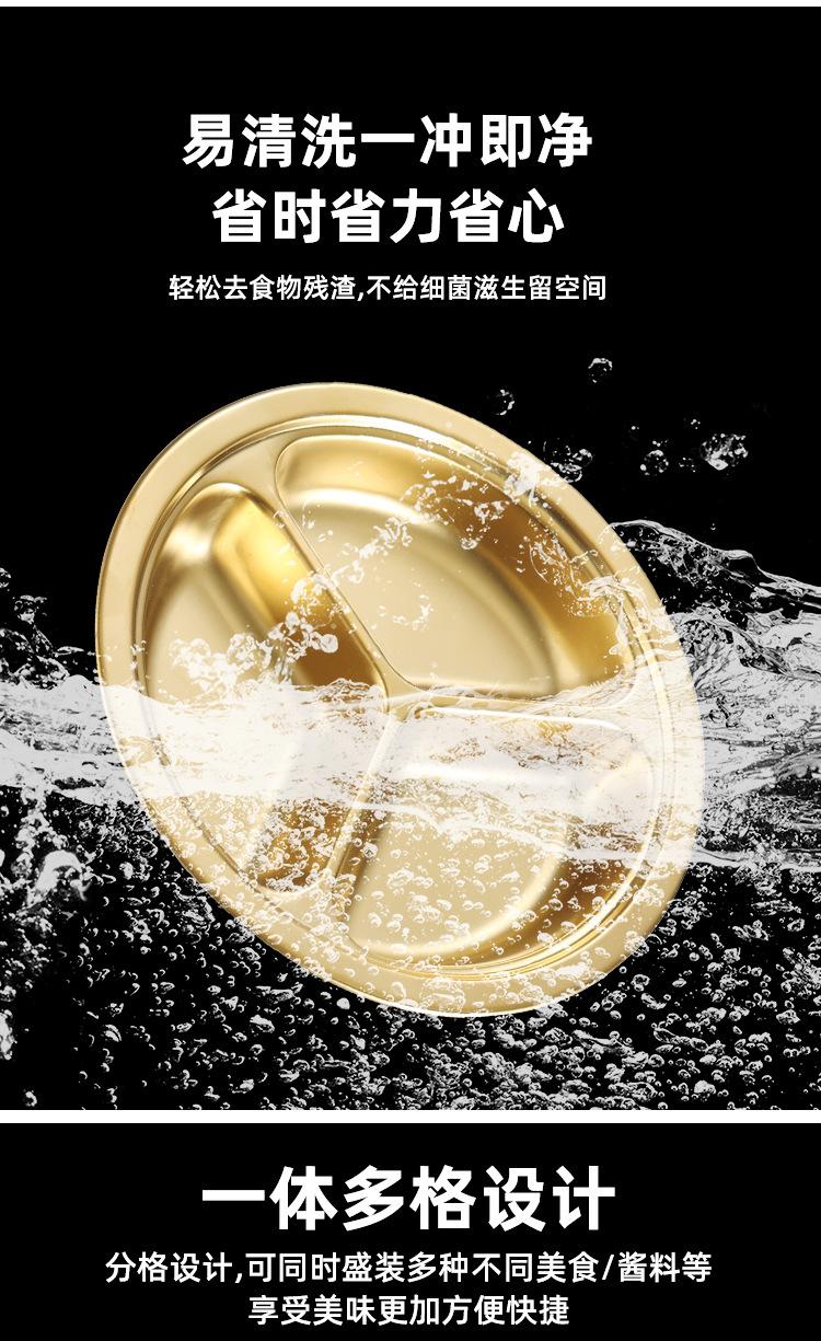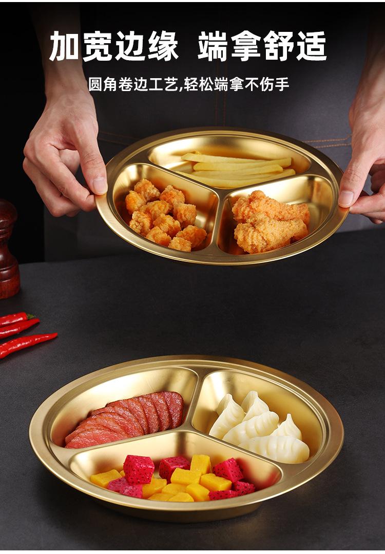 Plato Redondo Dorado de Acero Inoxidable 304 para Niños Jardín de Niños Lonchera para Bebé Personal de Restaurante Estudiante Plato Dividido