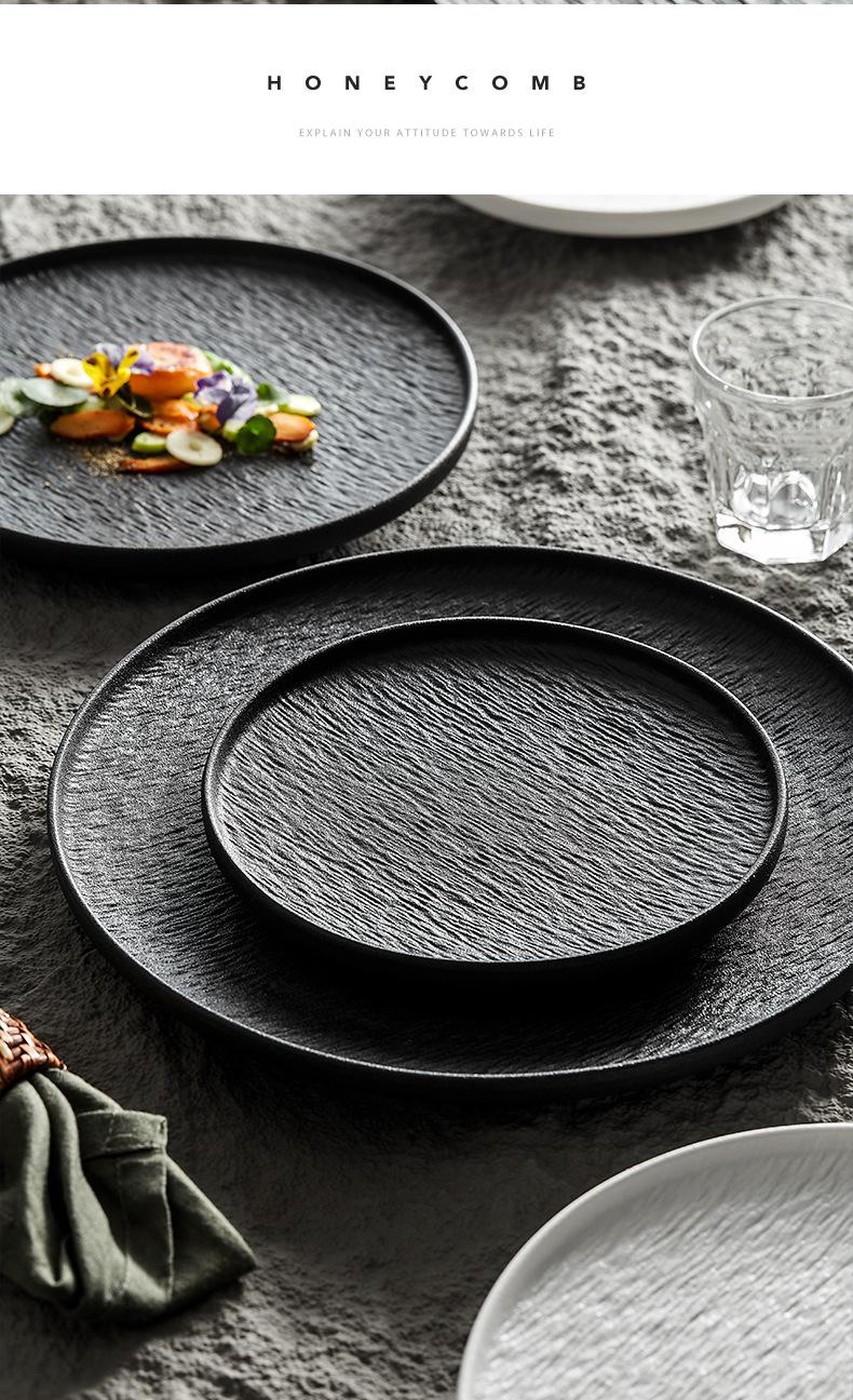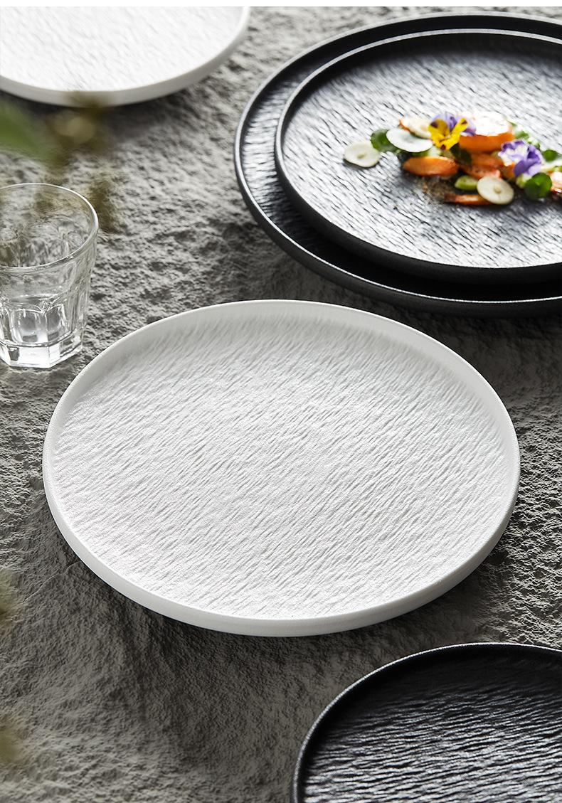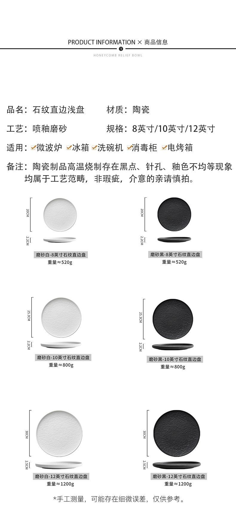 Frosted white - 8inch -stone pattern straight edge disk, Matte black - 8inch - stone pattern straight edge pla...