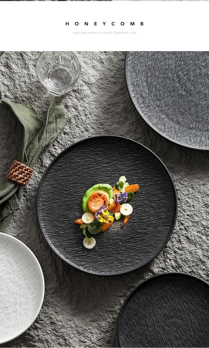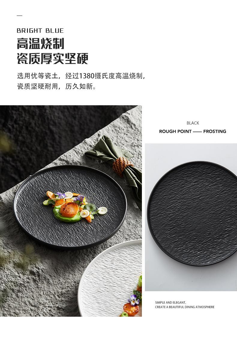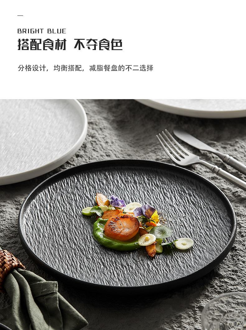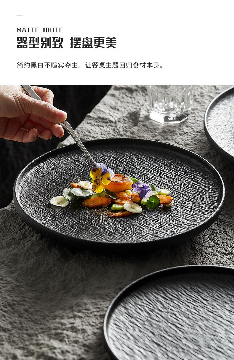 Frosted white - 8inch -stone pattern straight edge disk, Matte black - 8inch - stone pattern straight edge pla...