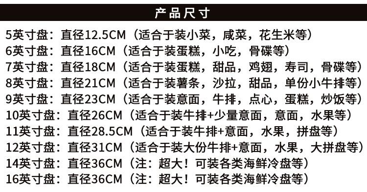 5inch flat plate 12.5cm, 6inch flat plate 16cm, 7inch flat plate 18cm, 8inch flat plate 20.3cm, 9inch flat pla...