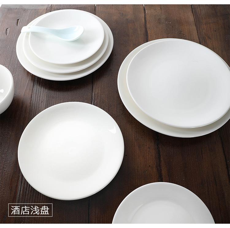 Plato de cerámica para el hogar, plato frío, plato blanco puro para carne occidental, plato plano para restaurante de hotel, plato redondo