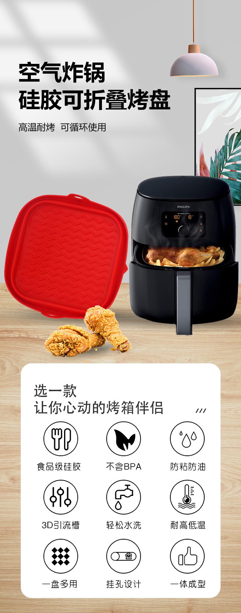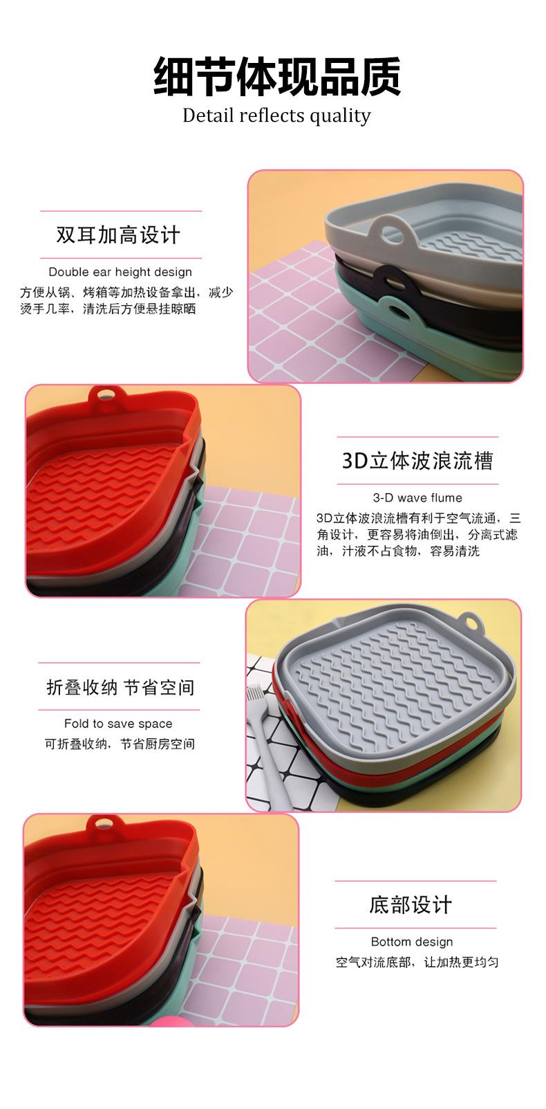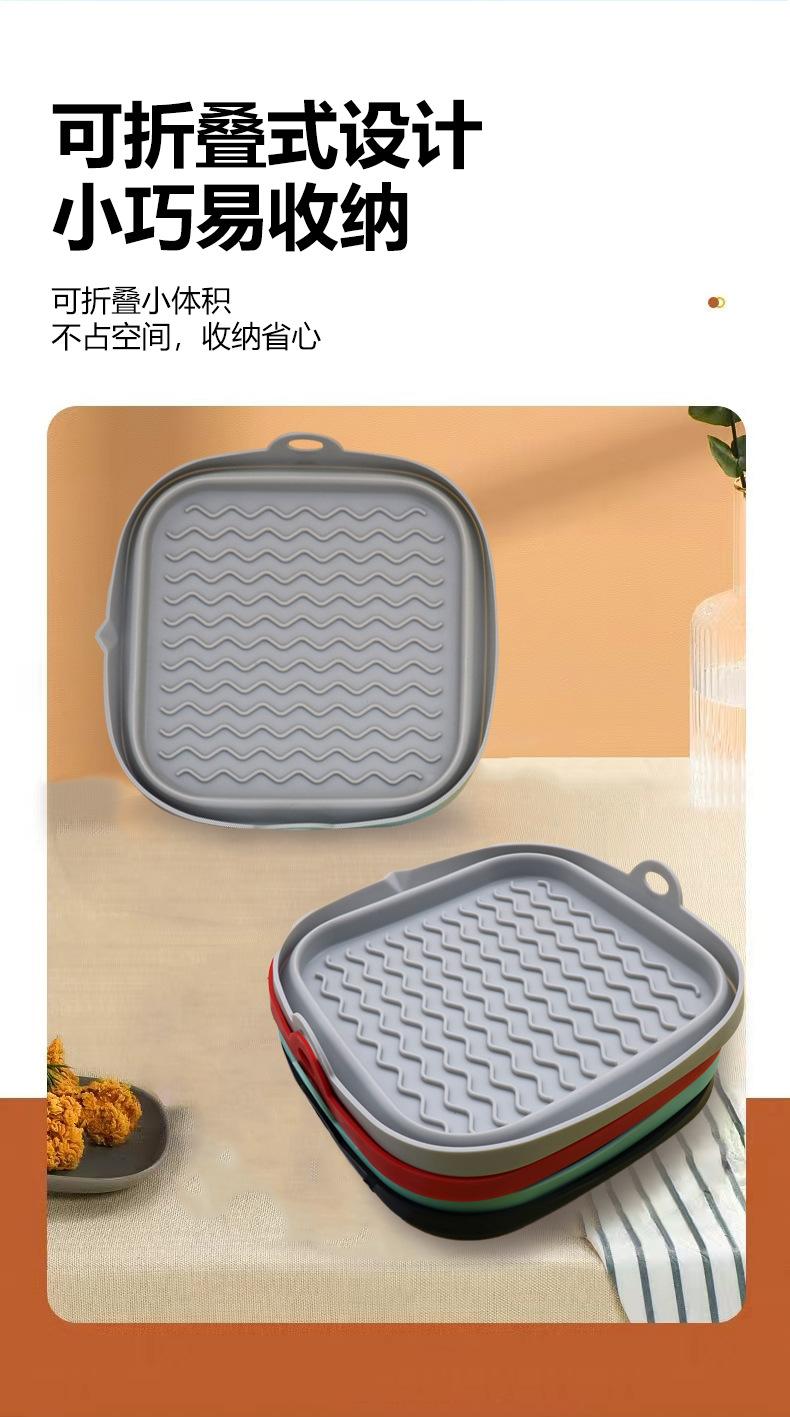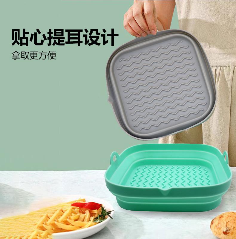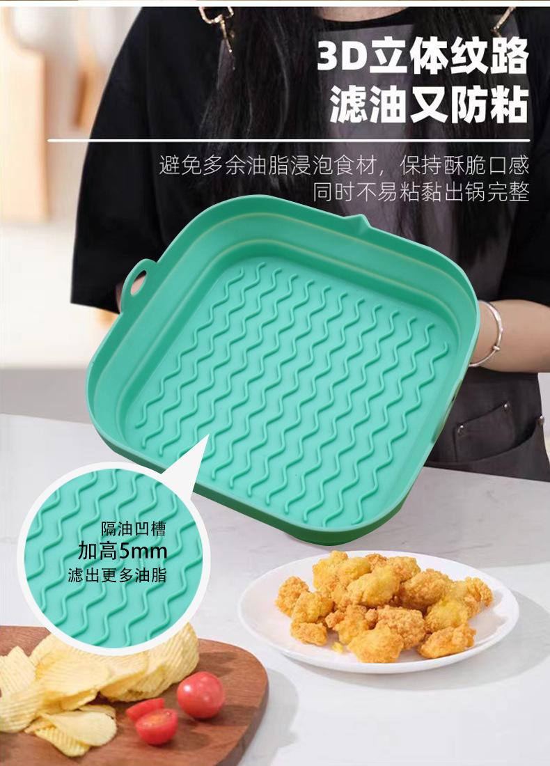 Bandeja para hornear de silicona cuadrada explosiva transfronteriza, antiadherente, de grado alimenticio, para uso doméstico, bandeja para freidora de aire de alta temperatura, para horno microondas