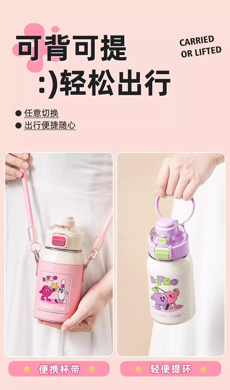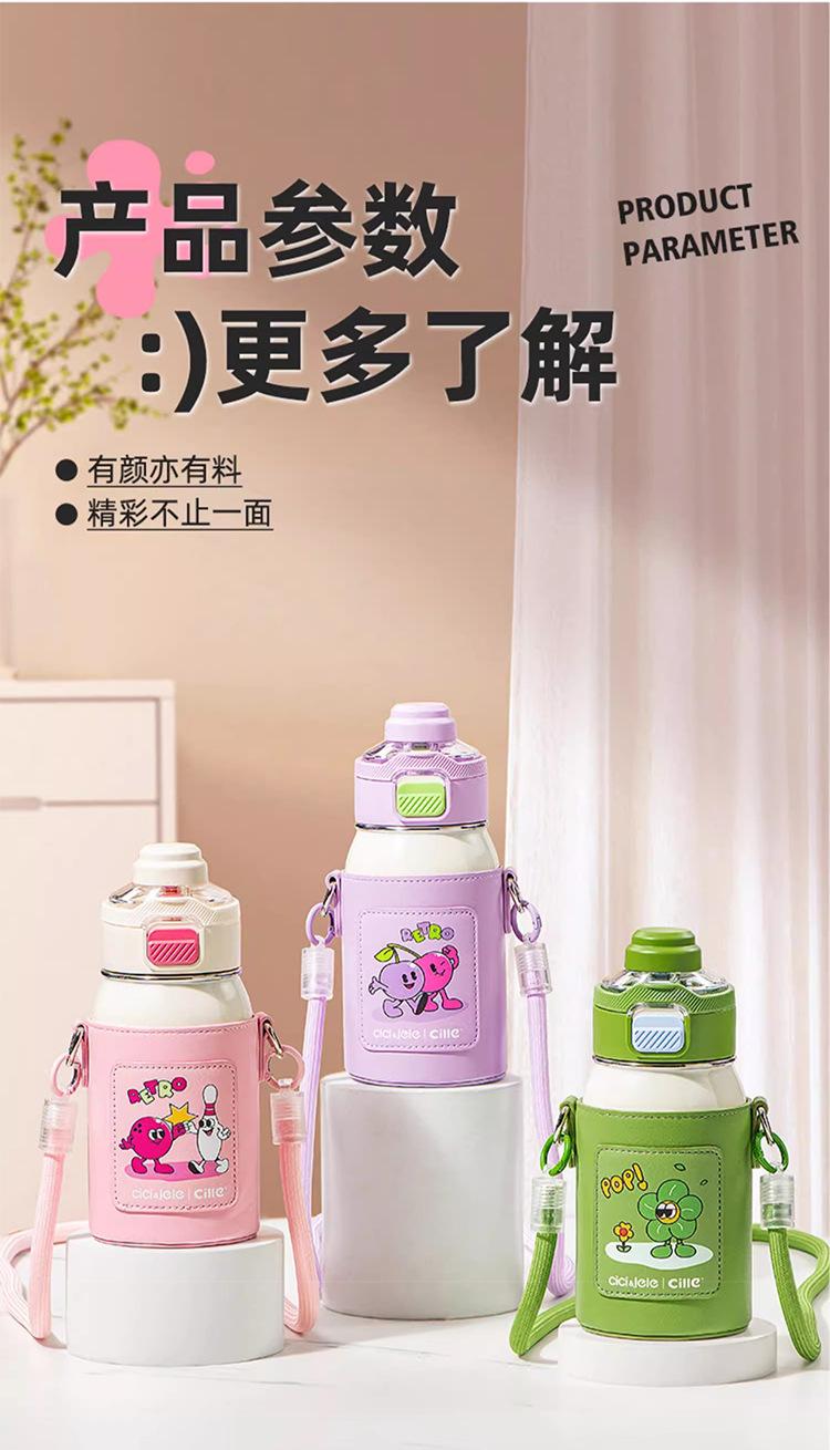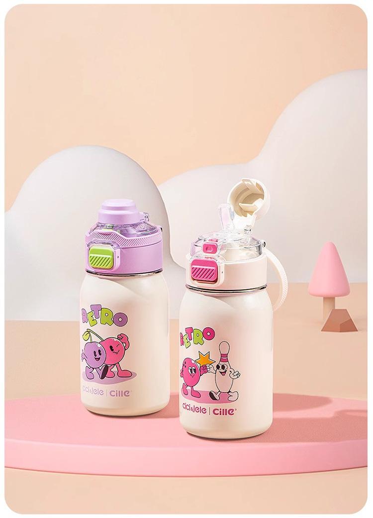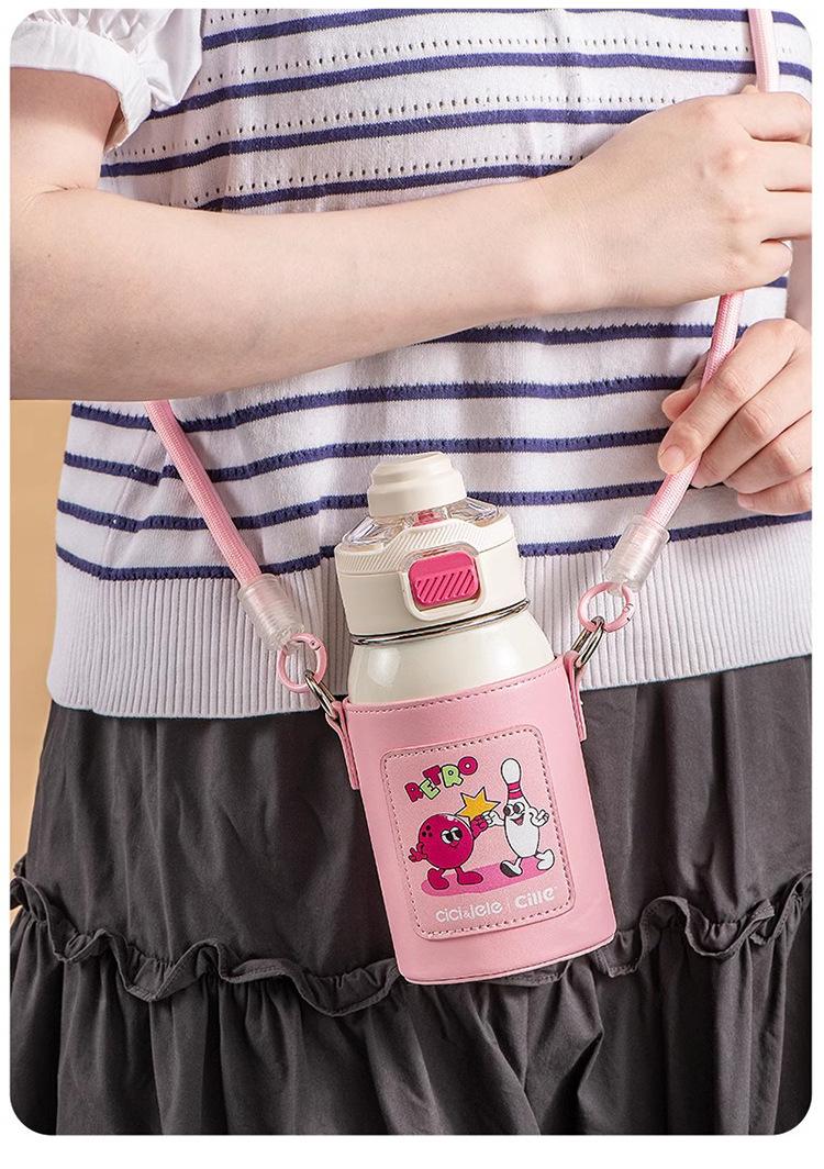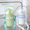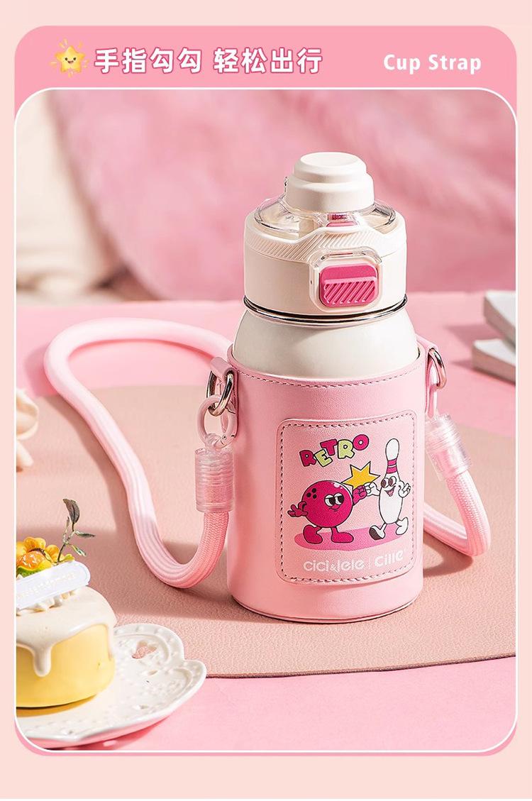 Vaso Termo Xile para Estudiantes Masculinos y Femeninos, Lindo Vaso de Agua Portátil con Correa, Juego de Vasos Portátiles de Gran Capacidad, Botella de Agua con Popote para Niños