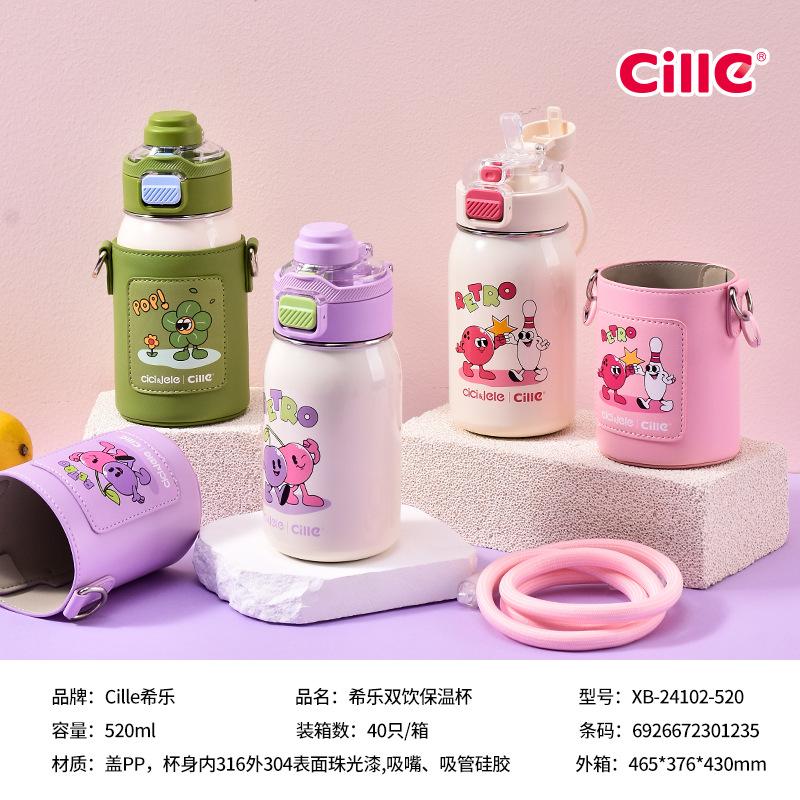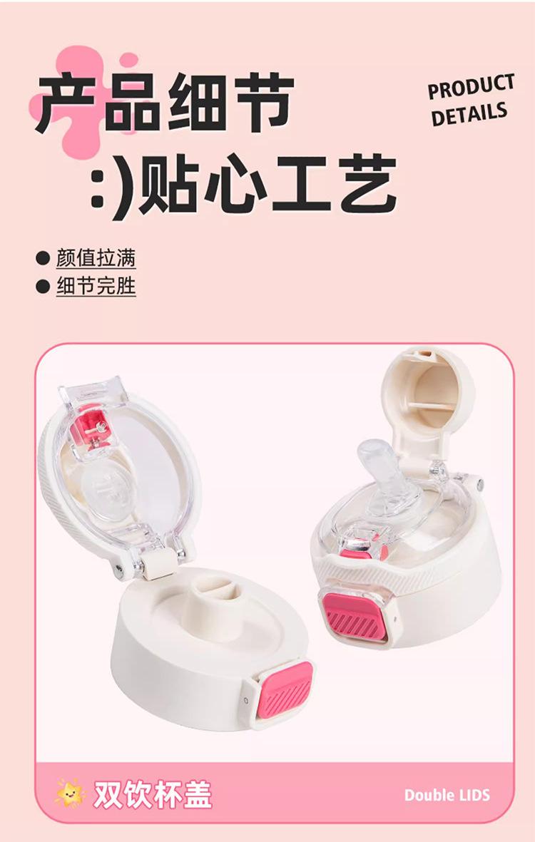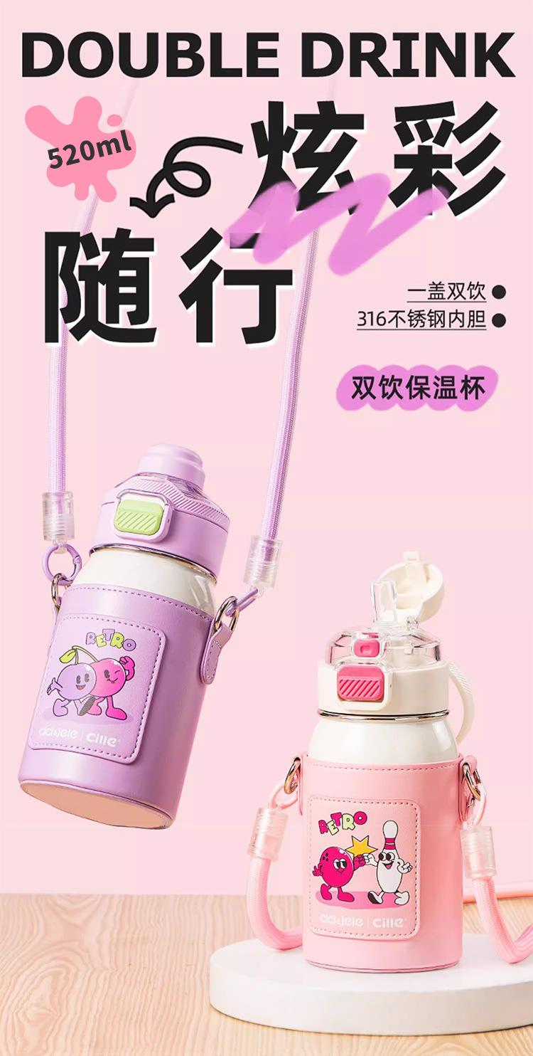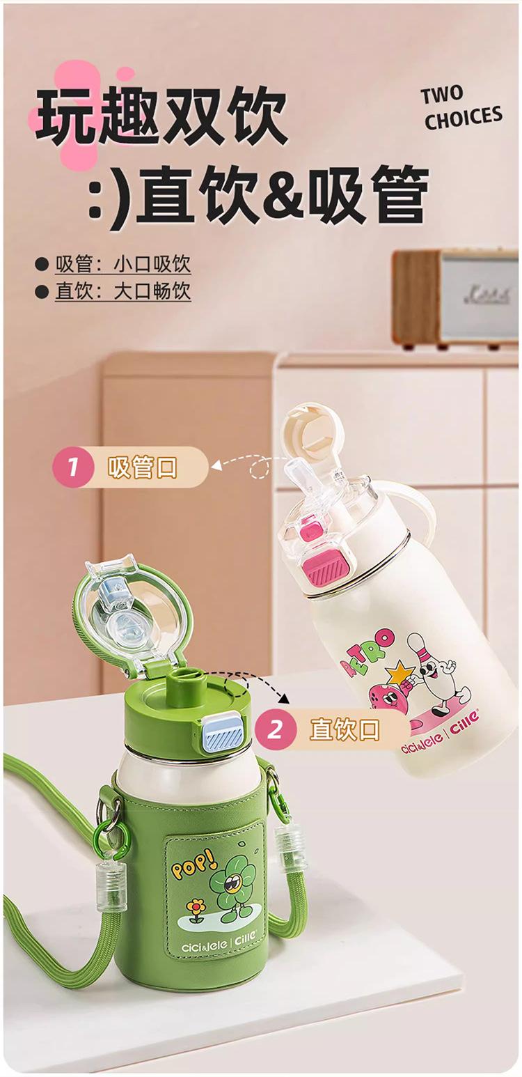 Vaso Termo Xile para Estudiantes Masculinos y Femeninos, Lindo Vaso de Agua Portátil con Correa, Juego de Vasos Portátiles de Gran Capacidad, Botella de Agua con Popote para Niños