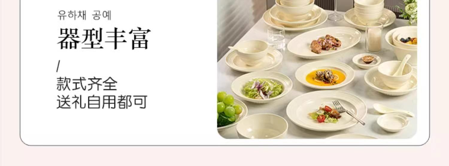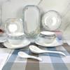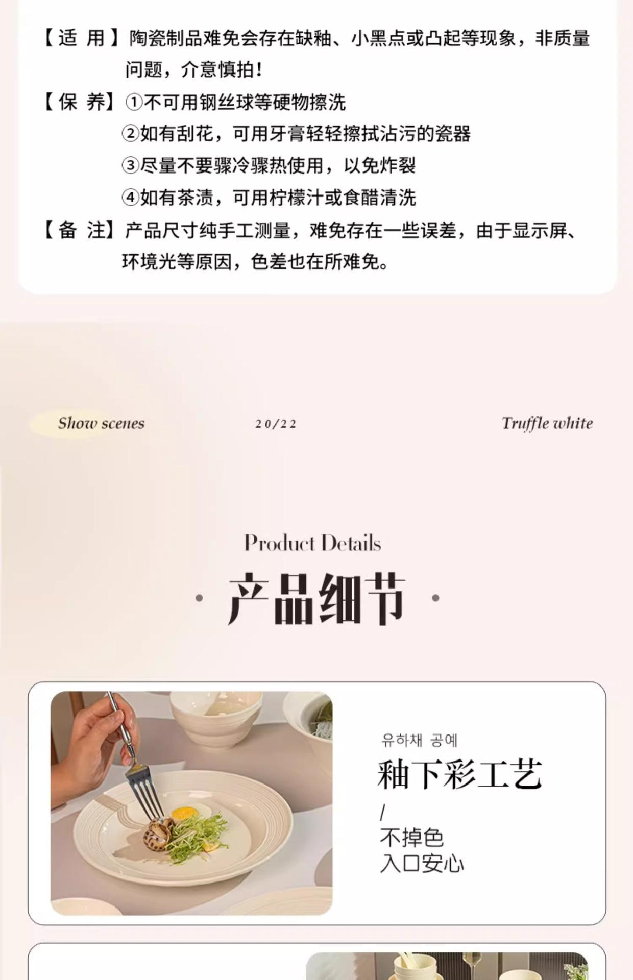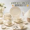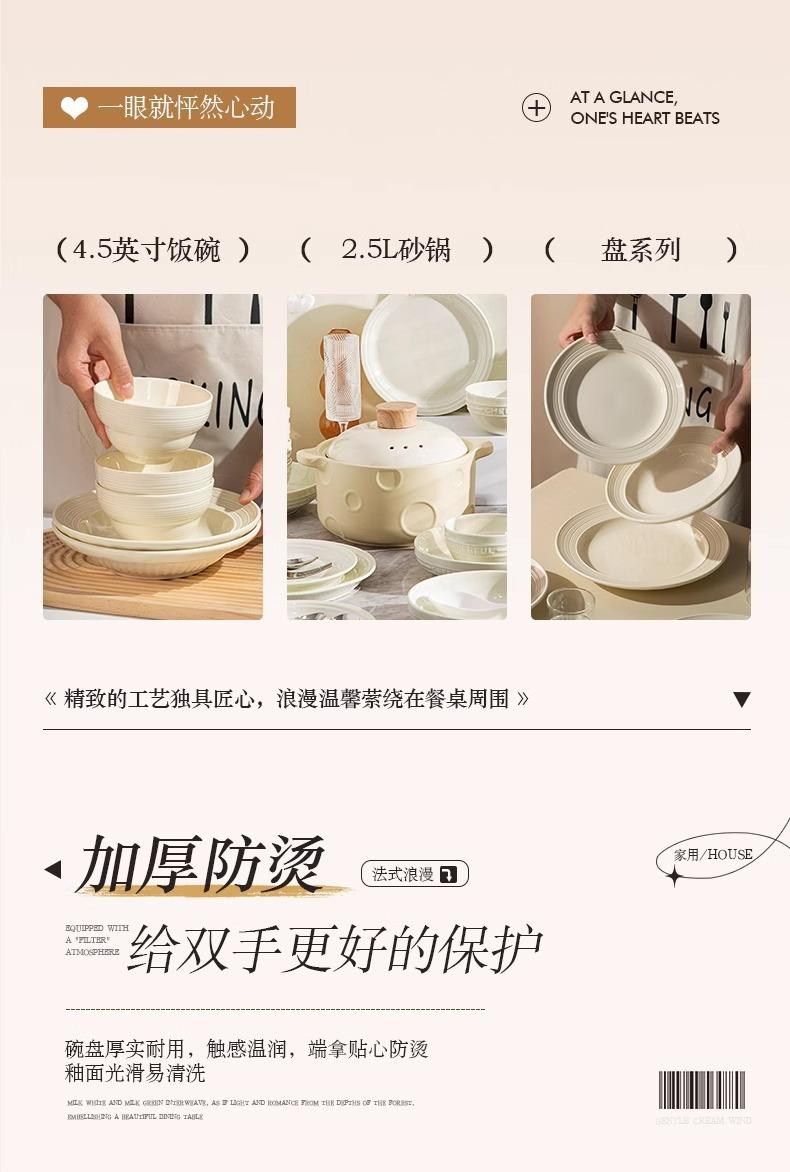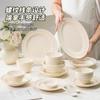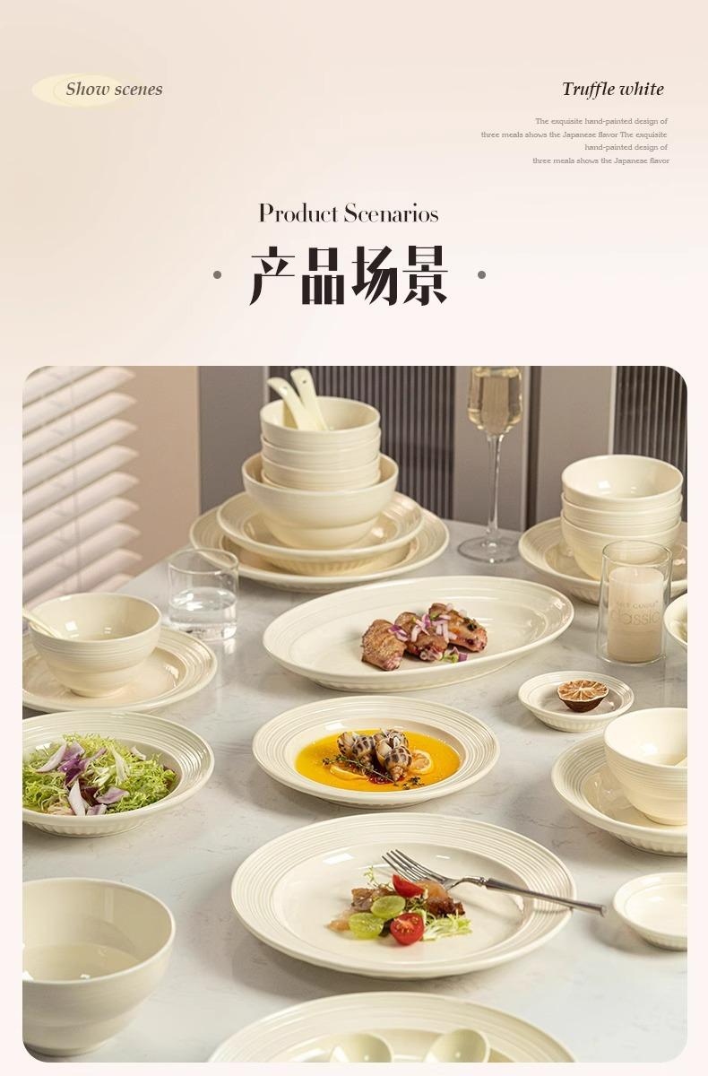 Juego de Tazón y Plato de Alta Calidad de Color Crema Estilo Francés para Uso Doméstico, Tazones de Color Bajo Cubierta, Platos, Cucharas, Tazones para Fideos, Tazones para Sopa, Vajilla de Cerámica
