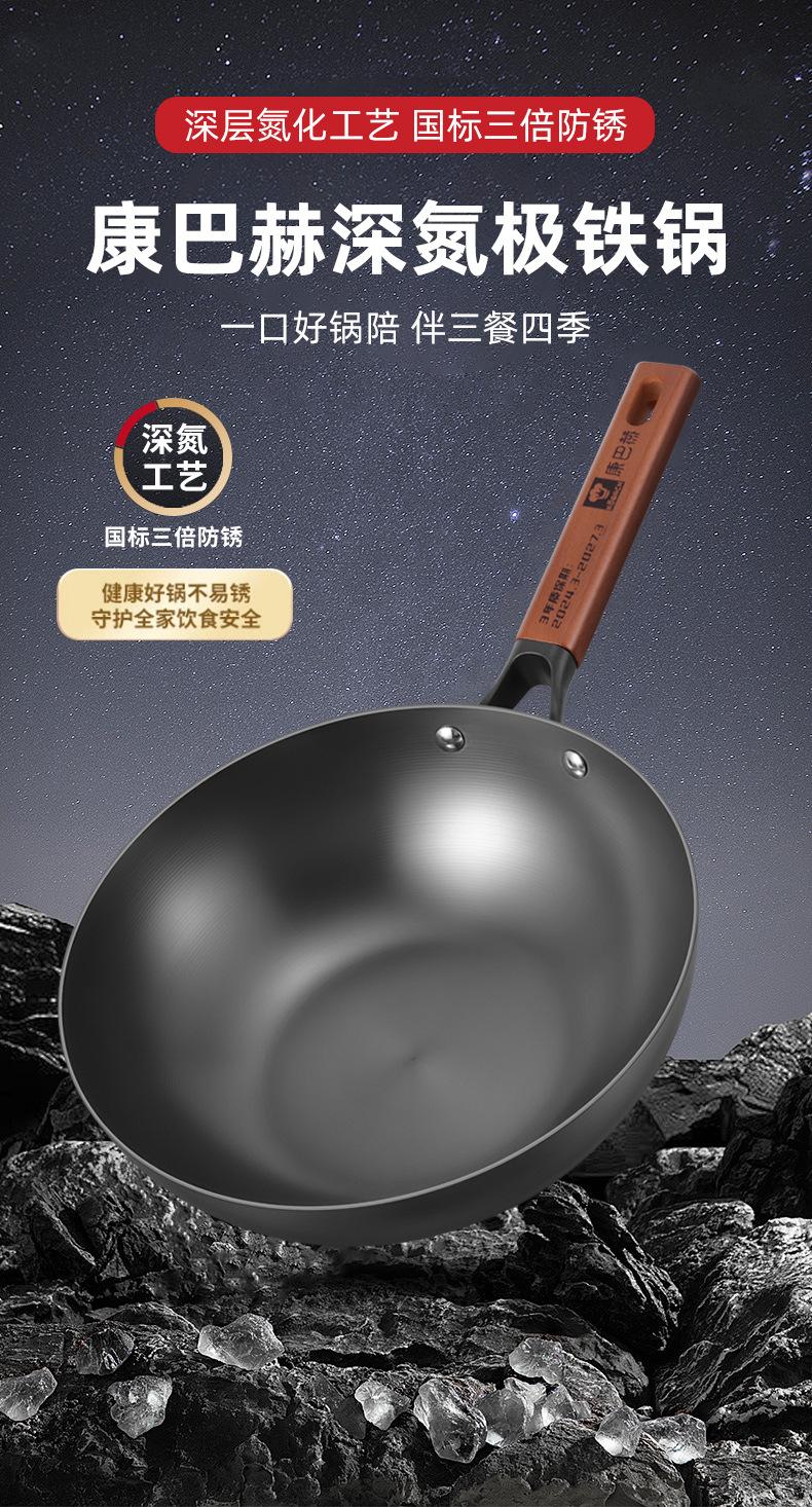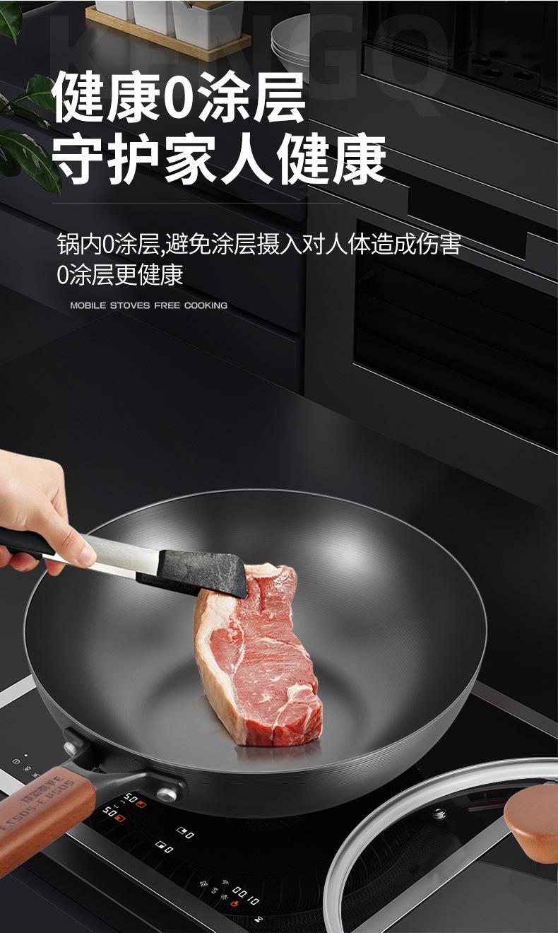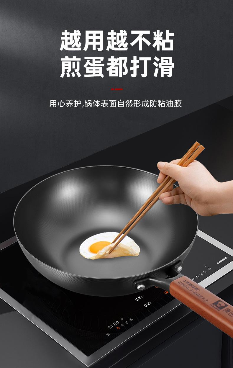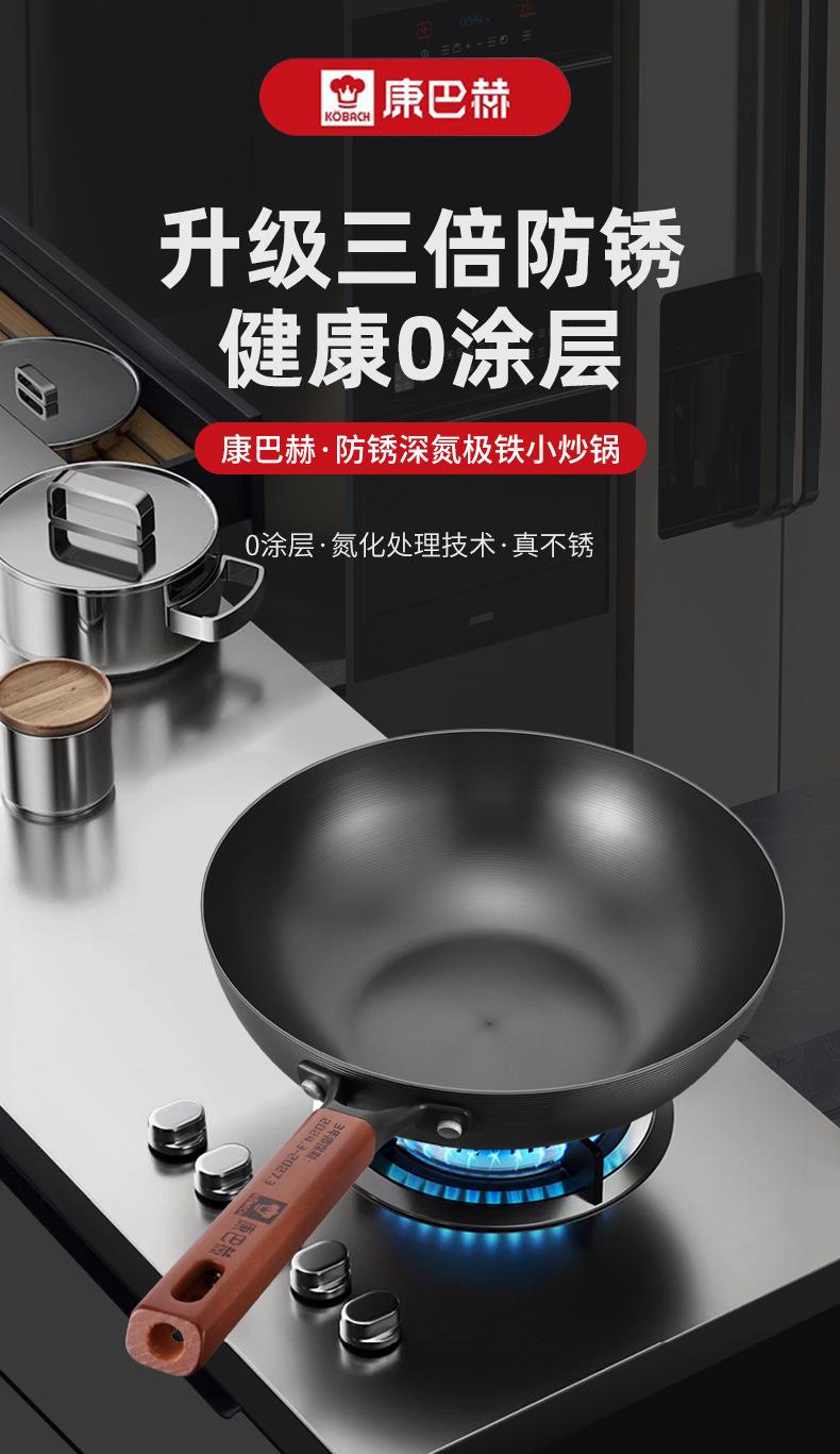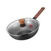 Kangbach Sartén Pequeña de Hierro para una Persona Comida Wok sin Recubrimiento para el Hogar Fondo Plano Sartén Antiadherente Cocina de Inducción Wok Pequeño de Hierro Fundido