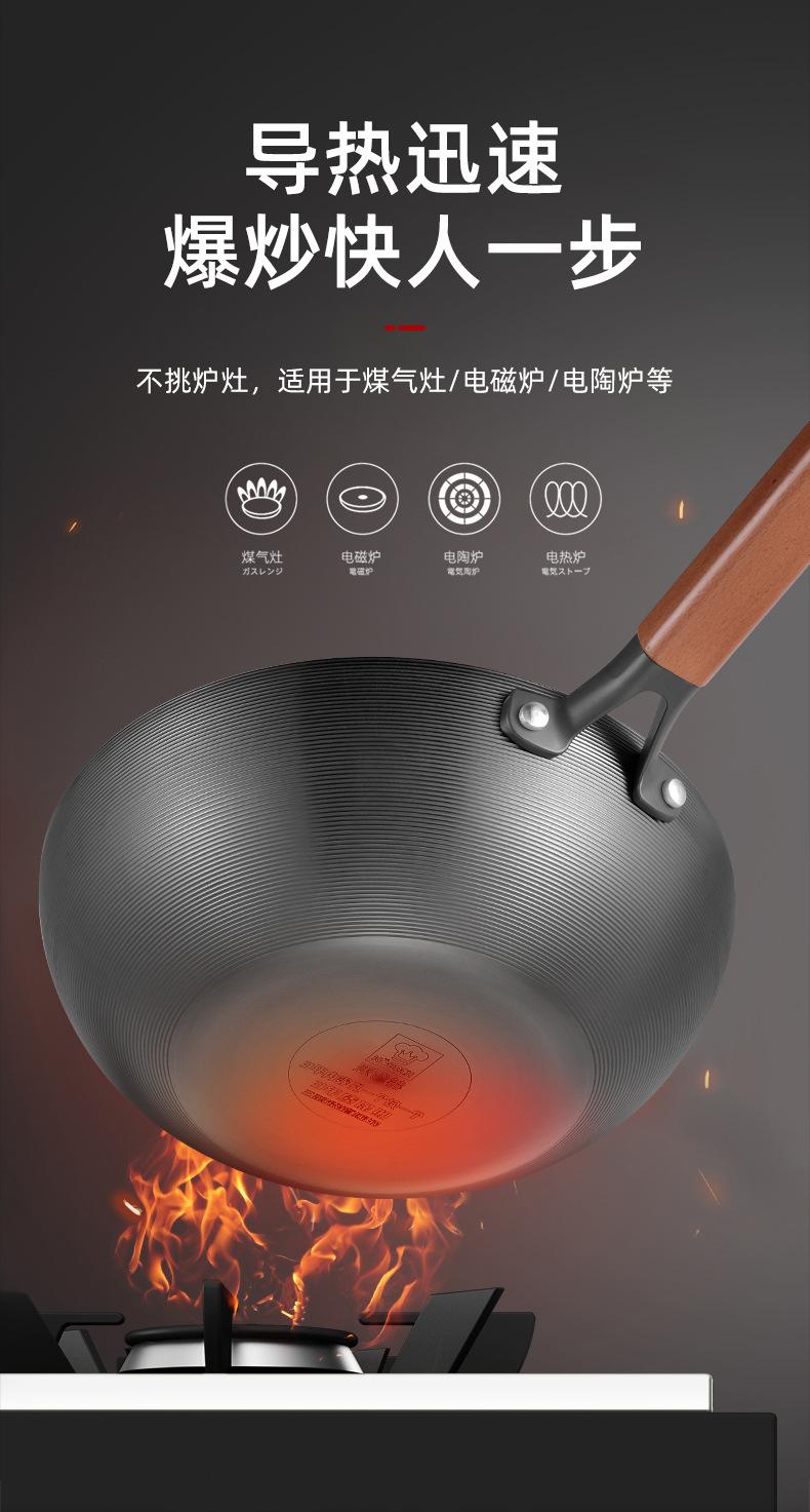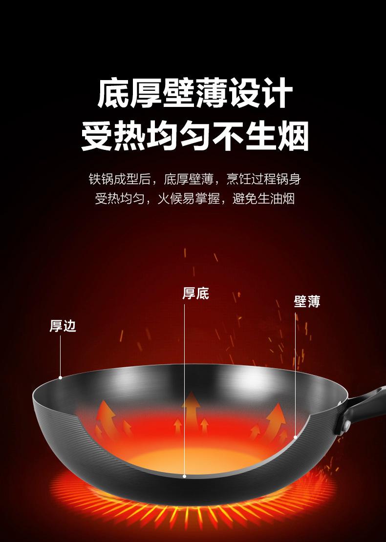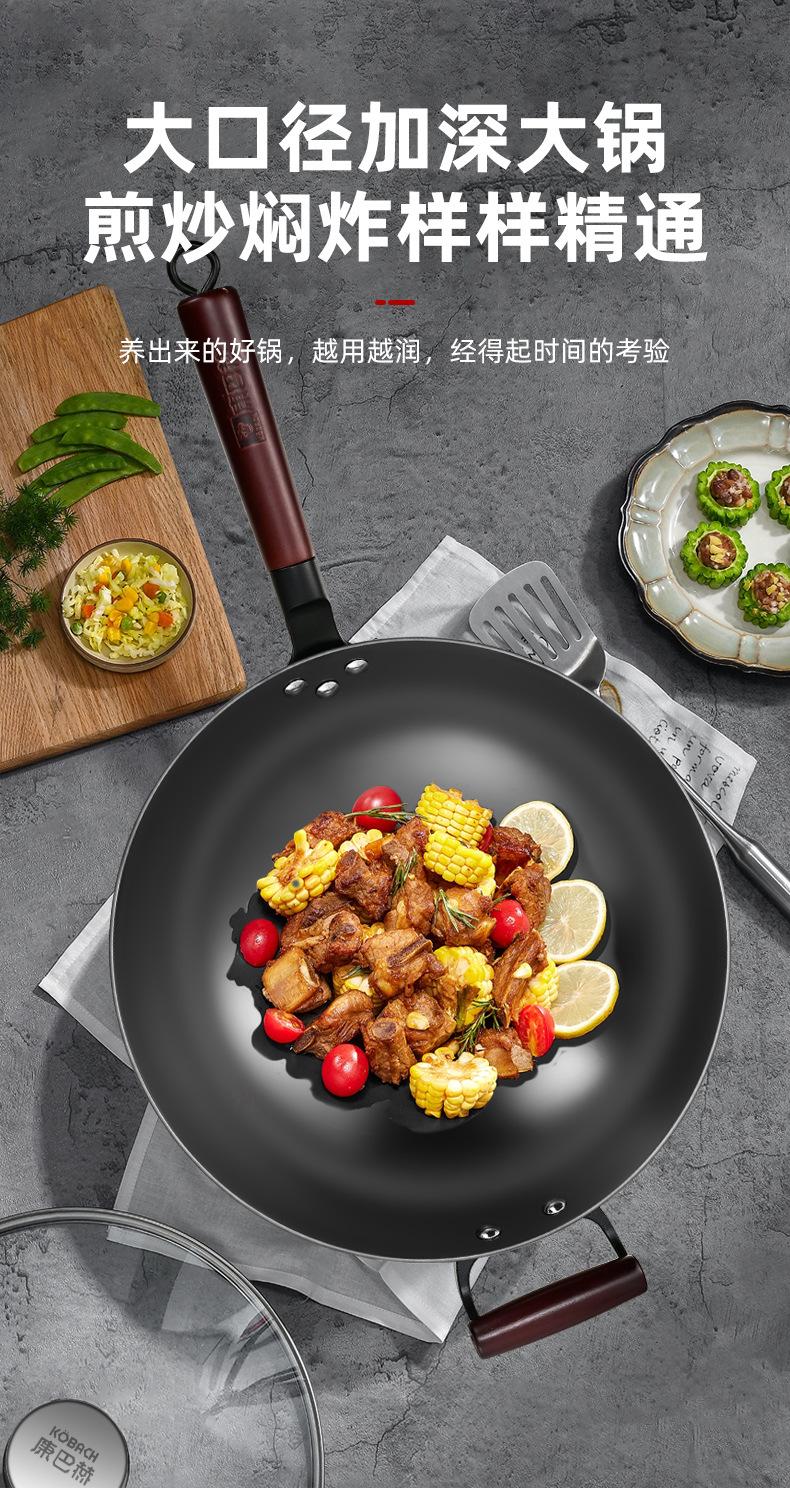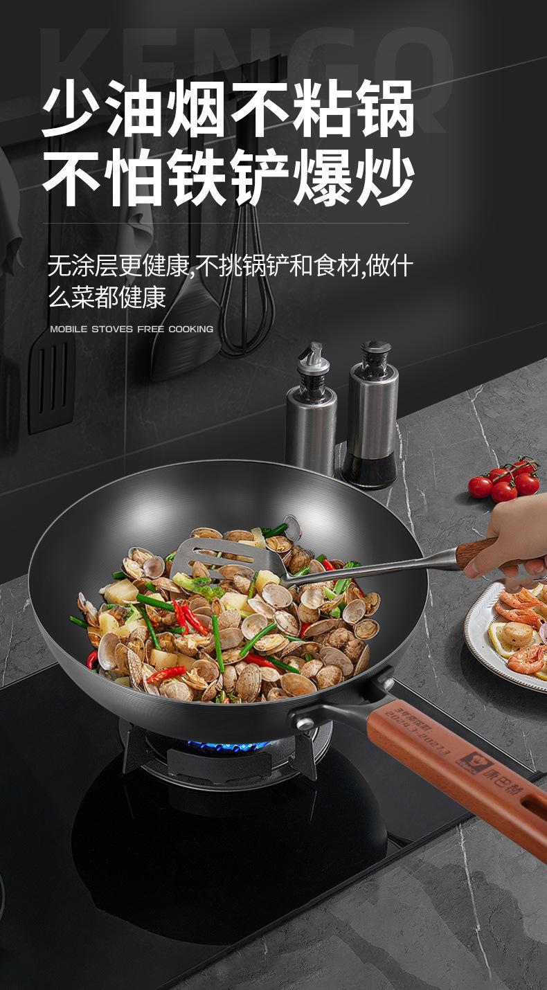 Kangbach Sartén Pequeña de Hierro para una Persona Comida Wok sin Recubrimiento para el Hogar Fondo Plano Sartén Antiadherente Cocina de Inducción Wok Pequeño de Hierro Fundido