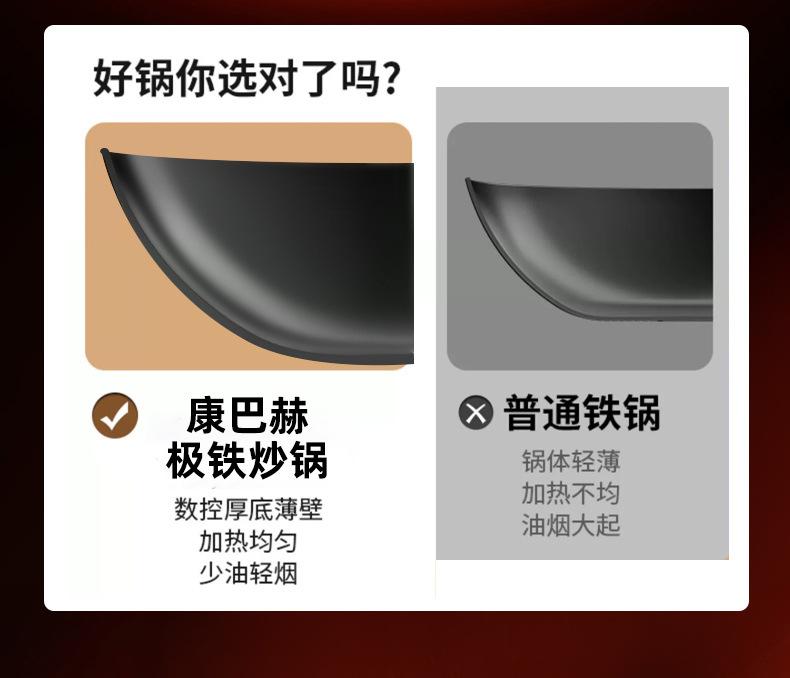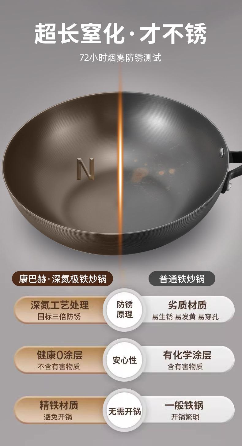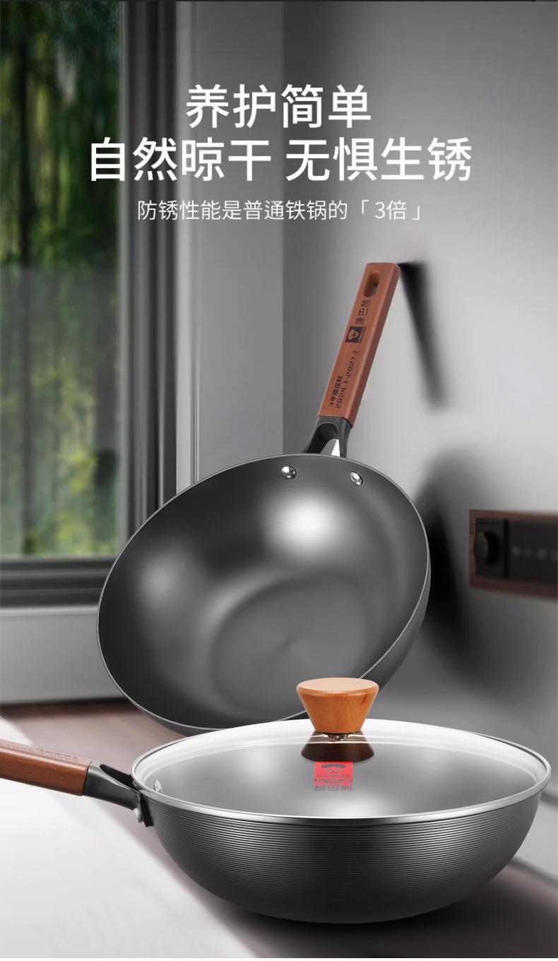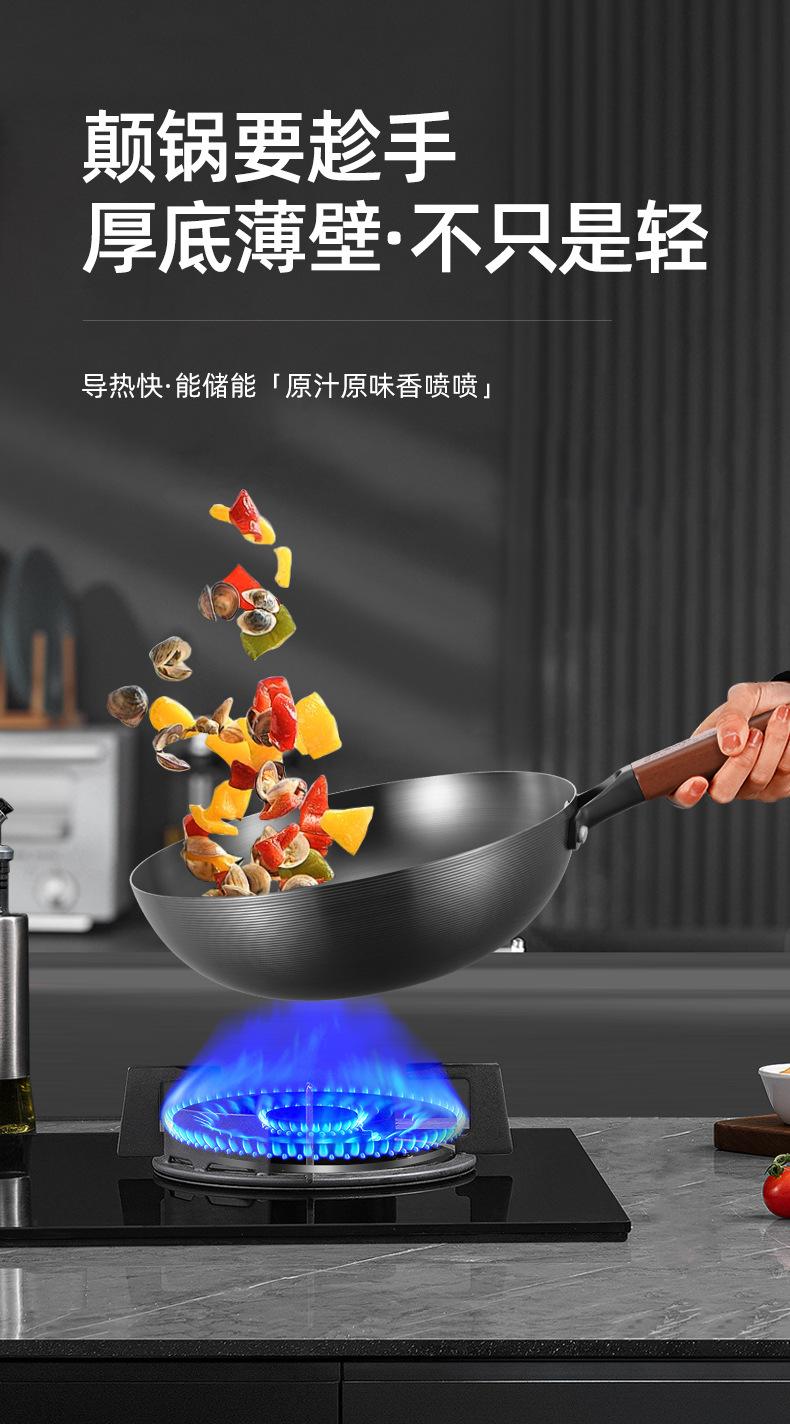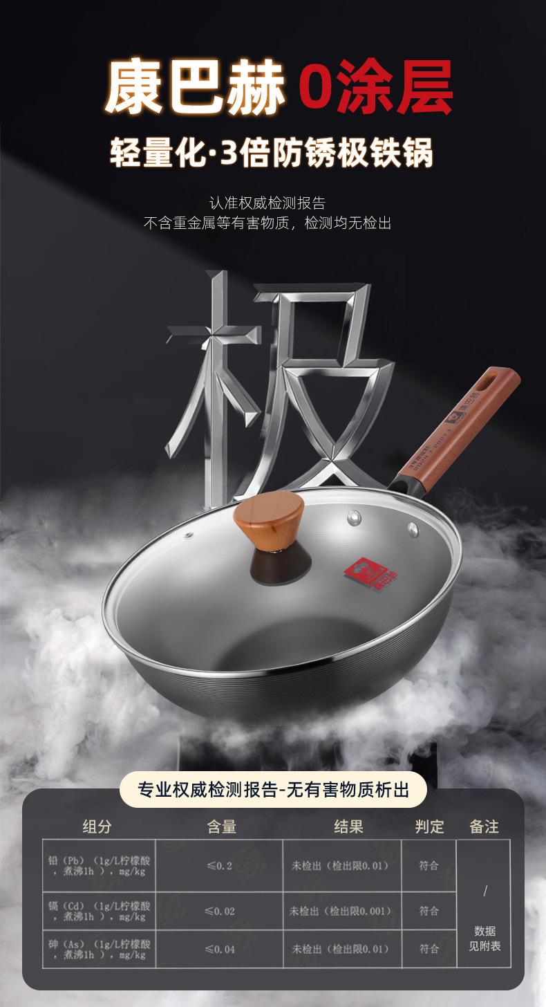 Kangbach Sartén Pequeña de Hierro para una Persona Comida Wok sin Recubrimiento para el Hogar Fondo Plano Sartén Antiadherente Cocina de Inducción Wok Pequeño de Hierro Fundido