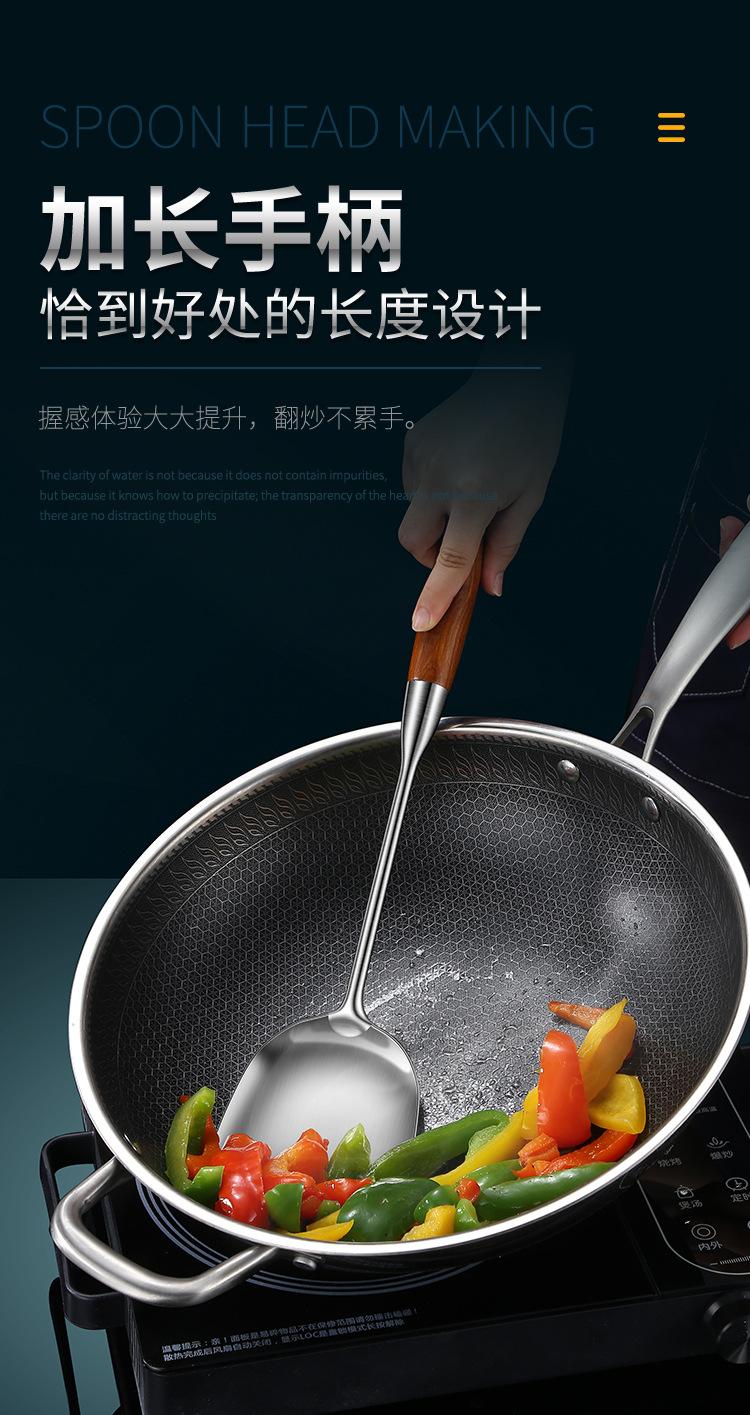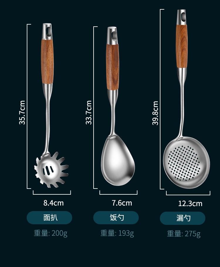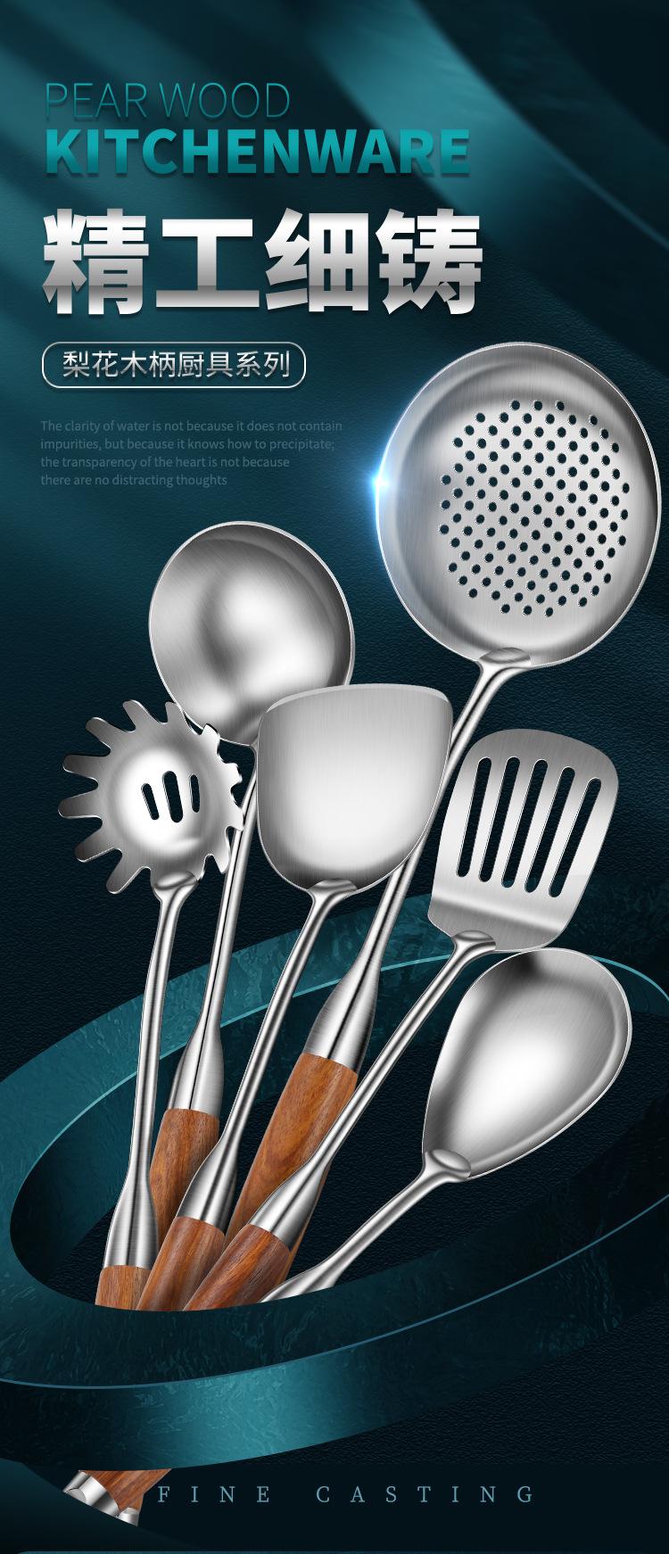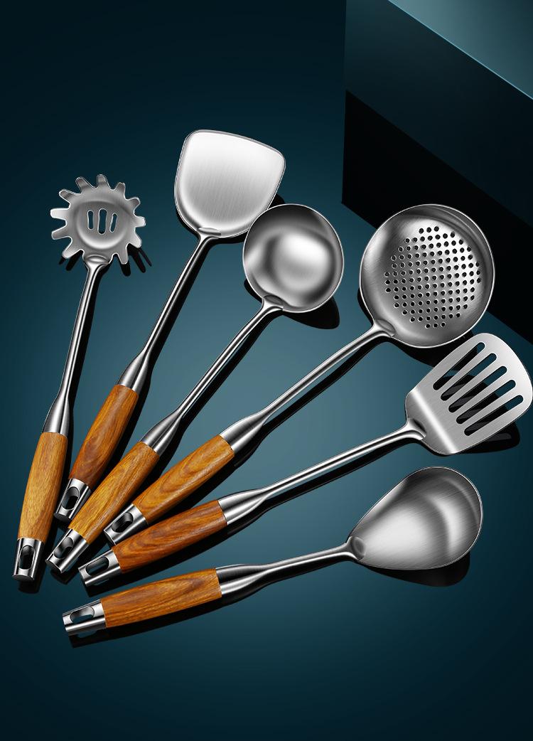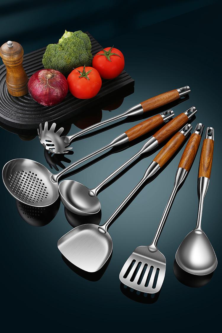 Espátula de acero inoxidable 316 pala para saltear juego de utensilios de cocina para el hogar mango de madera de peral cuchara de acero inoxidable colador espátula para freír