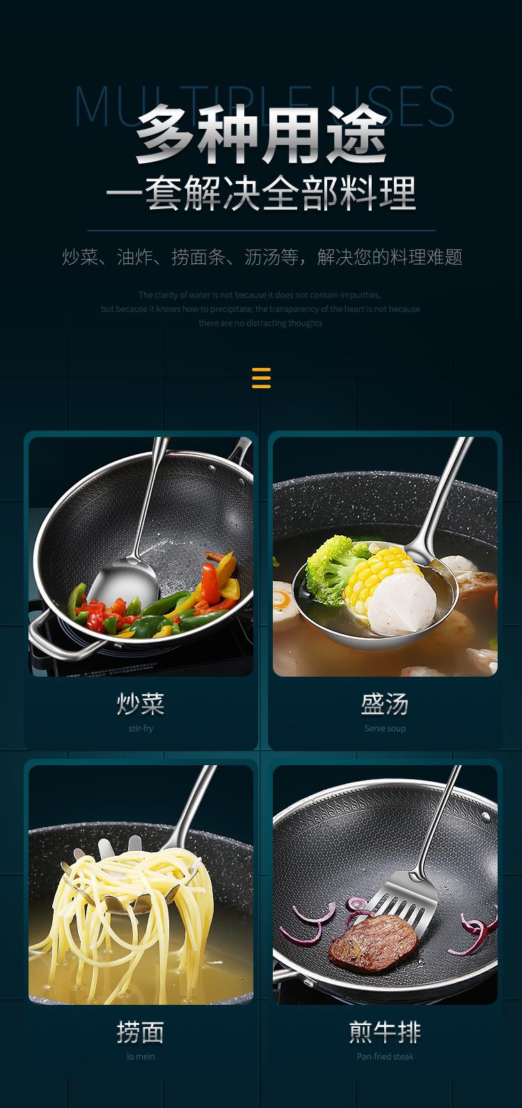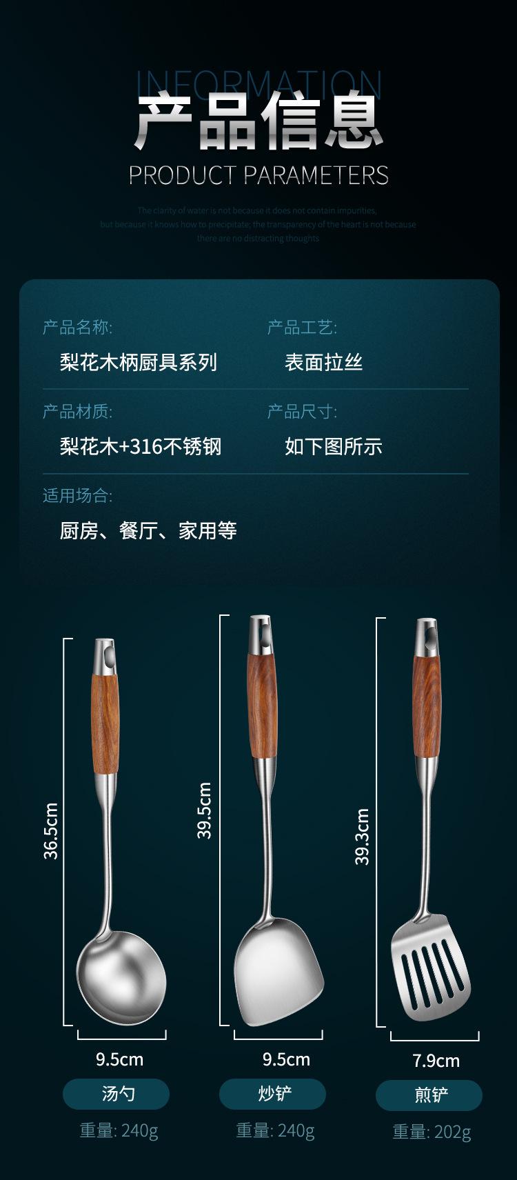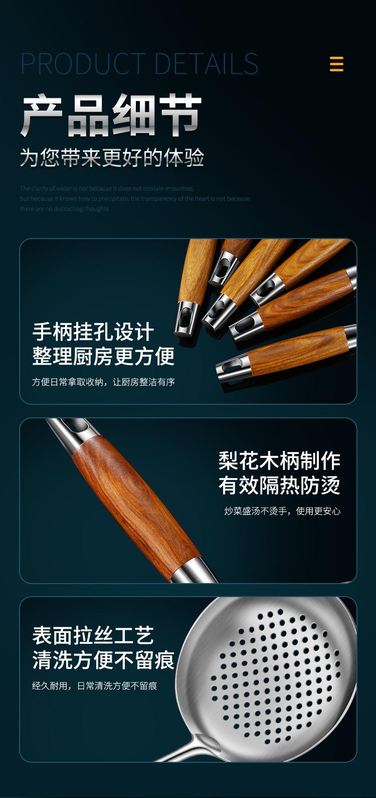 Espátula de acero inoxidable 316 pala para saltear juego de utensilios de cocina para el hogar mango de madera de peral cuchara de acero inoxidable colador espátula para freír