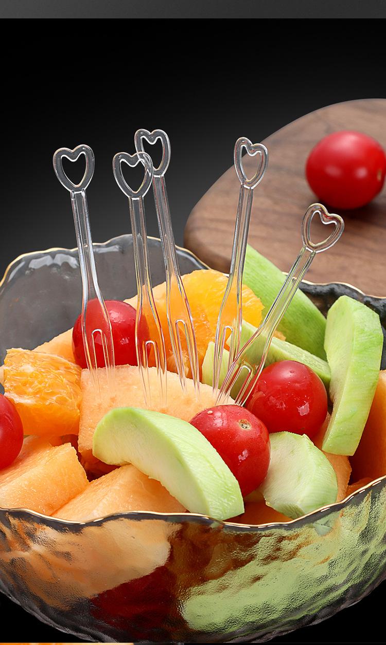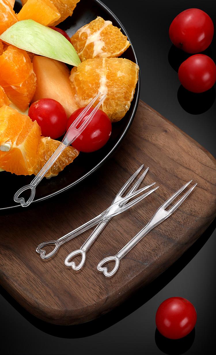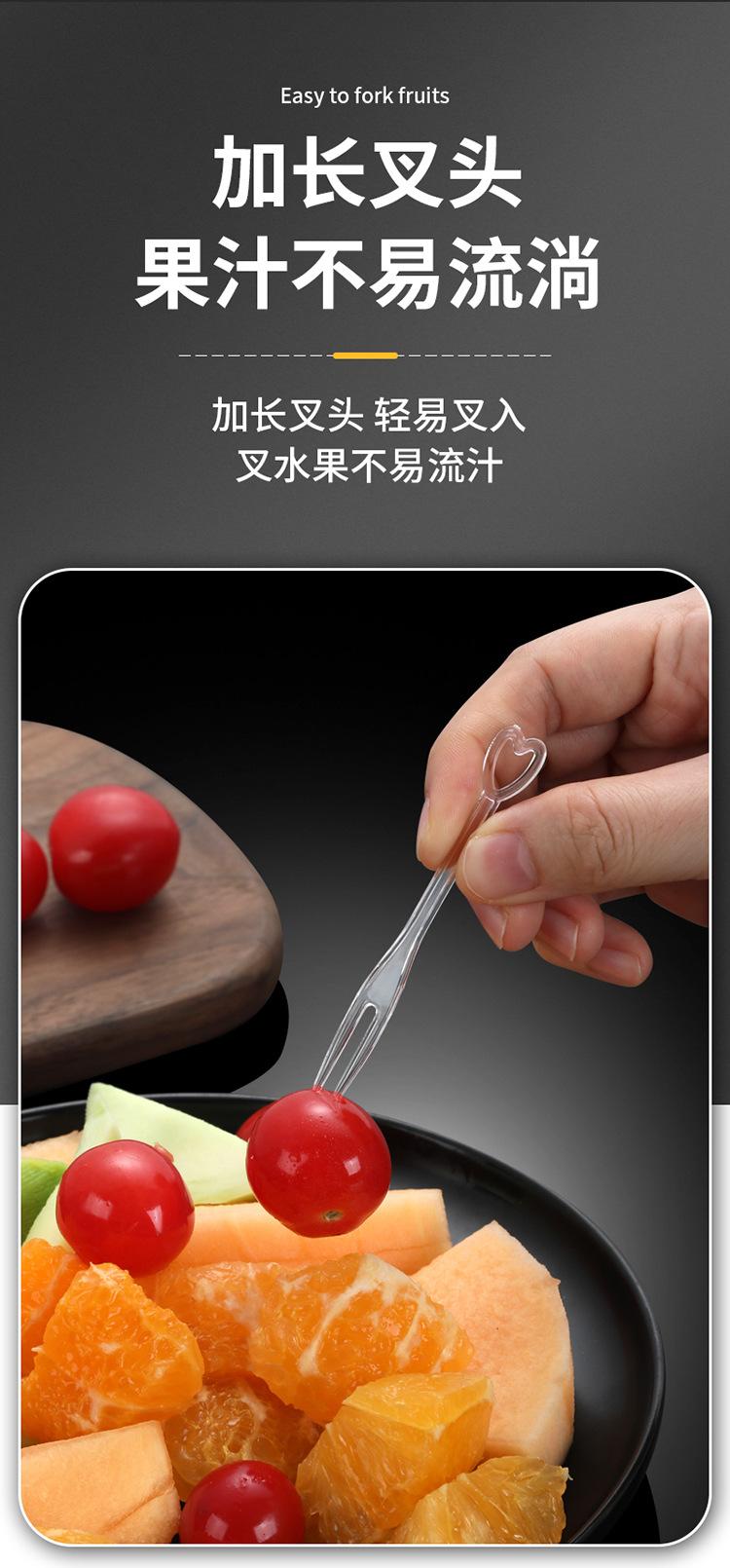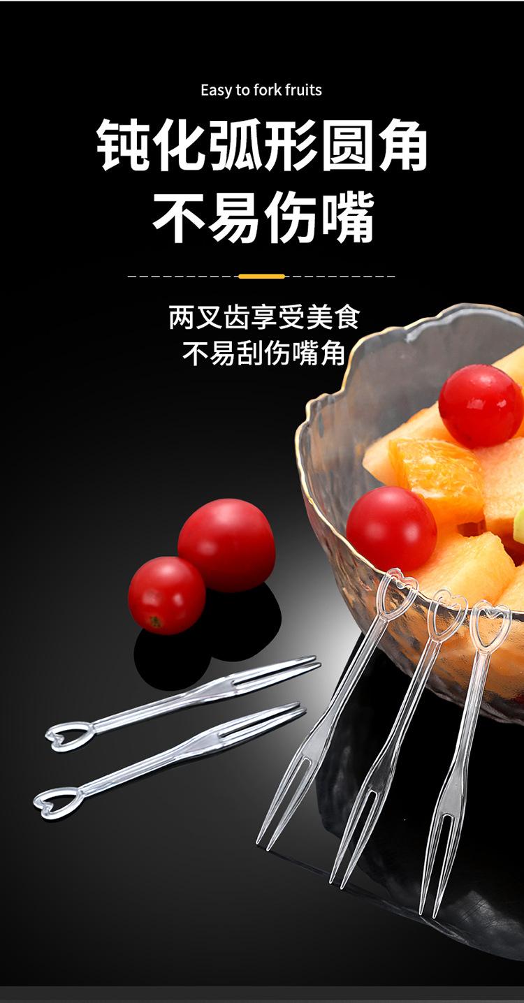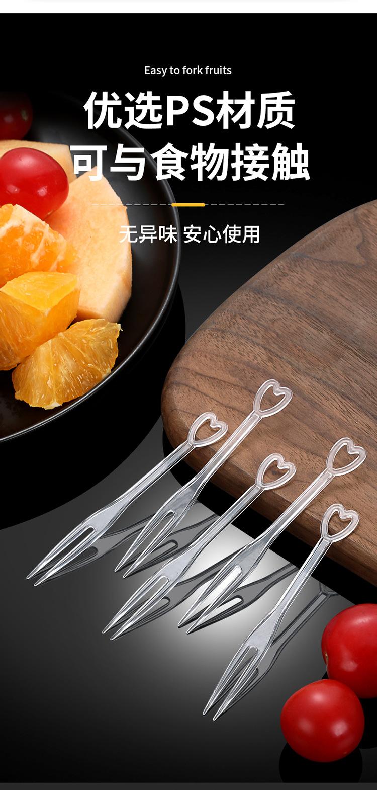Tenedor de fruta desechable, embalaje separado, palitos de fruta de plástico, tenedor para pastel, tenedor comercial transparente para postre de fruta, tenedor pequeño