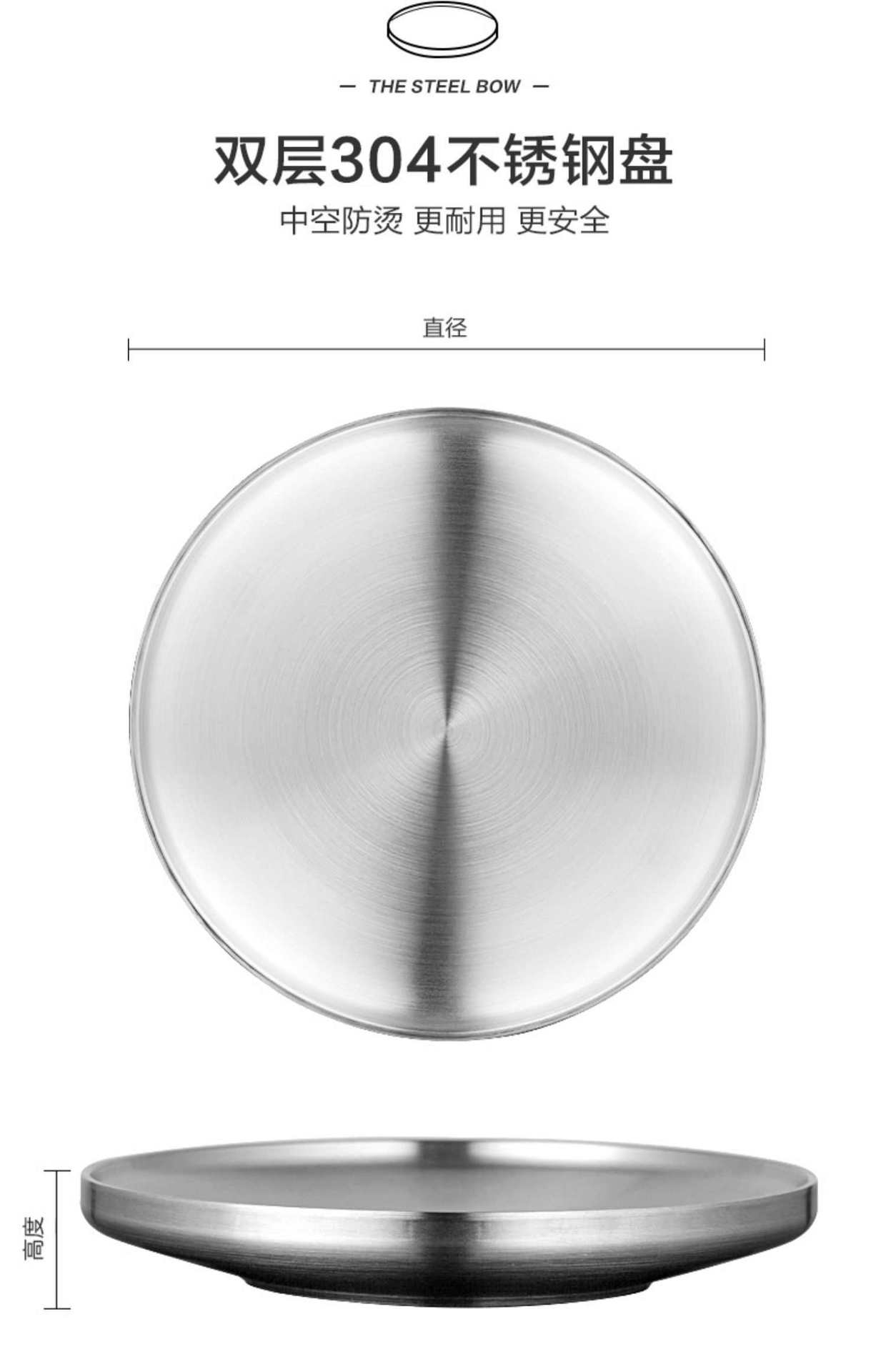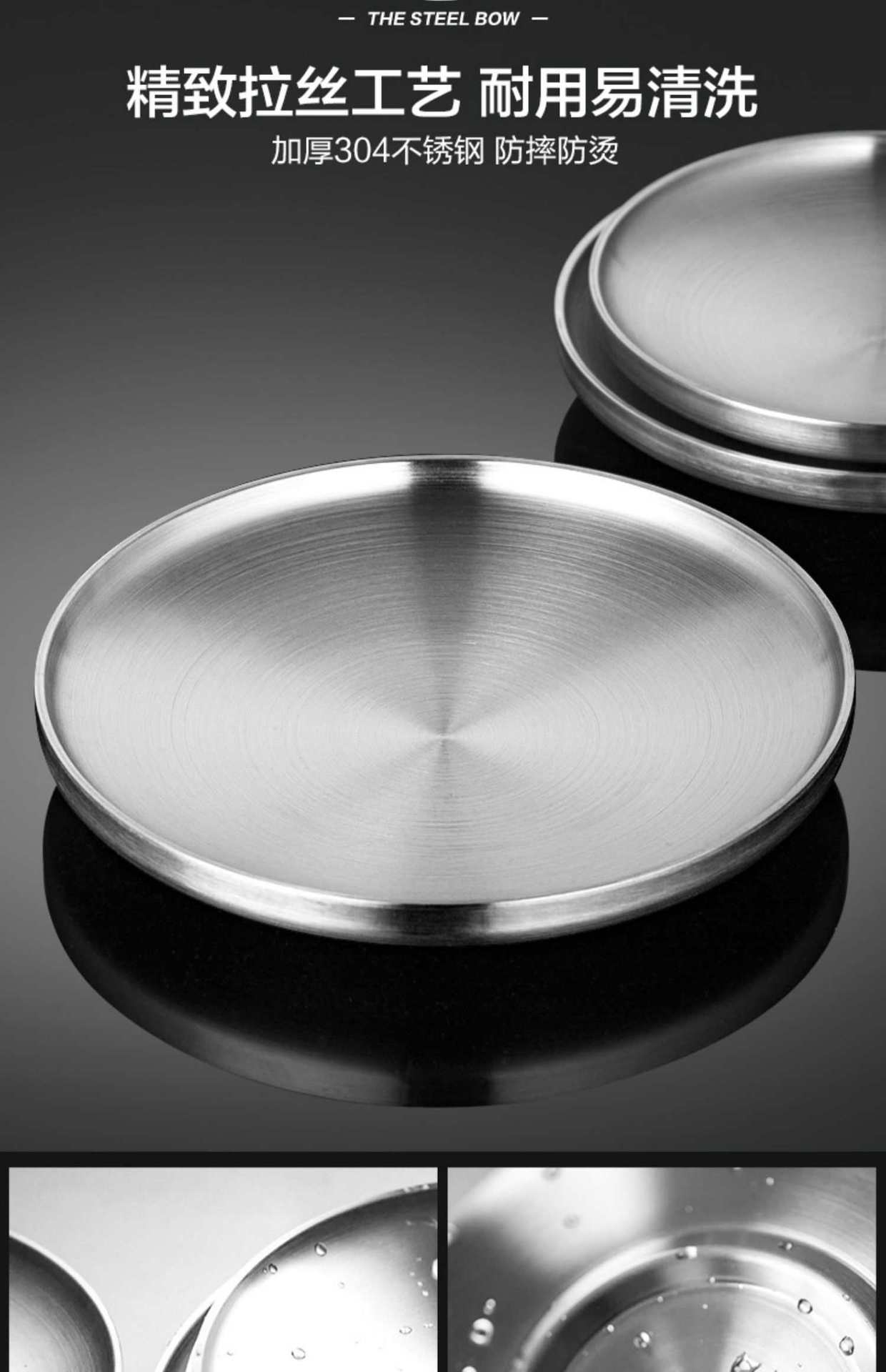 Plato de Acero Inoxidable 304 Engrosado Plato para Cena Plato para Hogar Plato para Fruta Doble Capa Anti-escaldaduras Vajilla