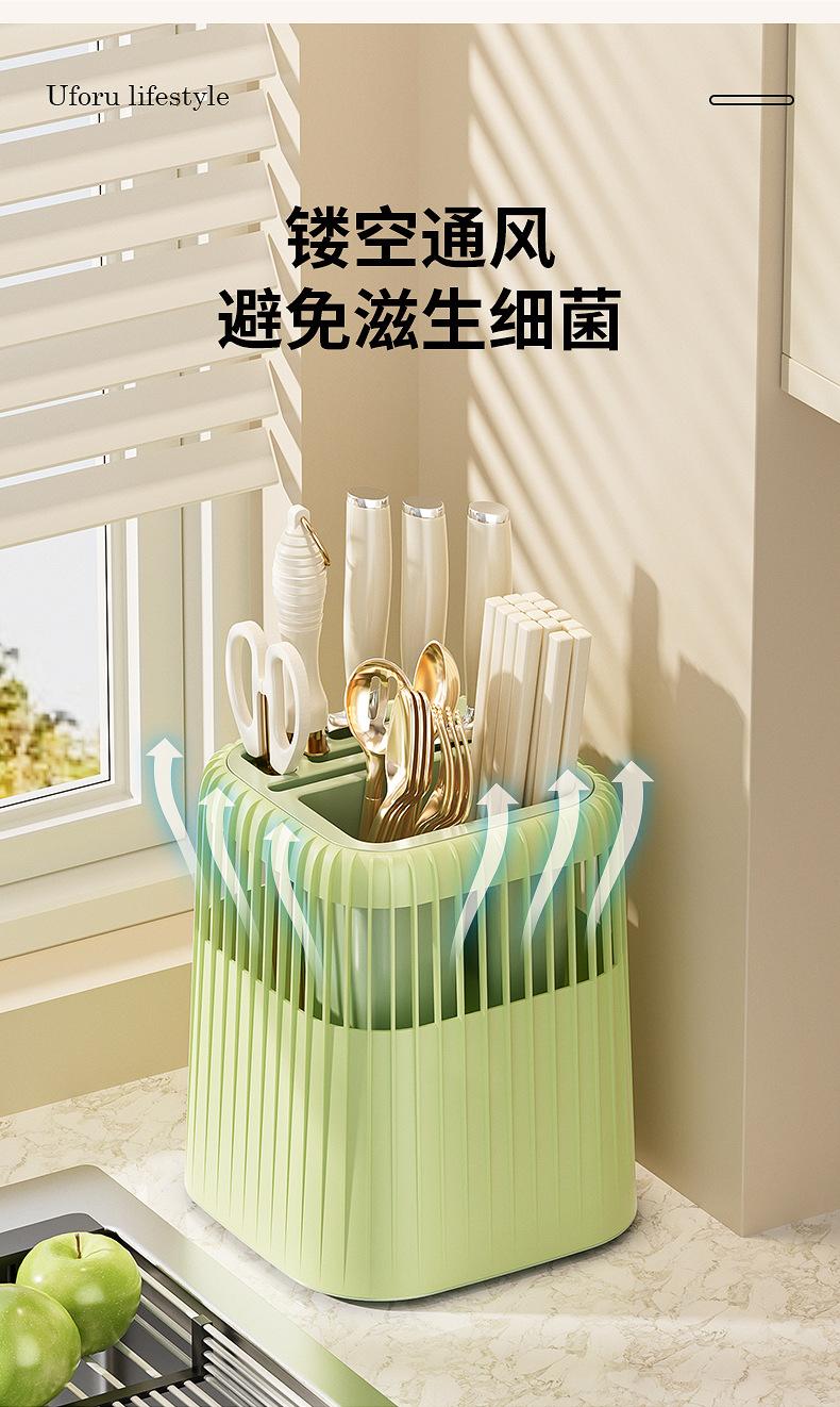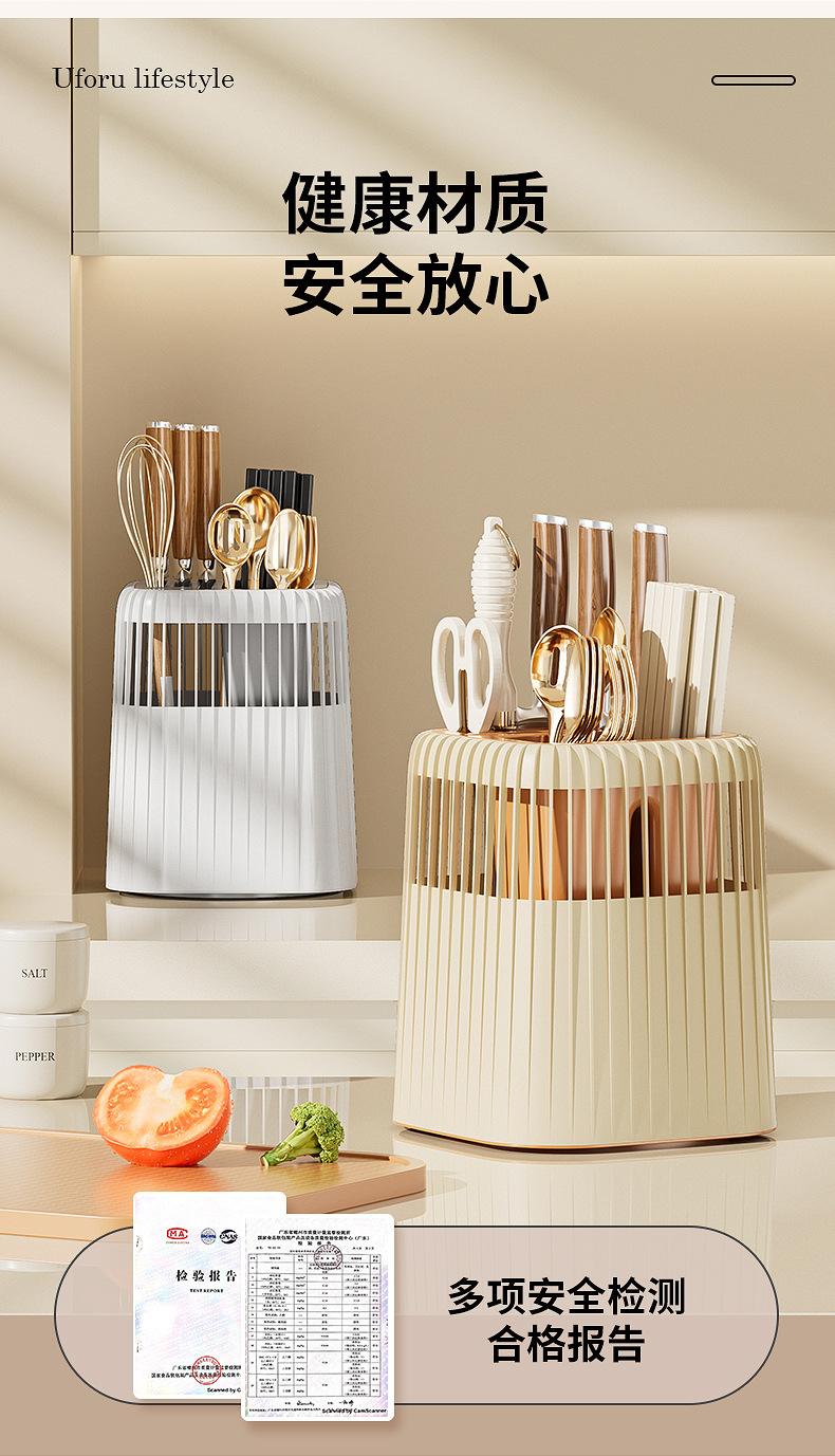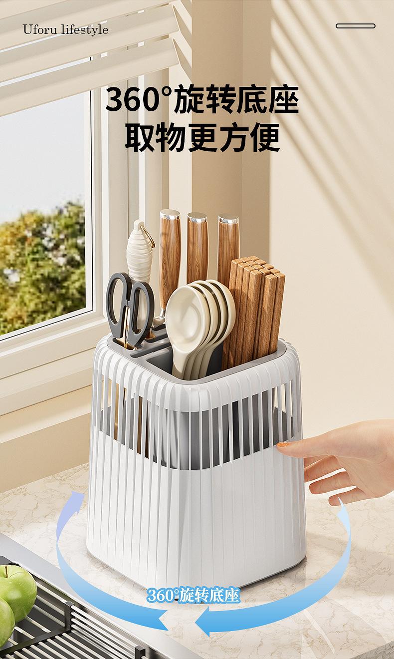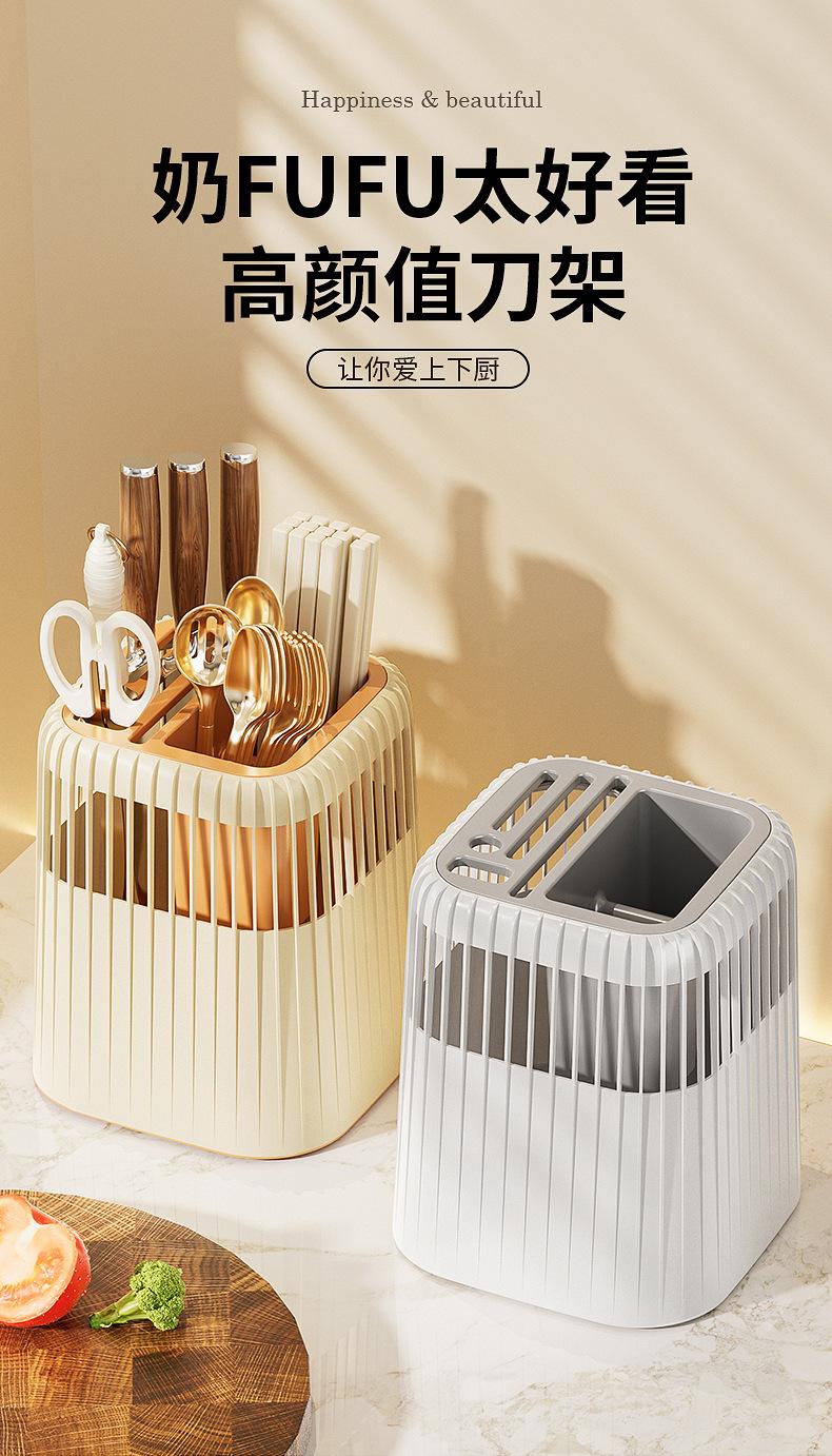 Estante giratorio multifuncional para cuchillos, de sobremesa, con drenaje dividido, para cocina, para el hogar, caja de almacenamiento de utensilios de cocina, palillos, tubo para cuchillos