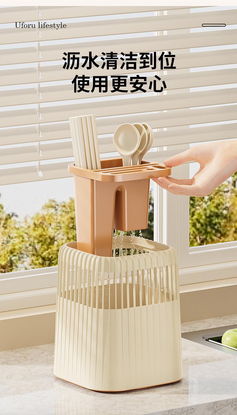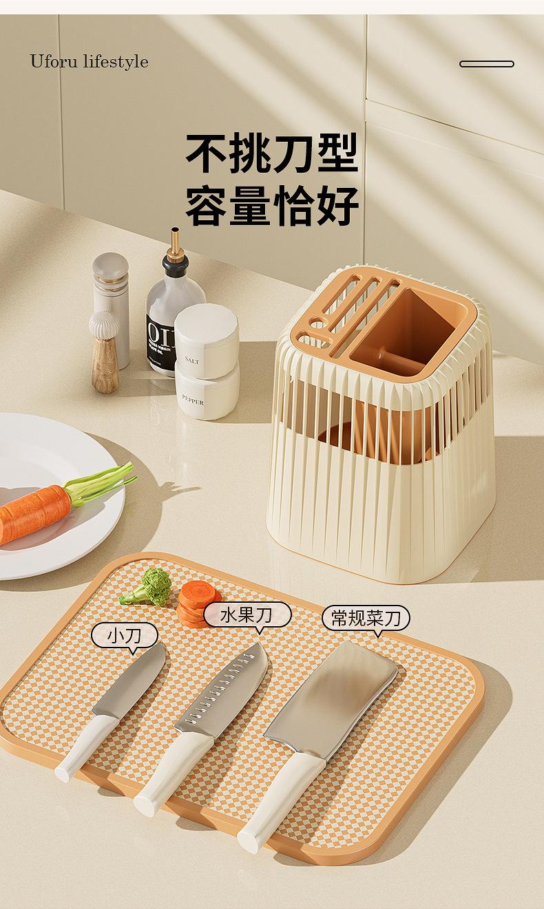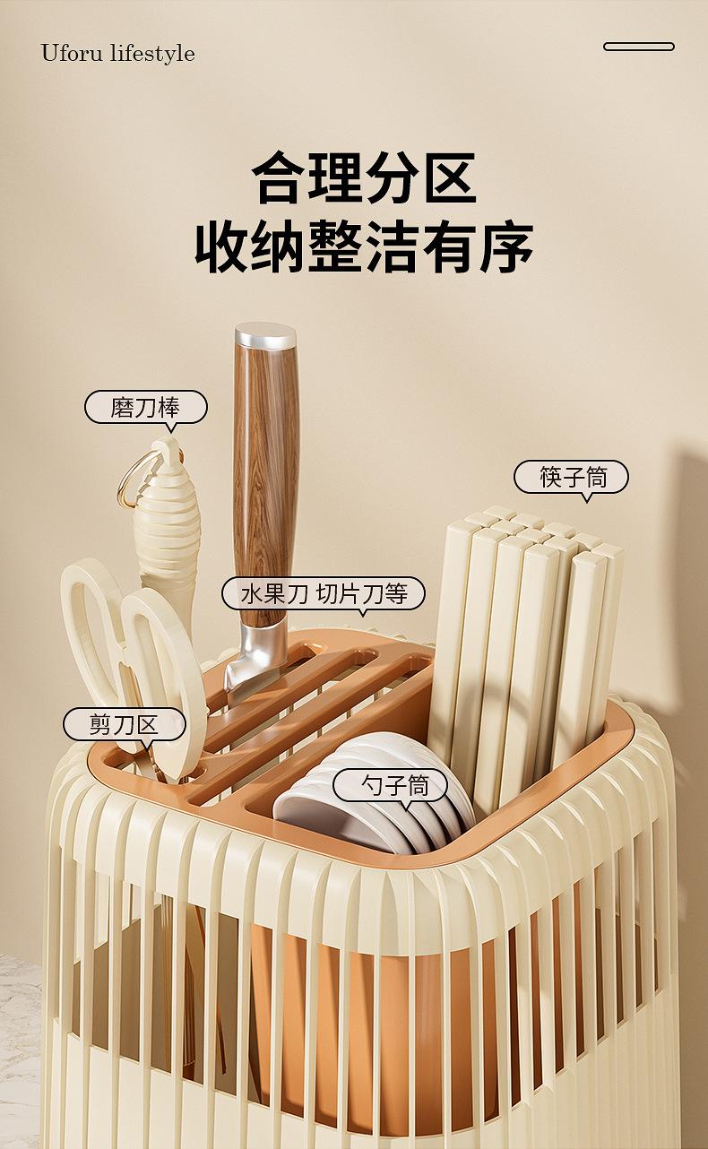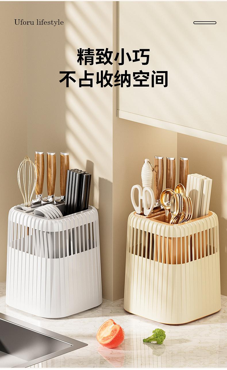 Estante giratorio multifuncional para cuchillos, de sobremesa, con drenaje dividido, para cocina, para el hogar, caja de almacenamiento de utensilios de cocina, palillos, tubo para cuchillos