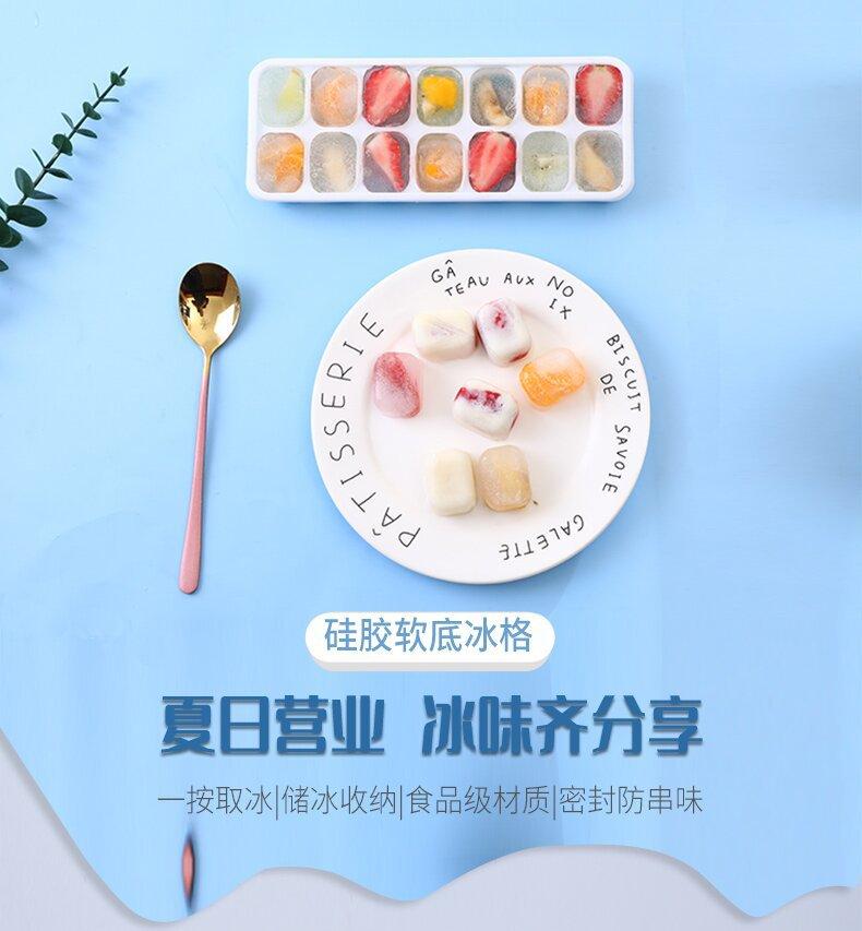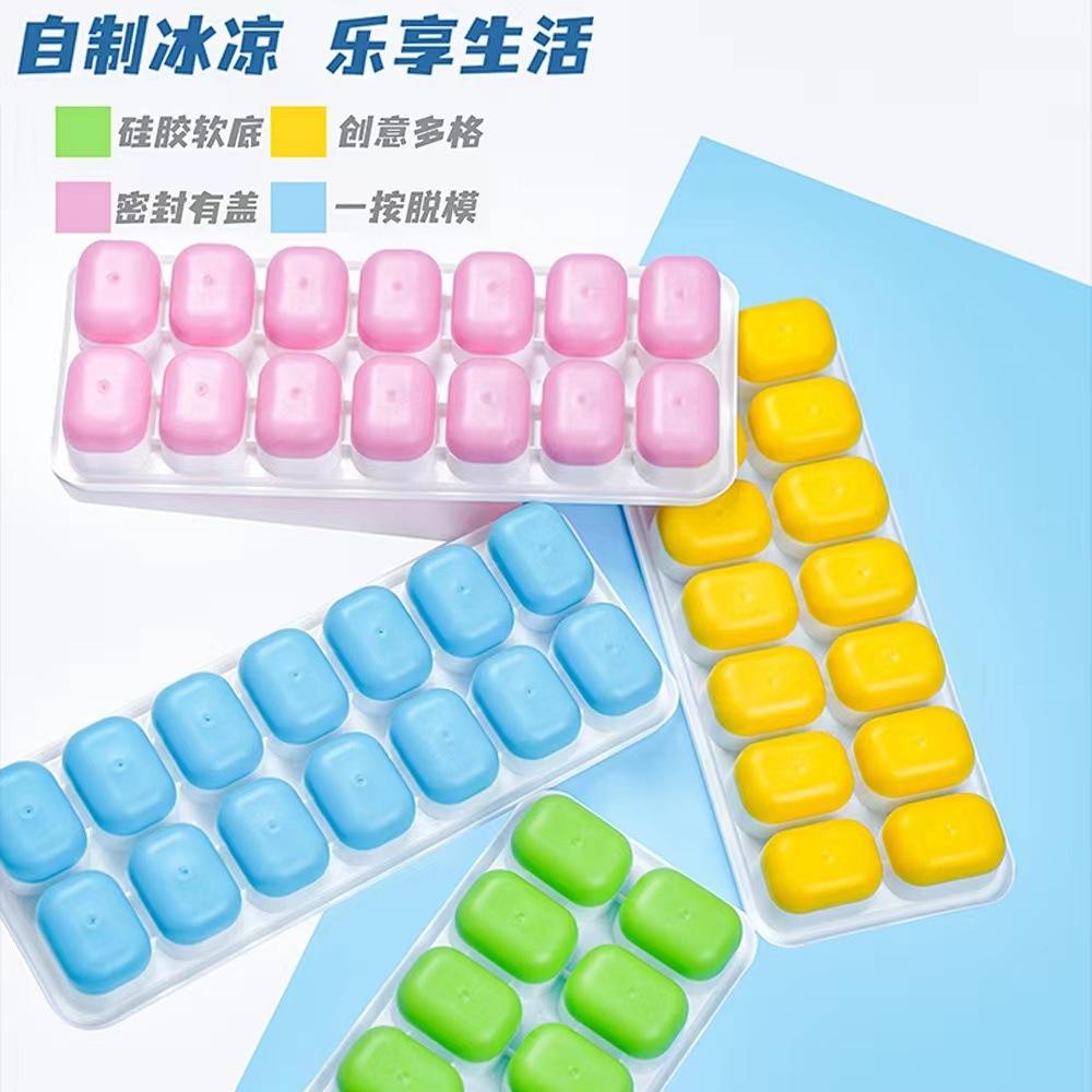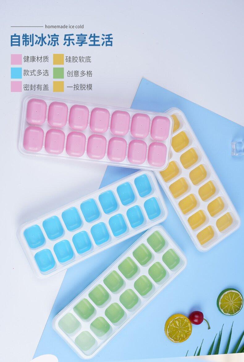 Molde cuadrado para cubitos de hielo con tapa, de silicona, de fondo suave, fácil de desmoldar, para 14 cubitos de hielo