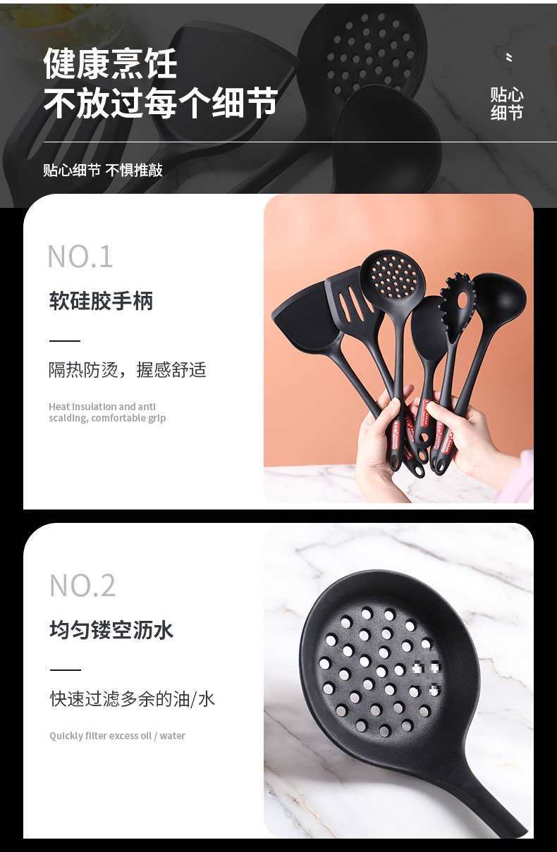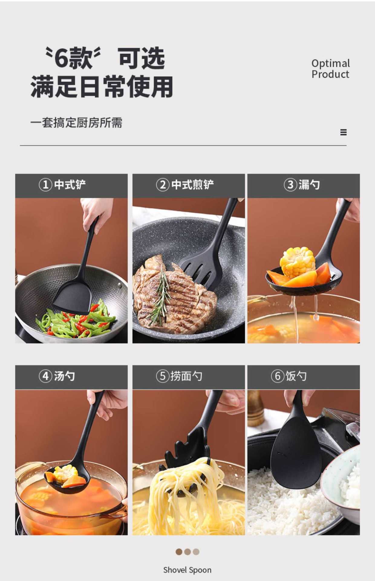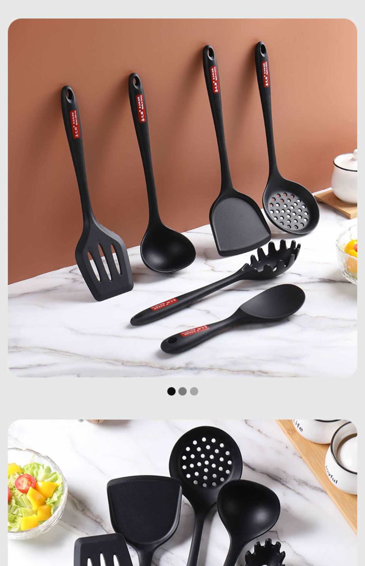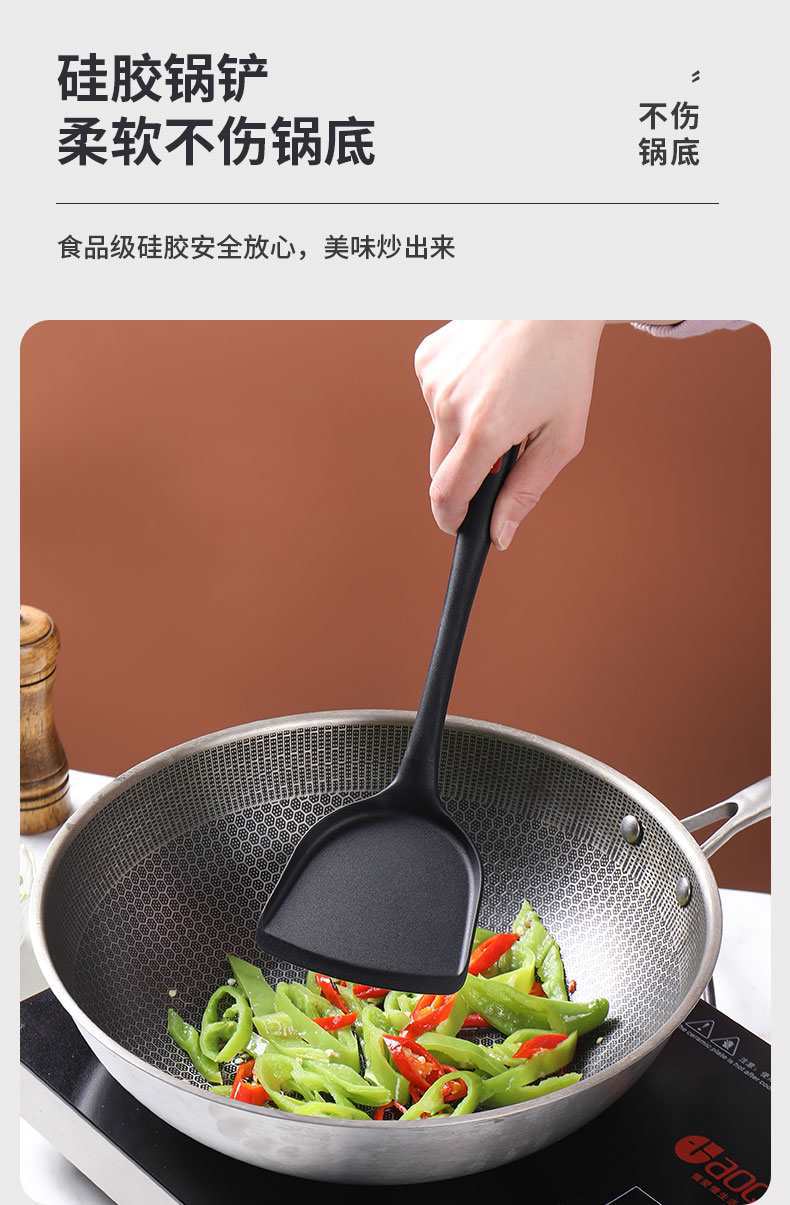 Espátula de silicona al por mayor, espátula antiadherente, espátula para saltear en el hogar, cuchara sopera resistente a altas temperaturas, juego de utensilios de cocina anti-escaldaduras