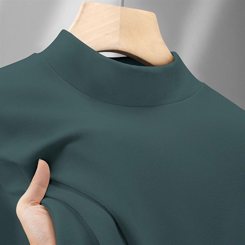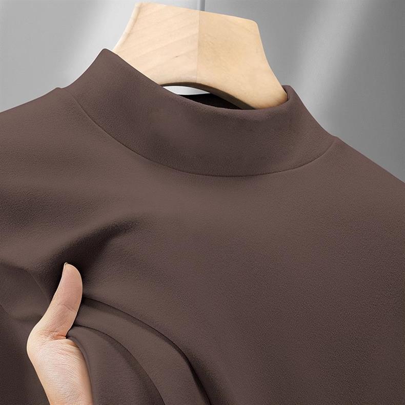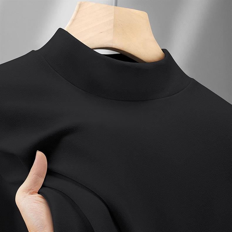Camiseta de manga larga de terciopelo de doble cara para hombre, de otoño e invierno, moderna, agradable para la piel, cálida, con cuello medio alto, ropa de otoño para hombre.