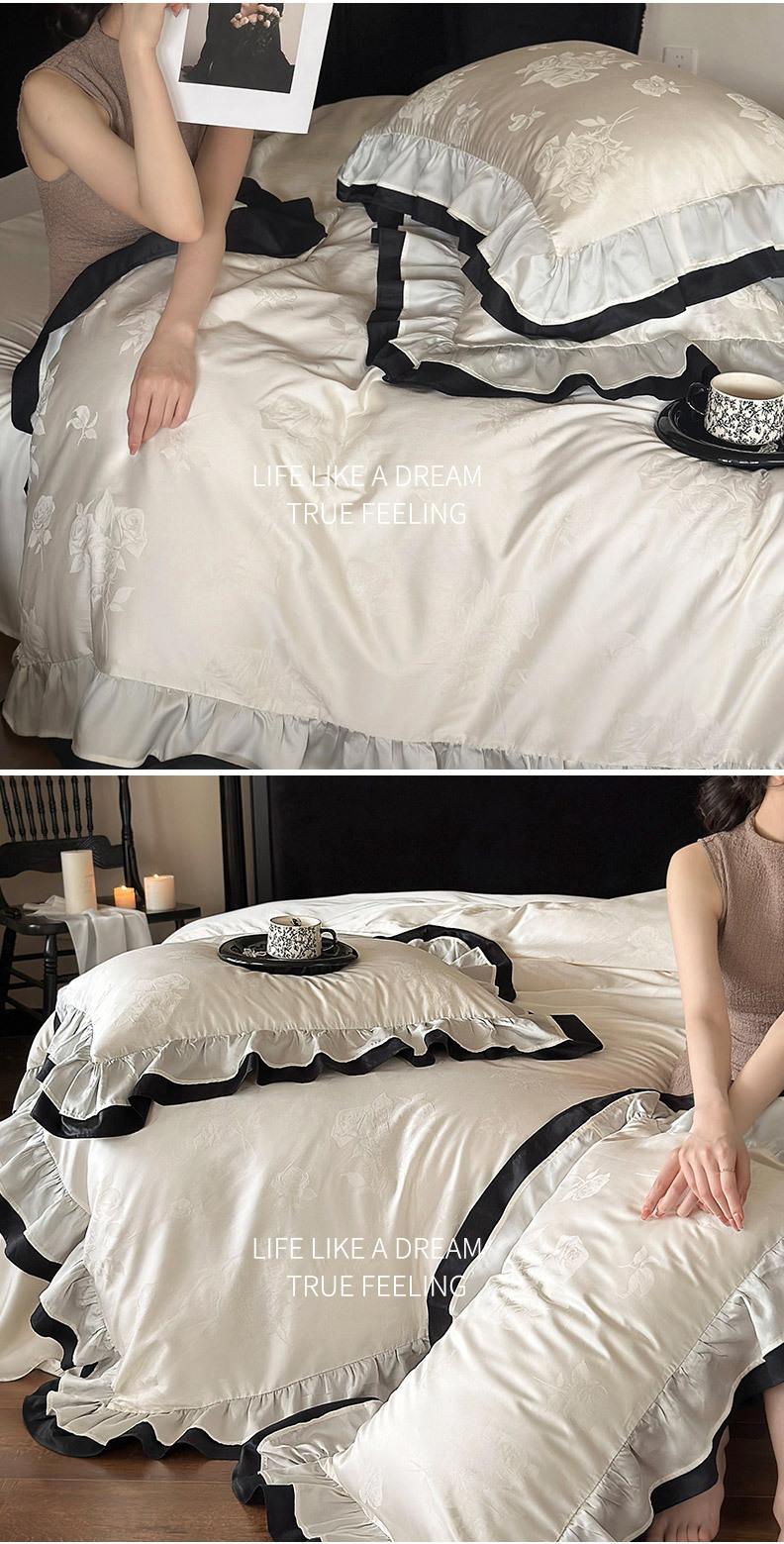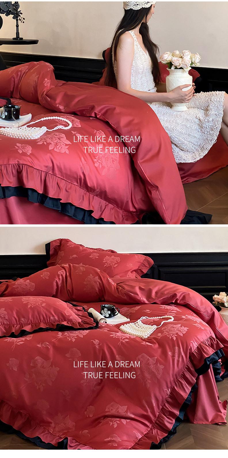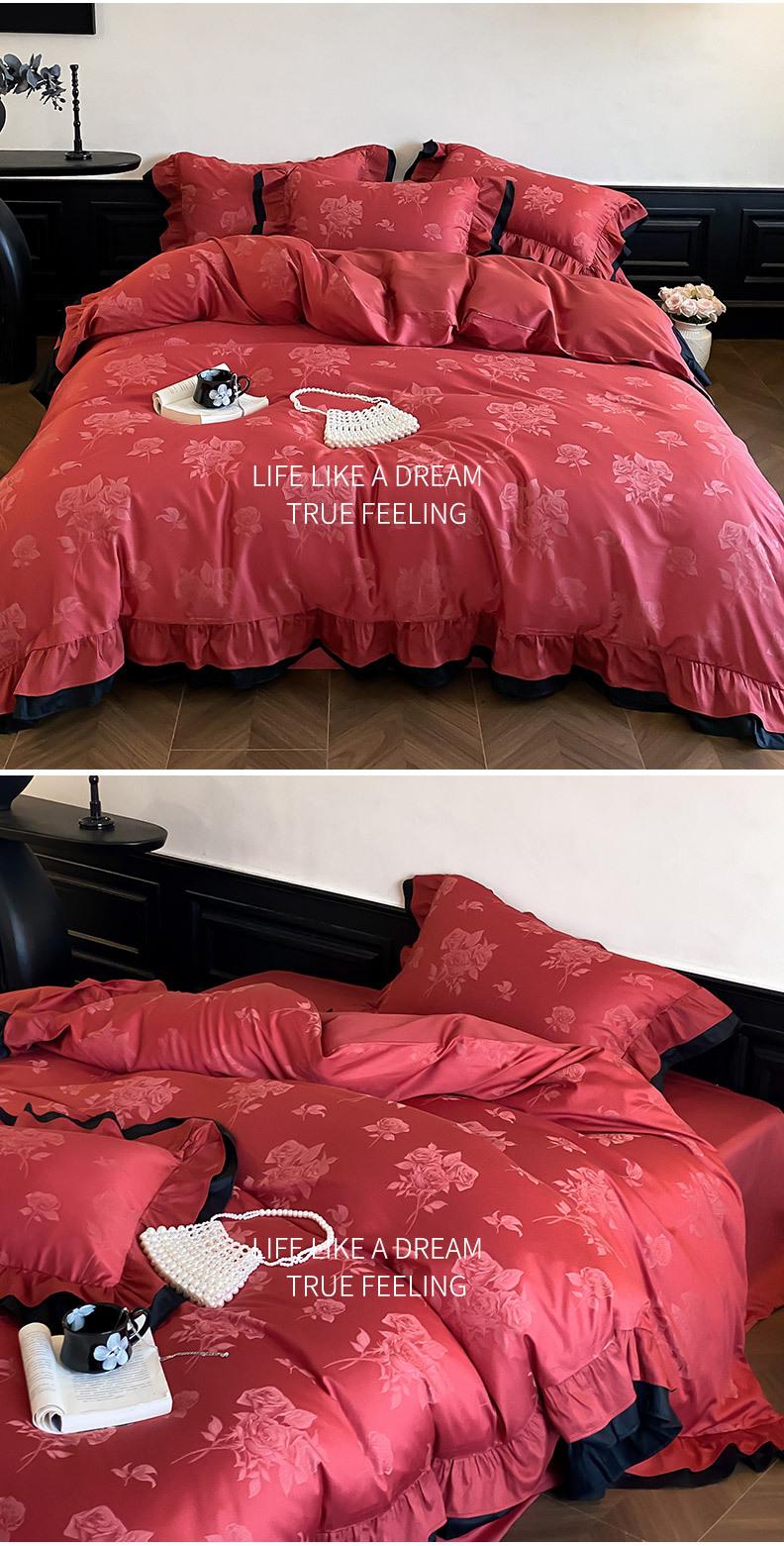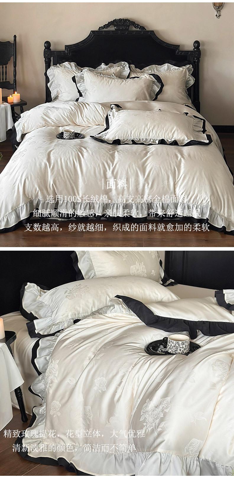 Edredón de algodón jacquard romántico de cuatro piezas con diseño de rosas, estilo francés retro, de fibra larga, 100S