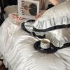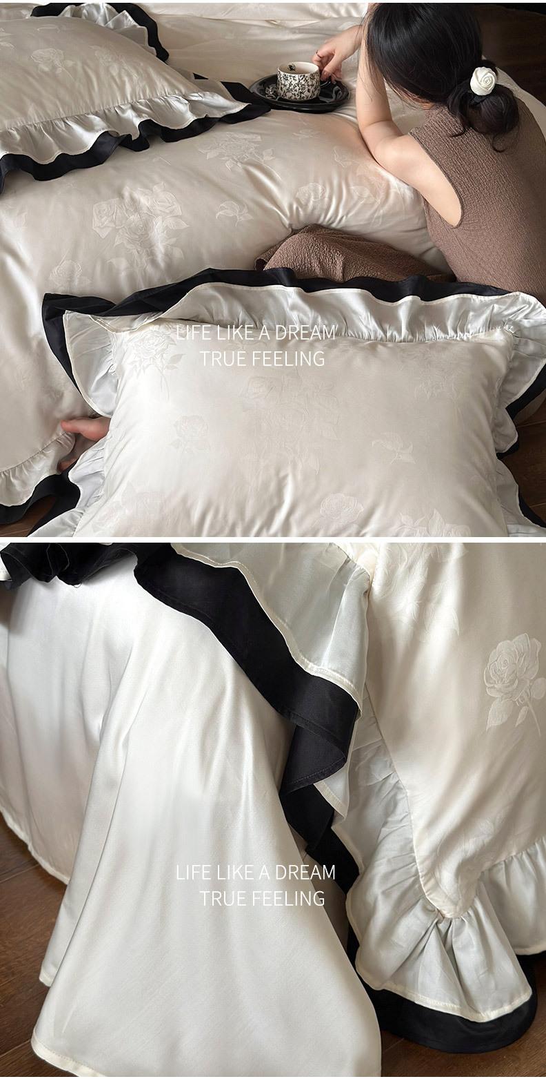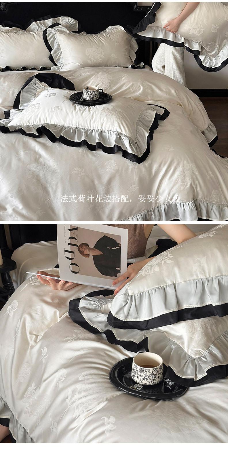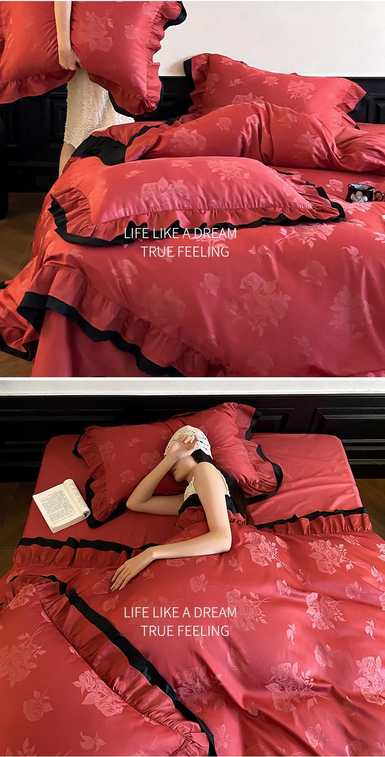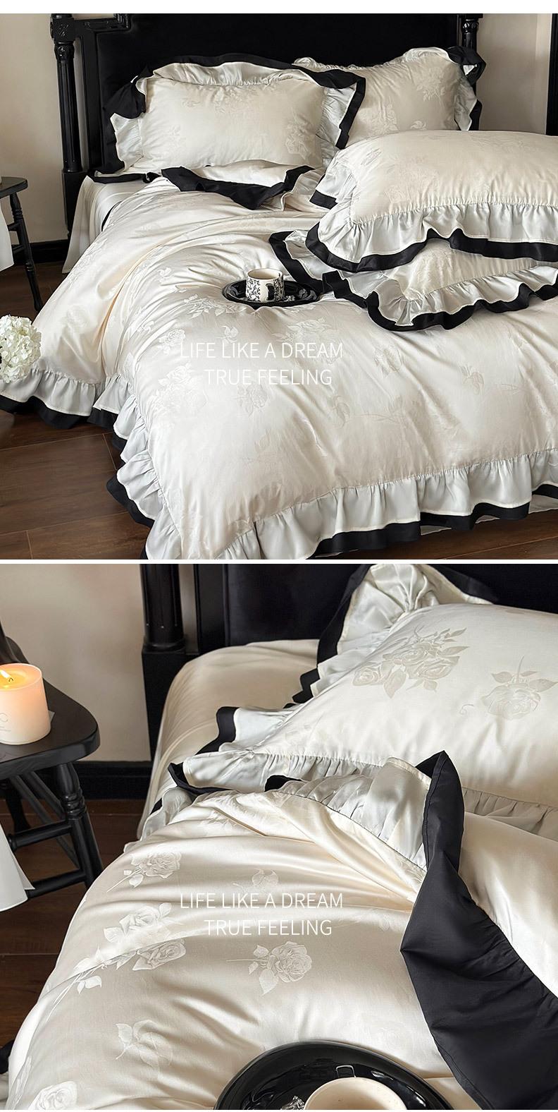 Edredón de algodón jacquard romántico de cuatro piezas con diseño de rosas, estilo francés retro, de fibra larga, 100S