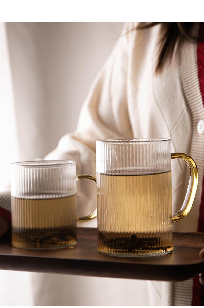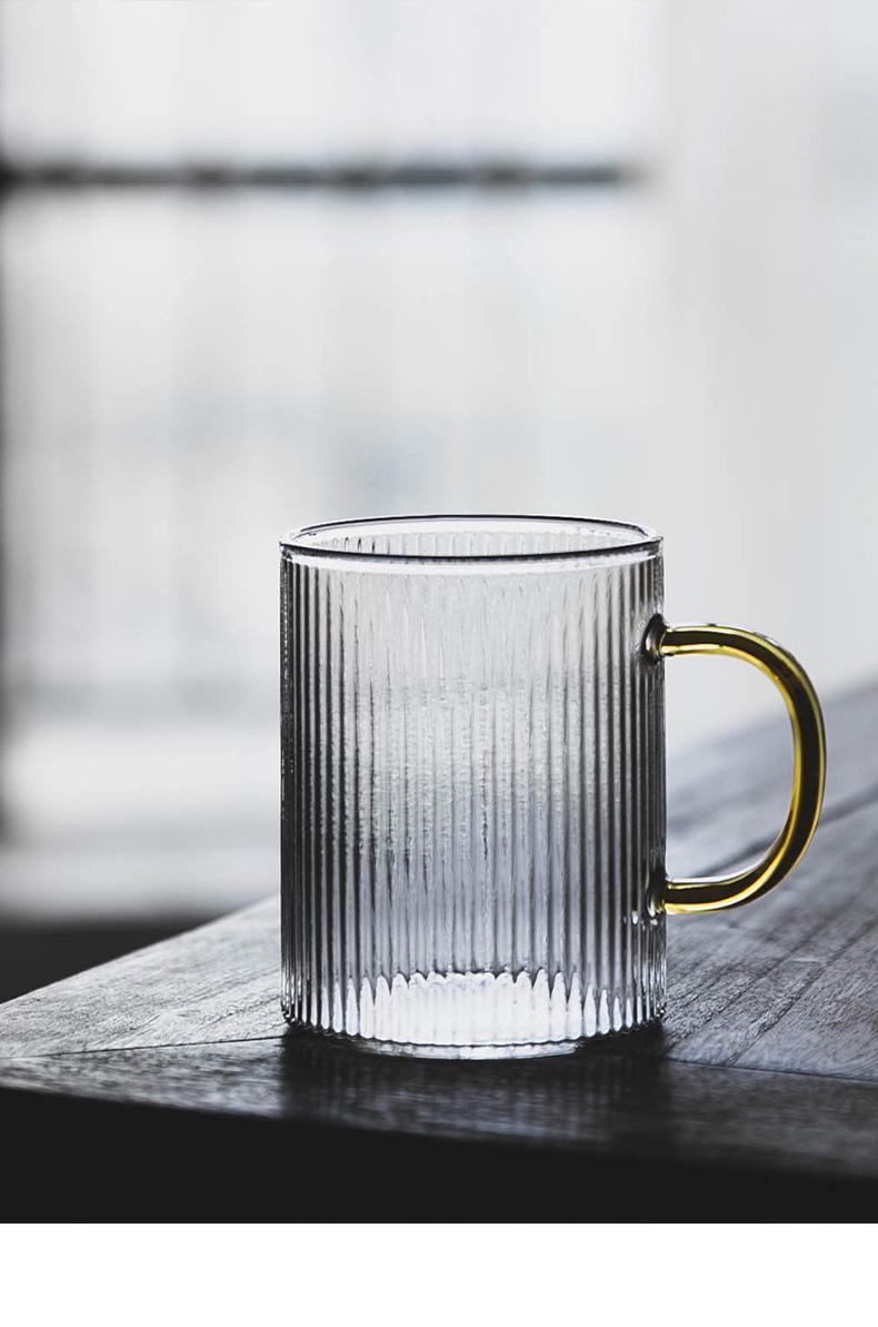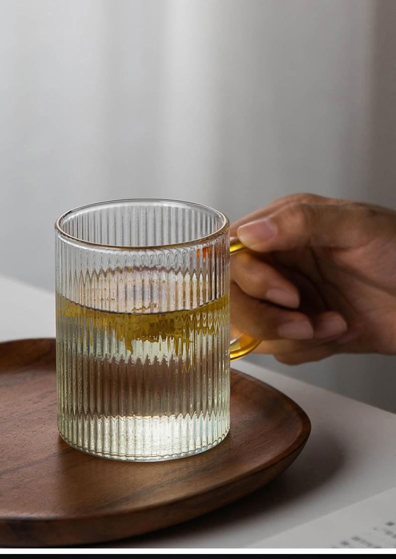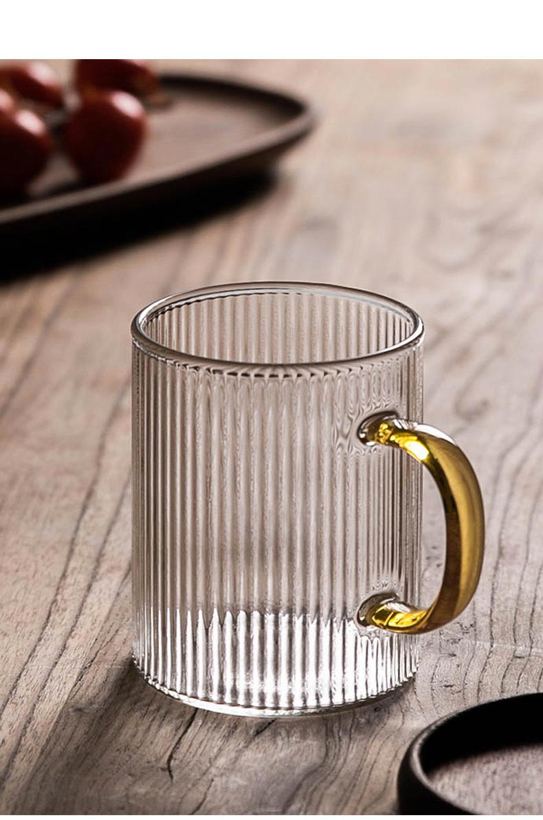 Vaso de Agua de Vidrio de Borosilicato Alto con Rayas Verticales, Estilo Japonés con Asa, Vaso Simple, Vaso Transparente para Café, Vaso para Jugo, Taza de Té