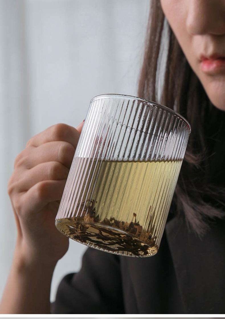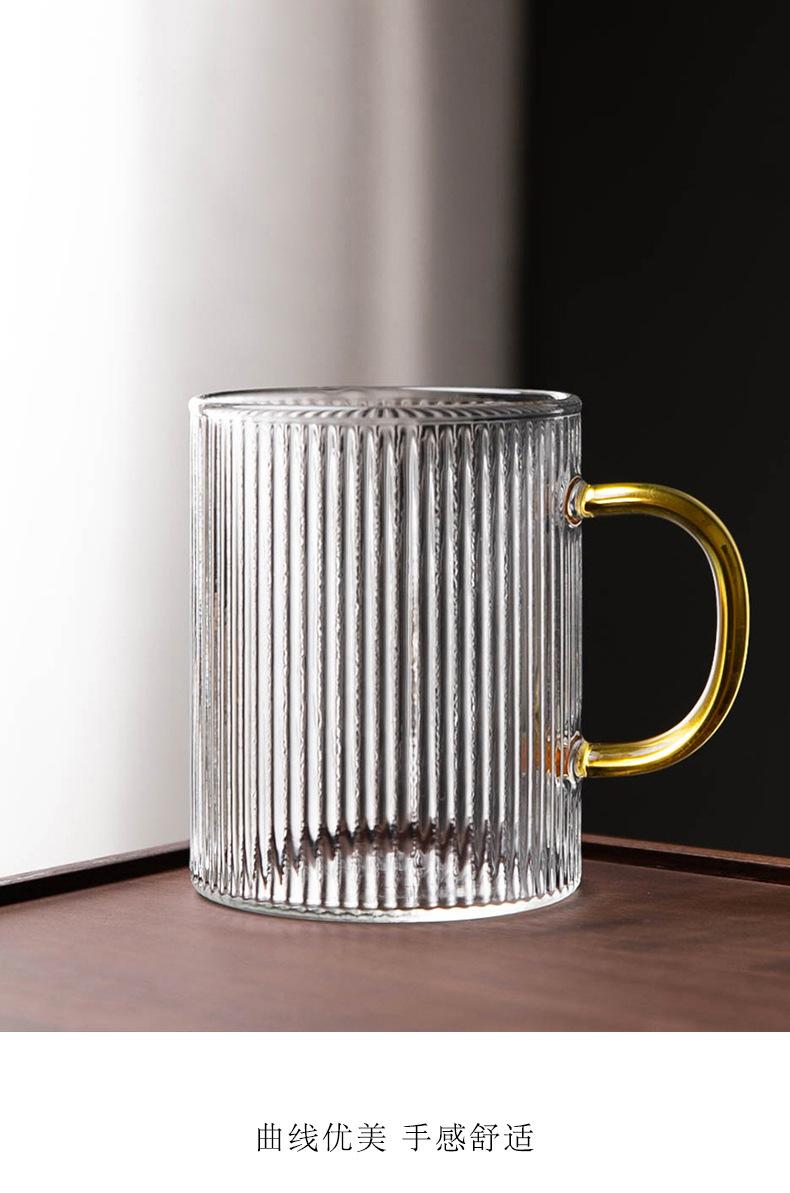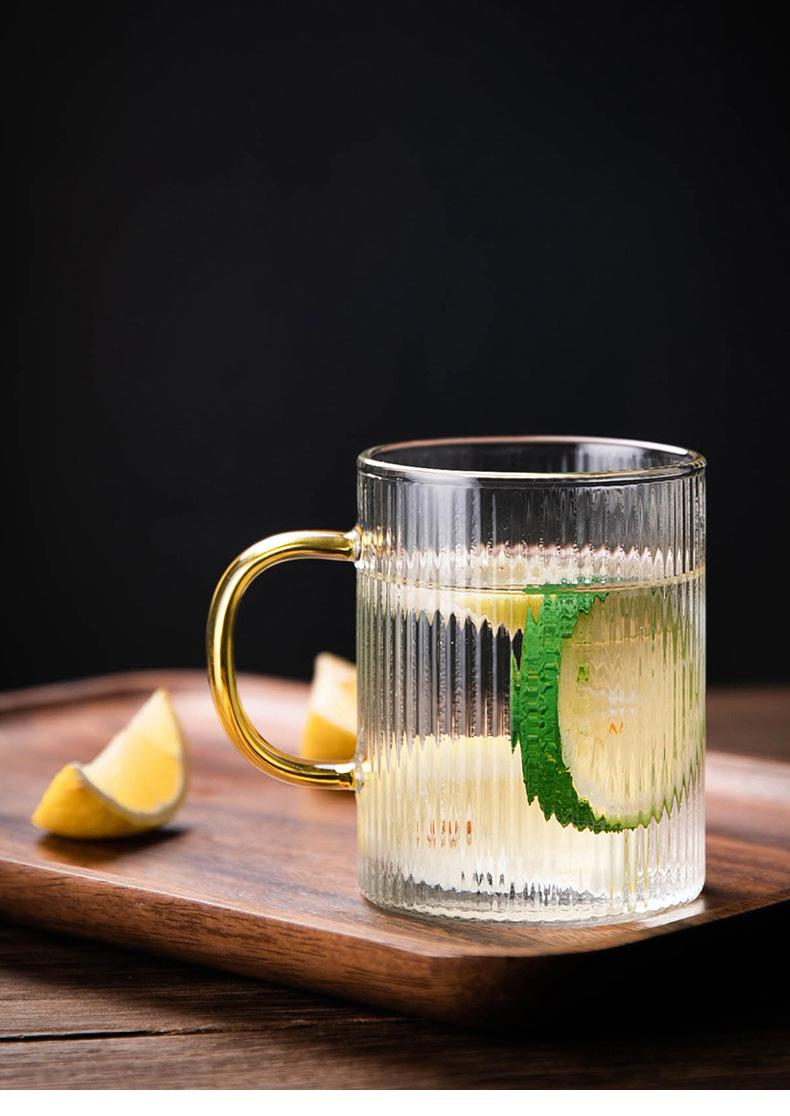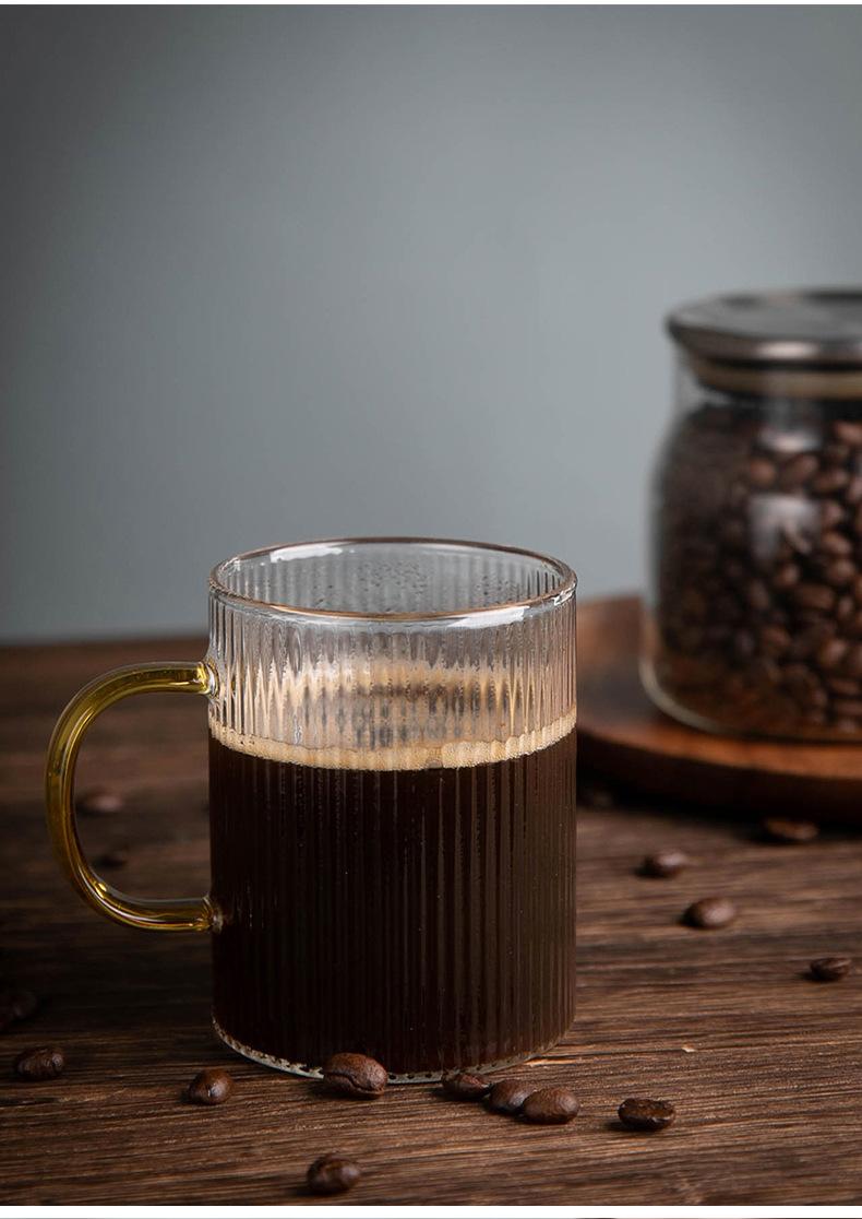 Vaso de Agua de Vidrio de Borosilicato Alto con Rayas Verticales, Estilo Japonés con Asa, Vaso Simple, Vaso Transparente para Café, Vaso para Jugo, Taza de Té