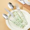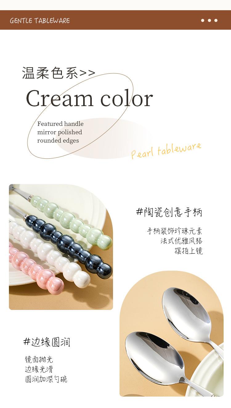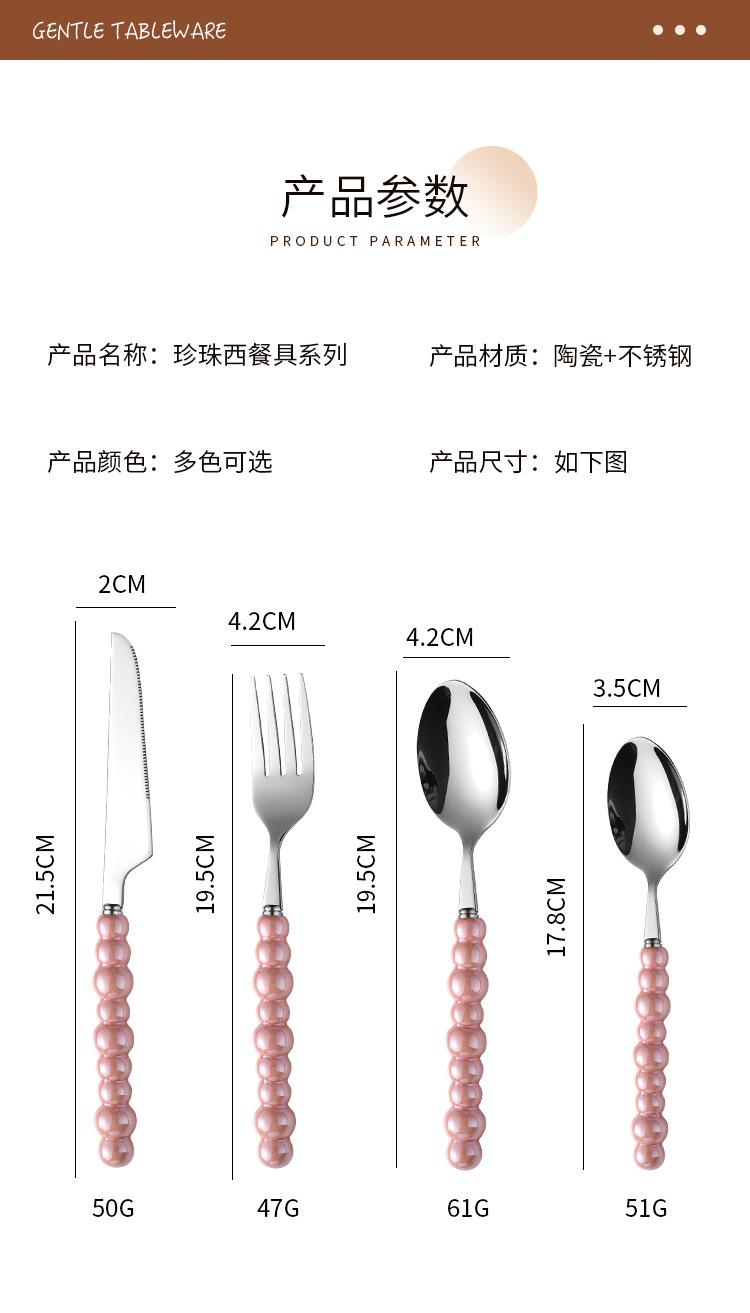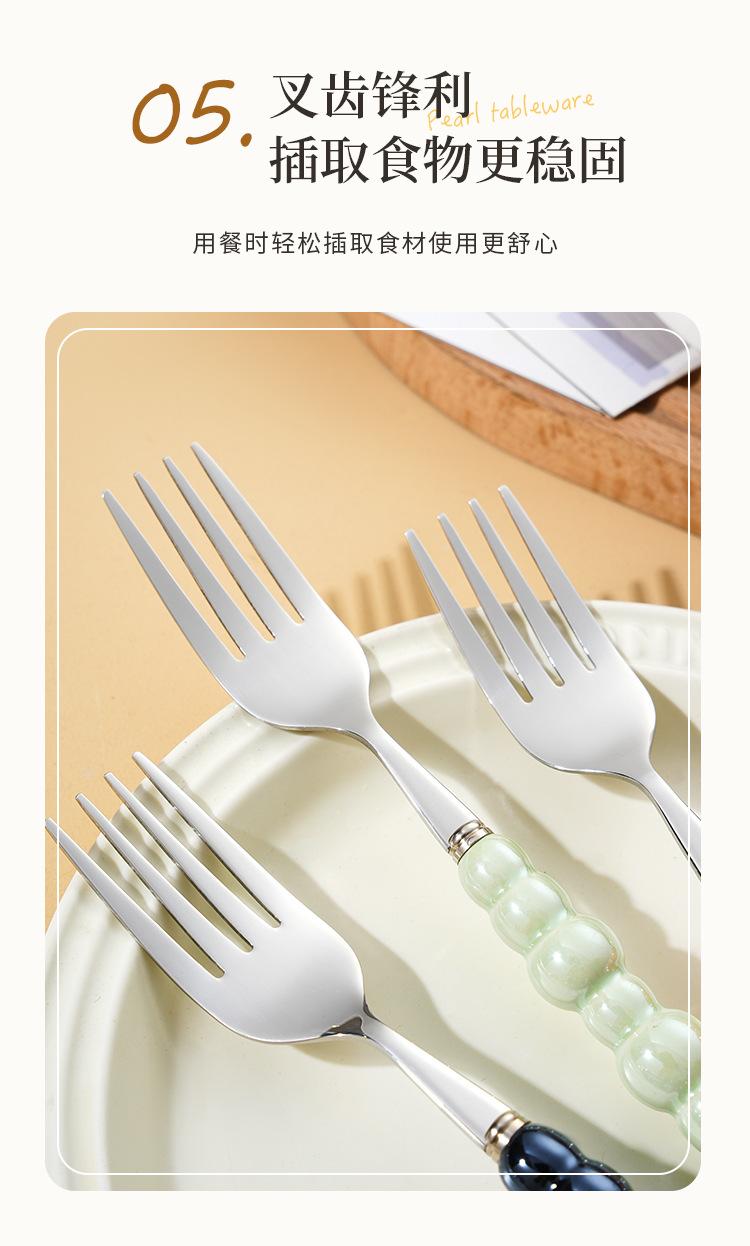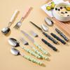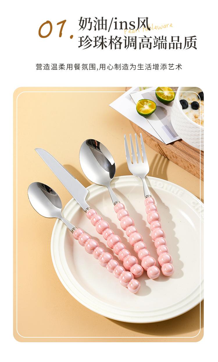 Lujo Ligero 304 Acero Inoxidable Cuchillo y Tenedor Cuchara Creativo Mango de Cerámica Perlada Vajilla Occidental Cuchillo y Tenedor para Bistec Cuchara de Postre