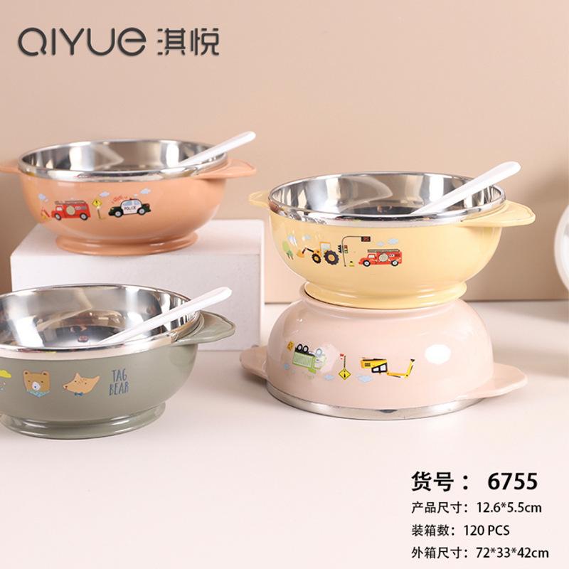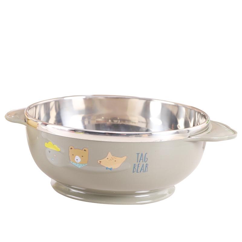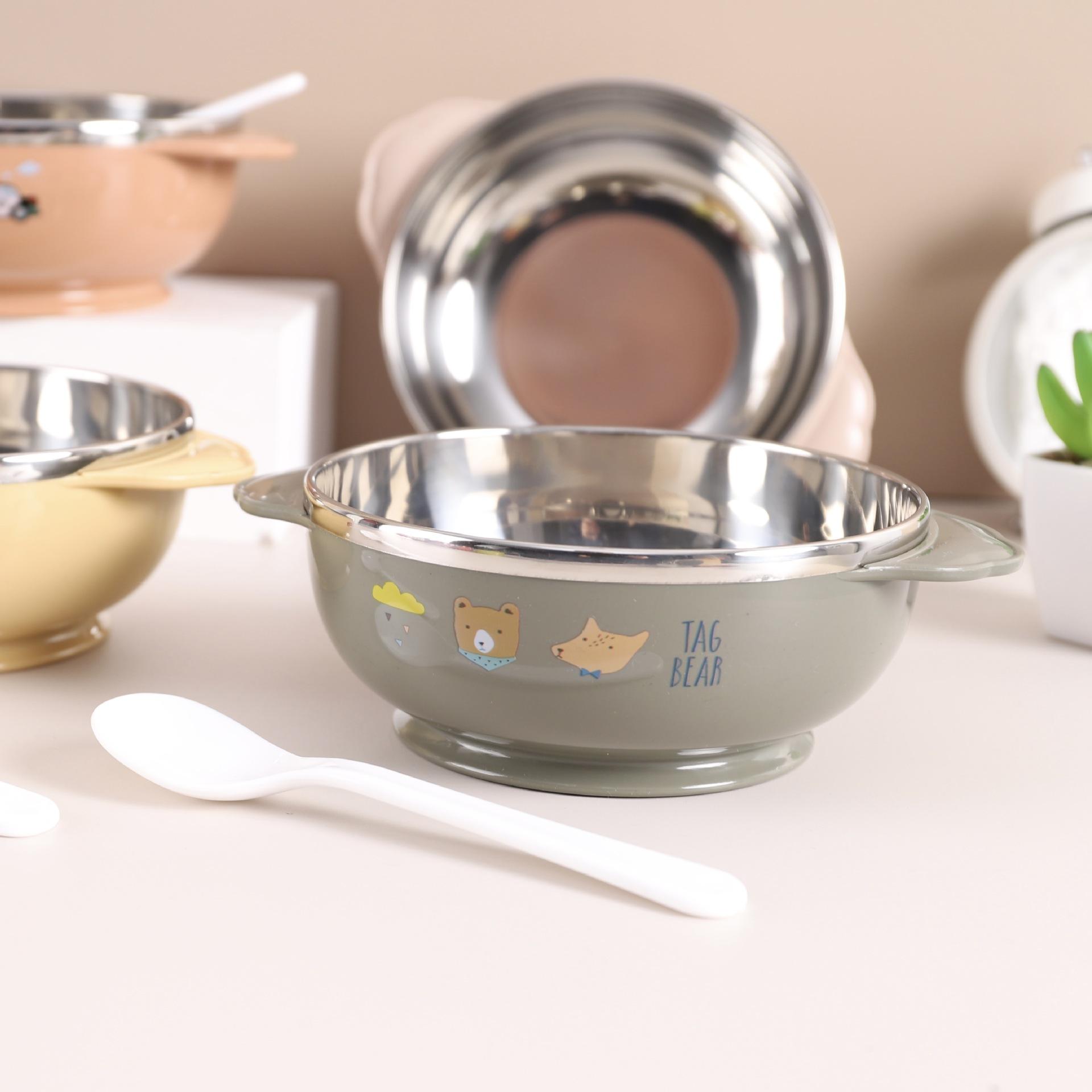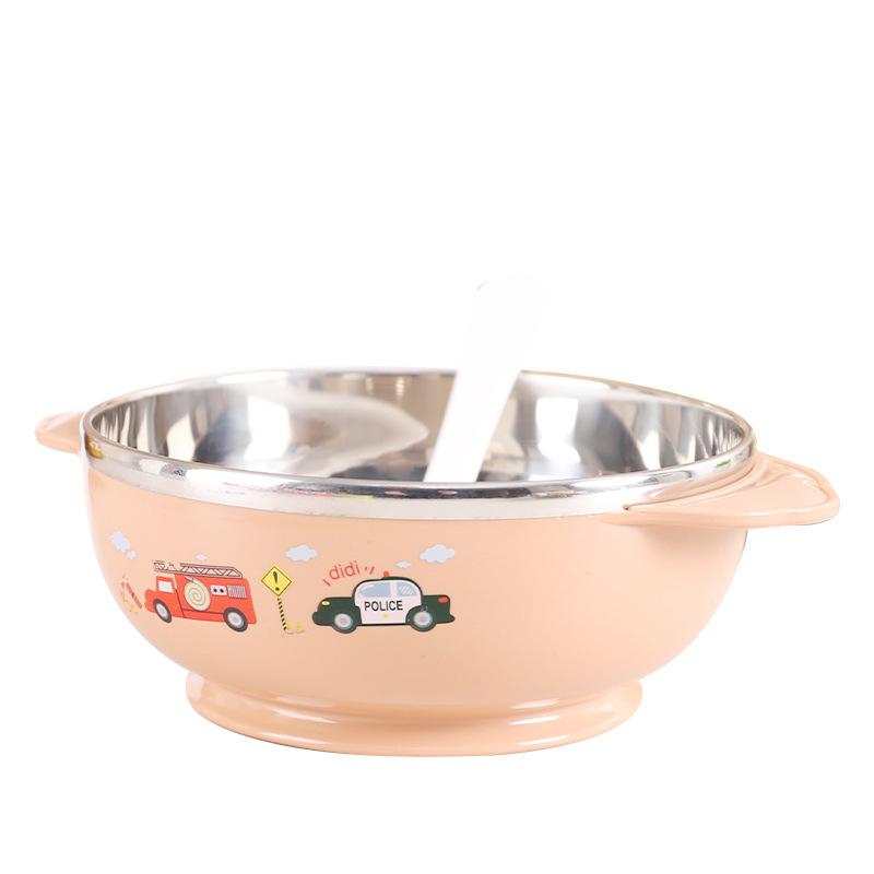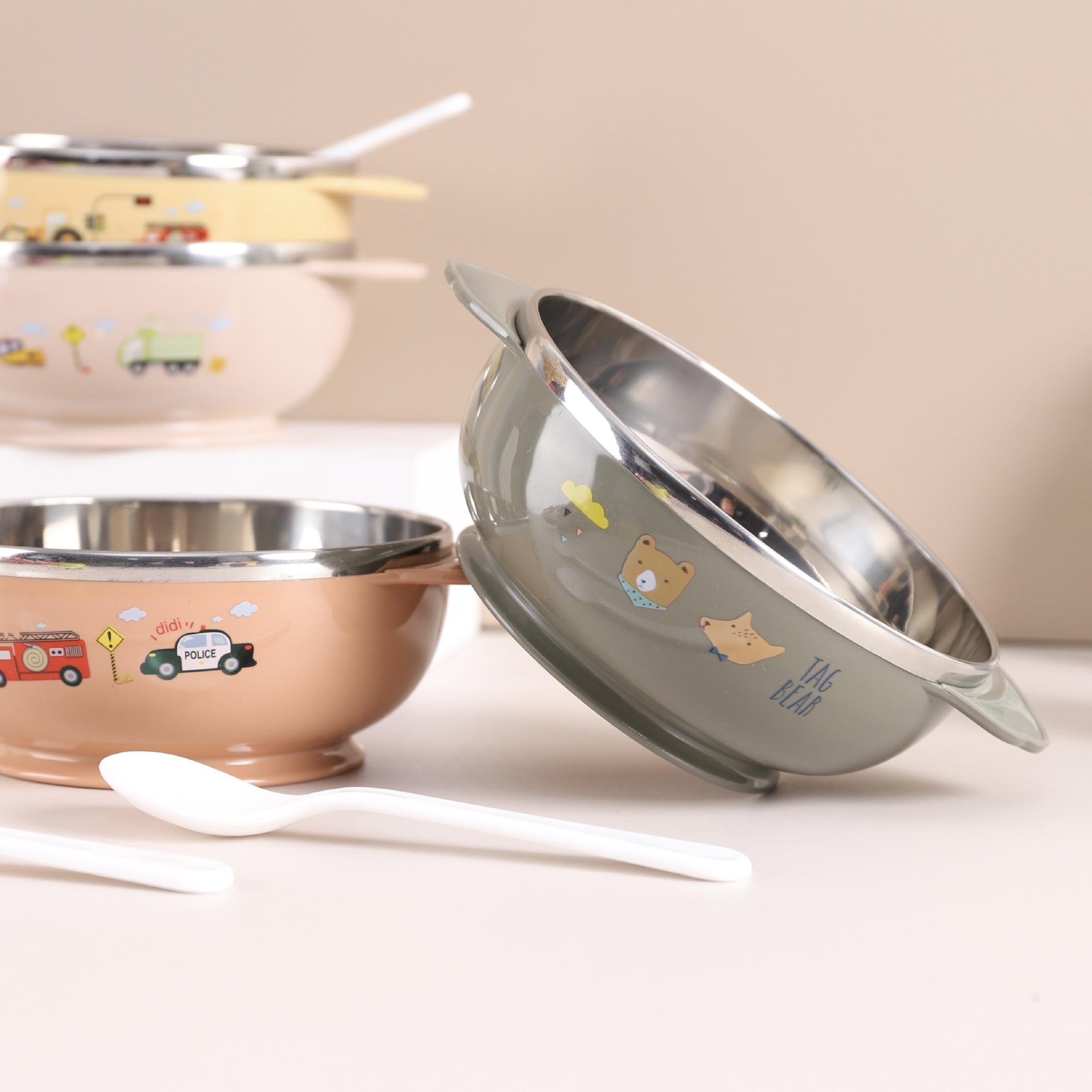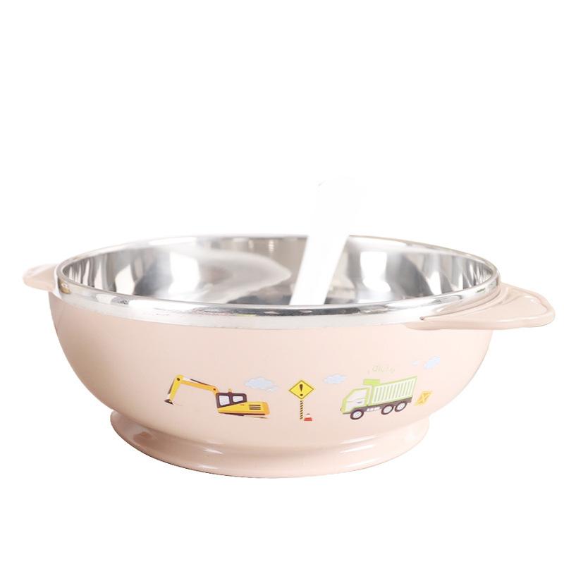 Nuevo tazón de acero inoxidable para niños, con dibujos animados, doble asa y tapa, cuchara, tazón de arroz, suplemento de comida para bebés, vajilla al por mayor
