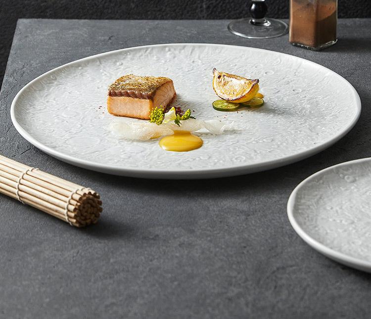 Compra Plato de cerámica, vajilla para el hogar, vajilla de sentido avanzado, plato de comida occidental para restaurante de hotel, plato de carne, plato redondo, plato poco profundo al por mayor en Joom.pro