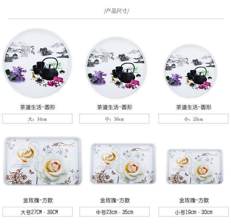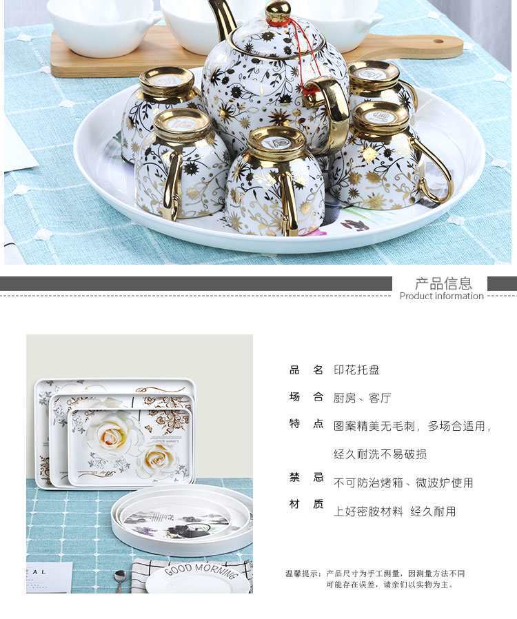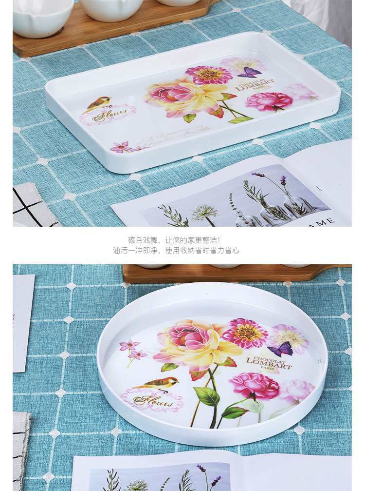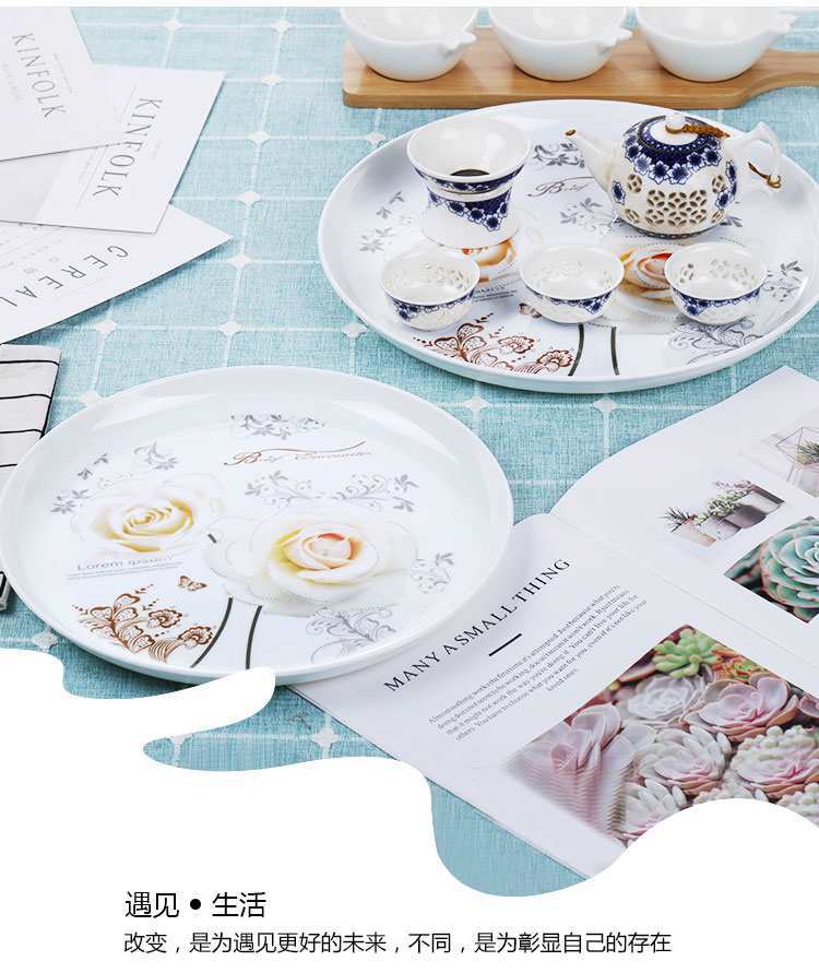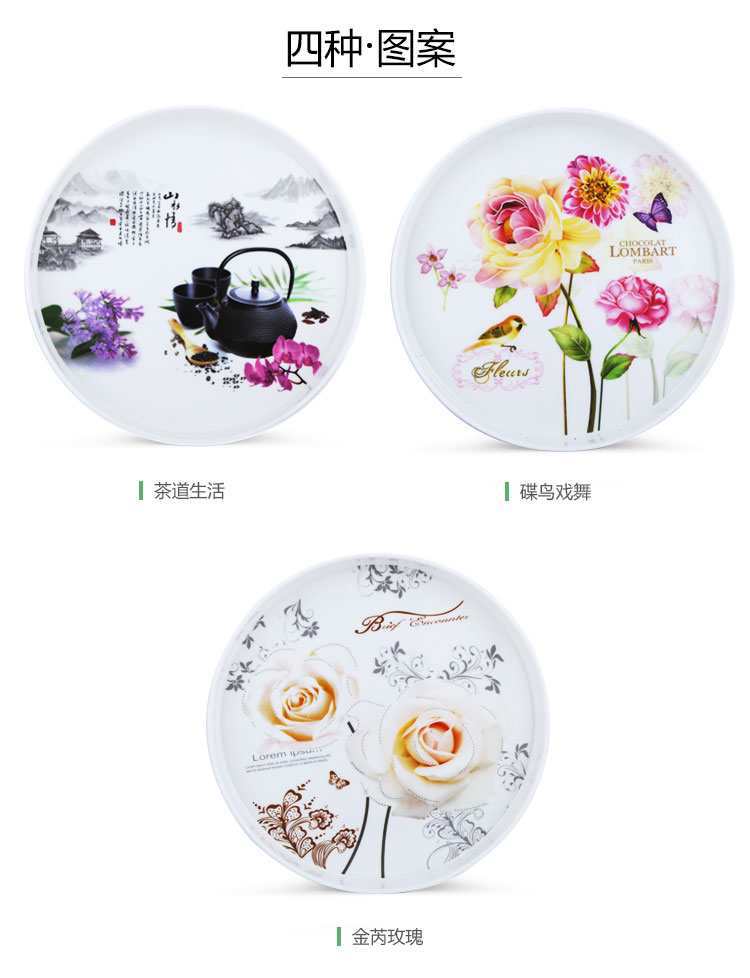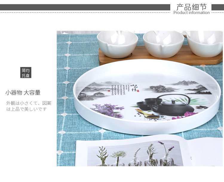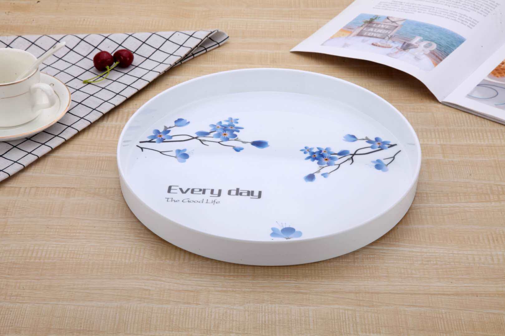 Venta al por mayor simple hogar redondo bandeja de té bandeja plástico taza tetera juego de té bandeja melamina borde recto restaurante hotel