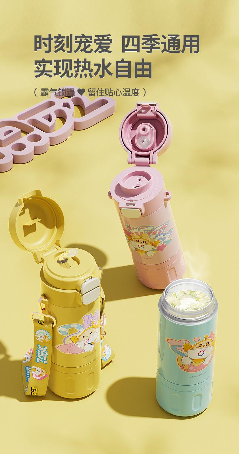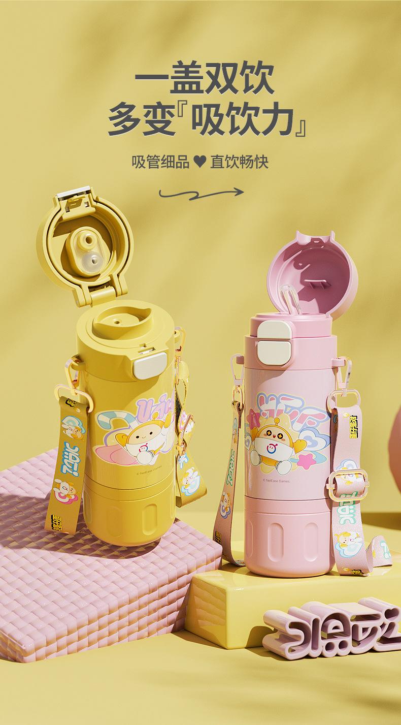 Termo Infantil Fiesta de Huevo Acero Inoxidable Gran Capacidad Doble Bebida Portátil Vaso de Agua con Pajita para Niñas Hervidor de Alto Valor