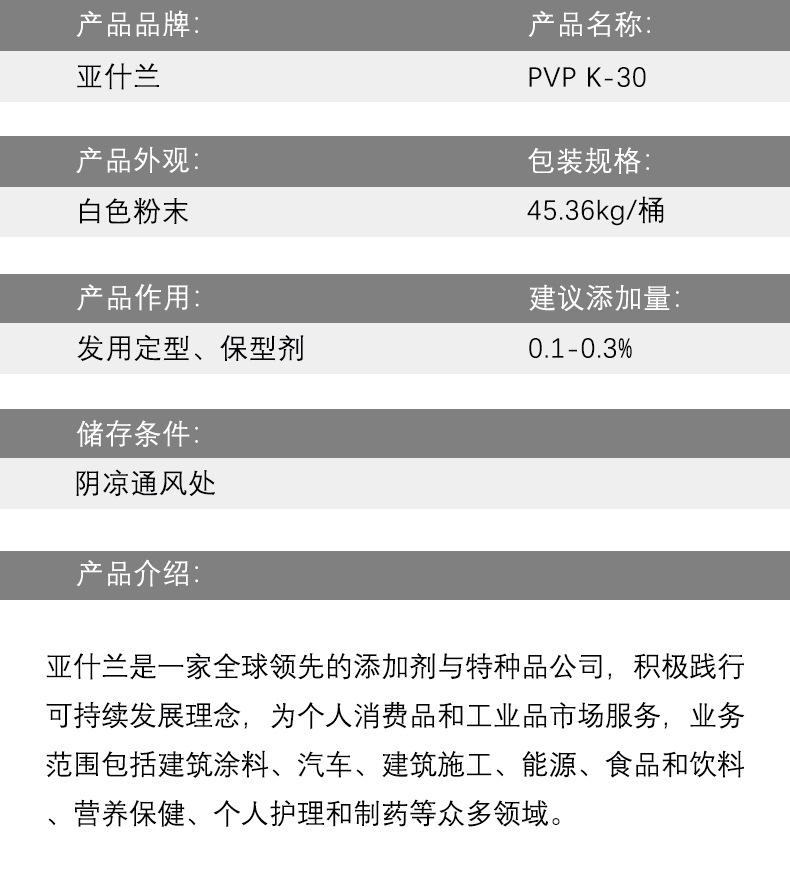 Compra American Ashland Pvpk30 Polivinil Pirrolidona K30 Agente Cosmético Formador de Película Materia Prima para Estilizado del Cabello al por mayor en Joom.pro