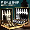 Amazon 1010 Vajilla de Acero Inoxidable Juego de Regalo de 24 piezas en Caja de Madera Cuchillo para Bistec, Tenedor y Cuchara