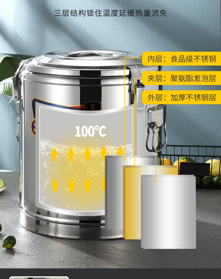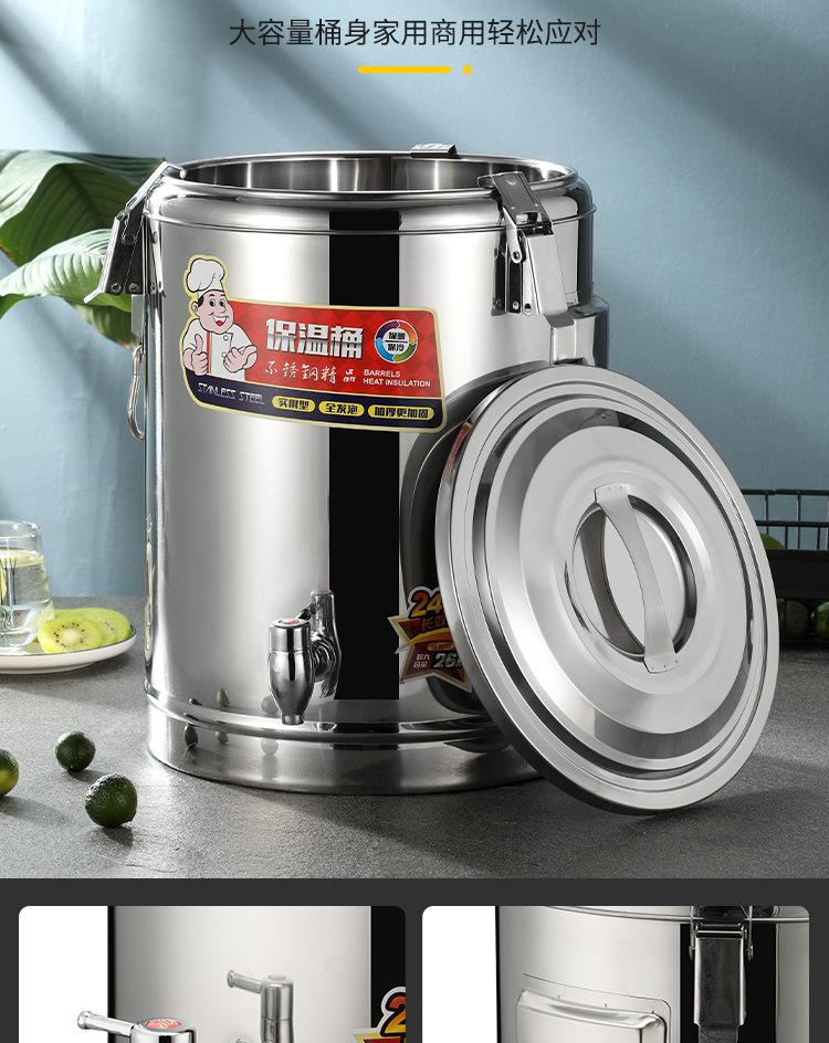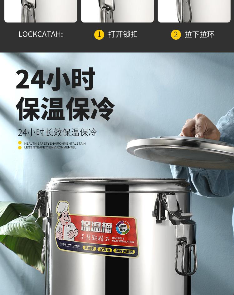 Cubo de acero inoxidable para conservación del calor, cubo comercial de gran capacidad para conservación del calor del arroz, cubo para leche de soja, cubo para té, cubo para sopa tipo cantimplora