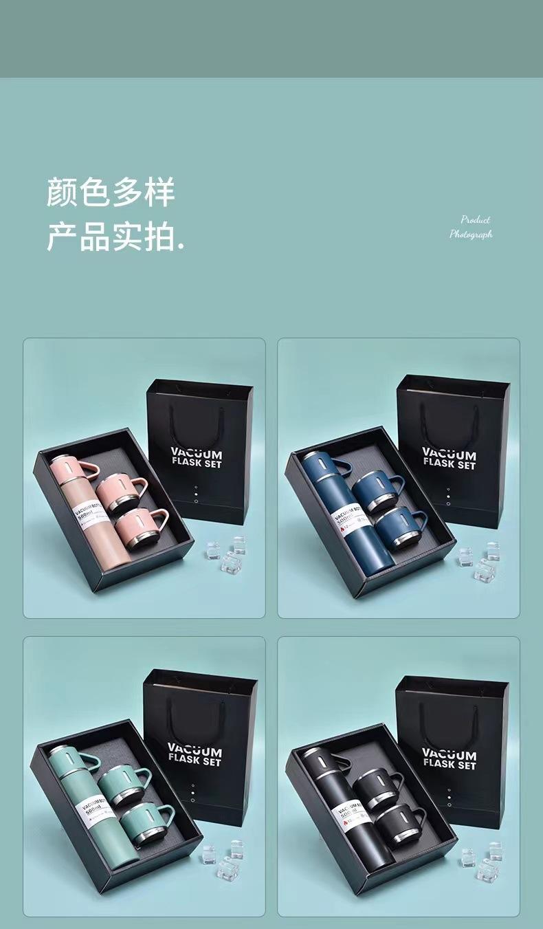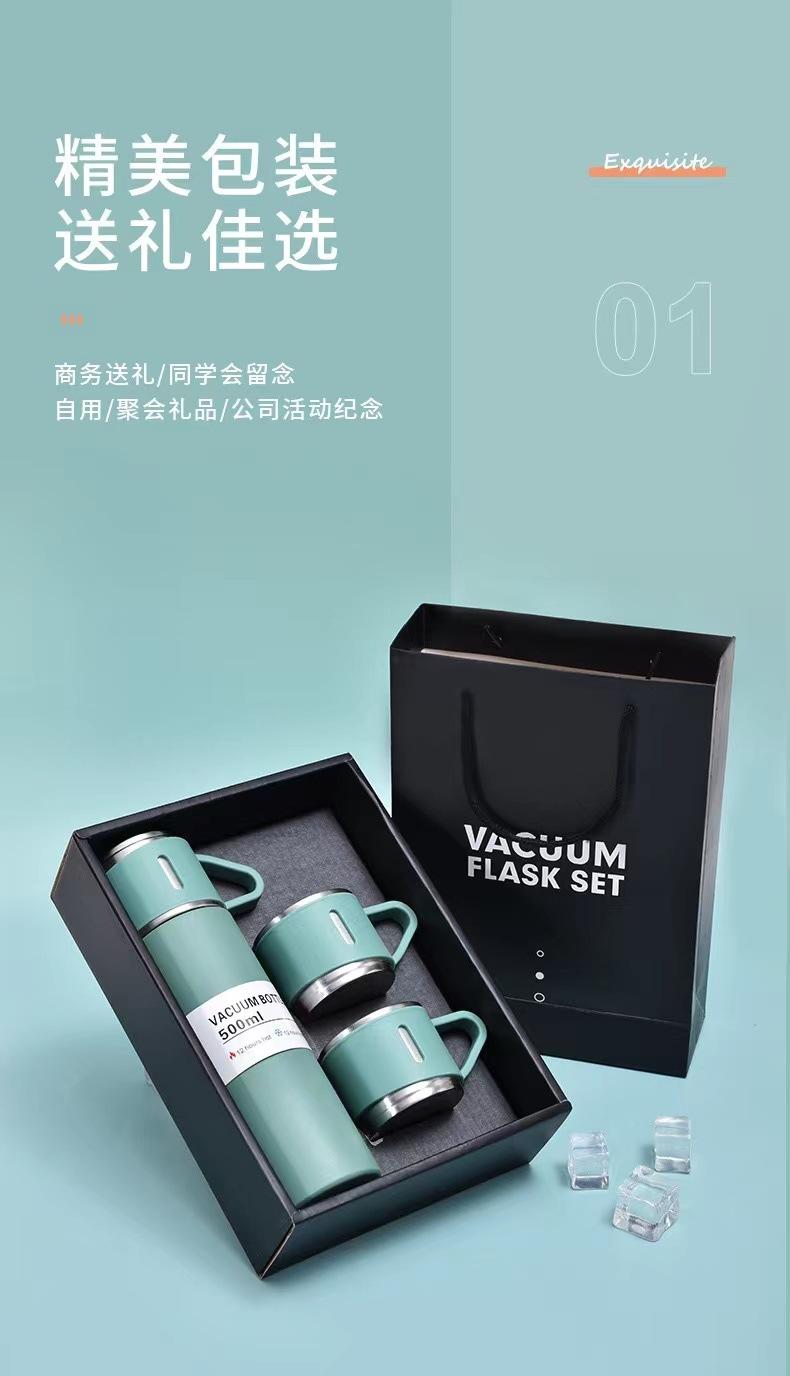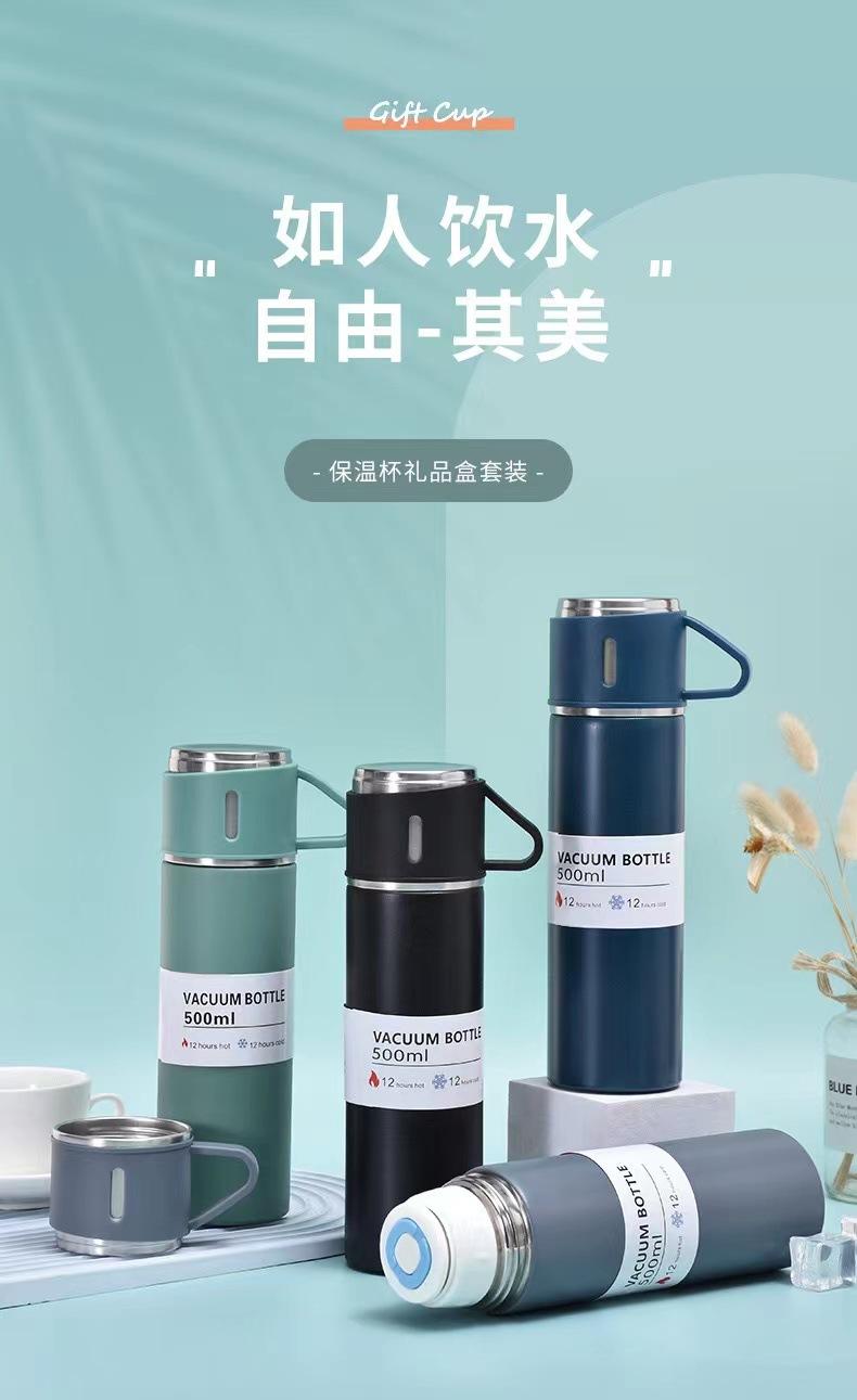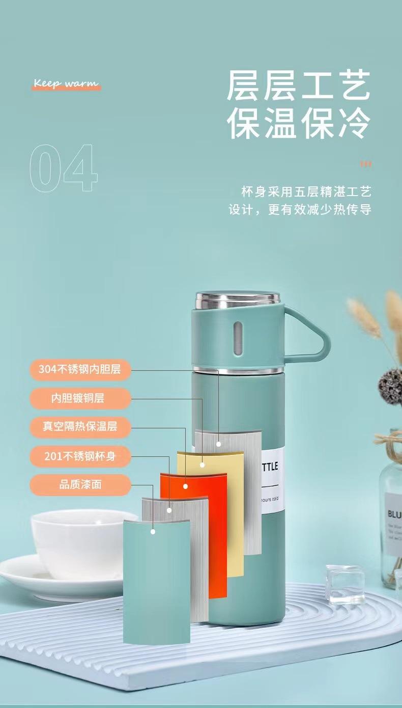 Termo de acero inoxidable 304 transfronterizo para oficina, taza de té recta, juego de tres tapas, regalo al por mayor