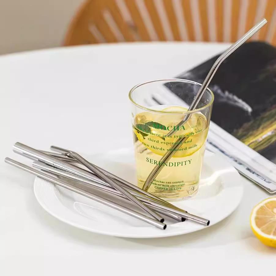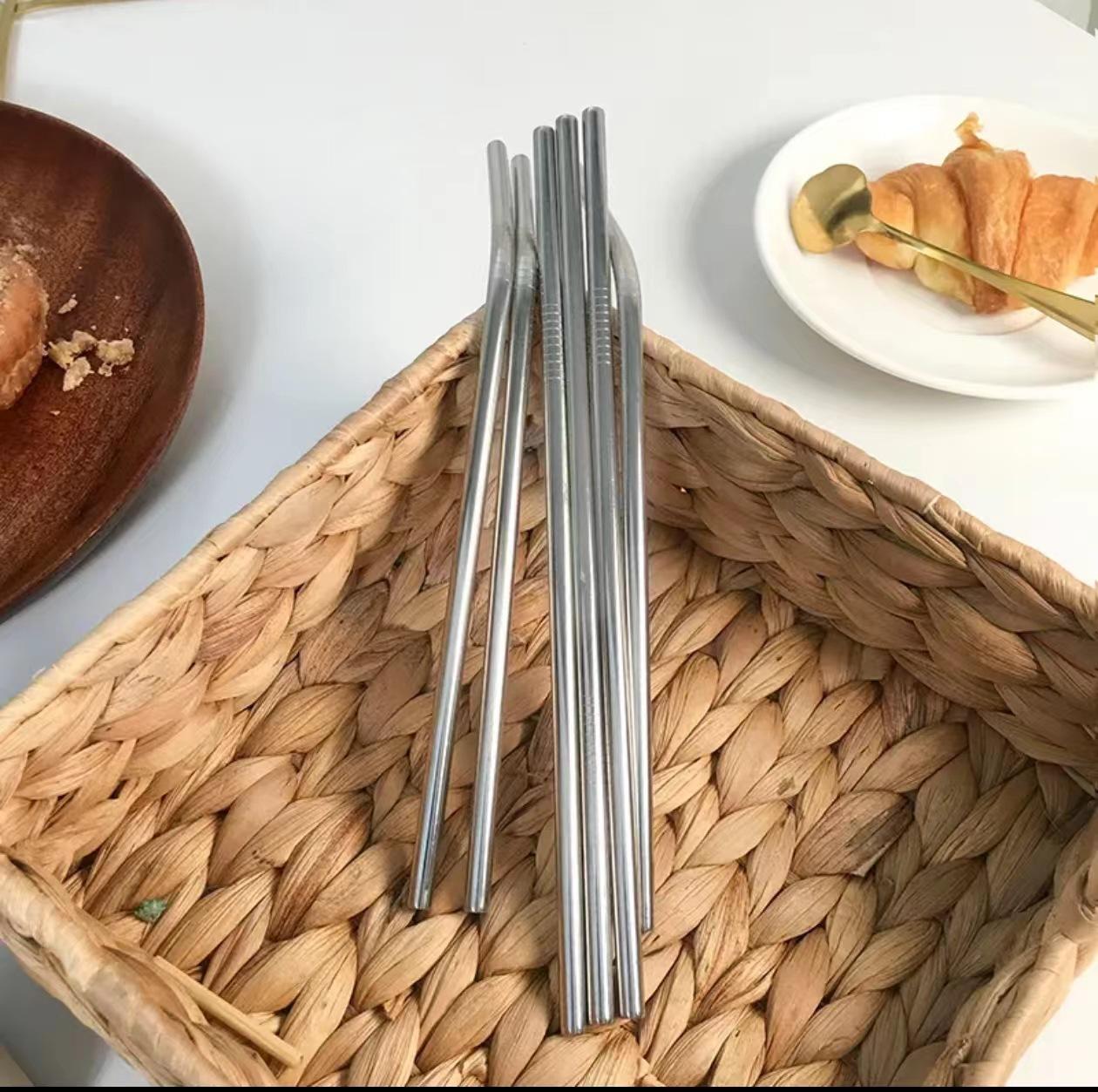 Pajita de acero inoxidable 304 para leche, té, café, bebidas, creativa, juego de pajitas, cepillo de limpieza especial portátil.