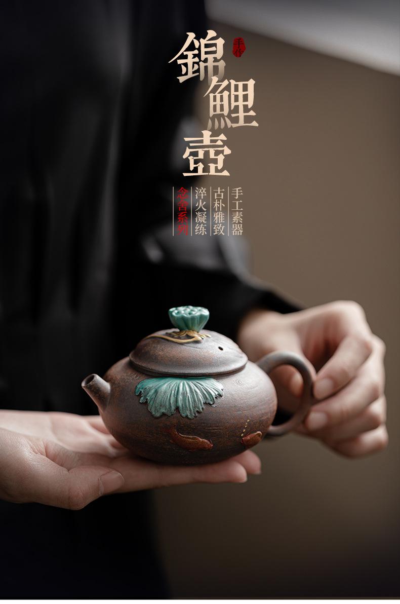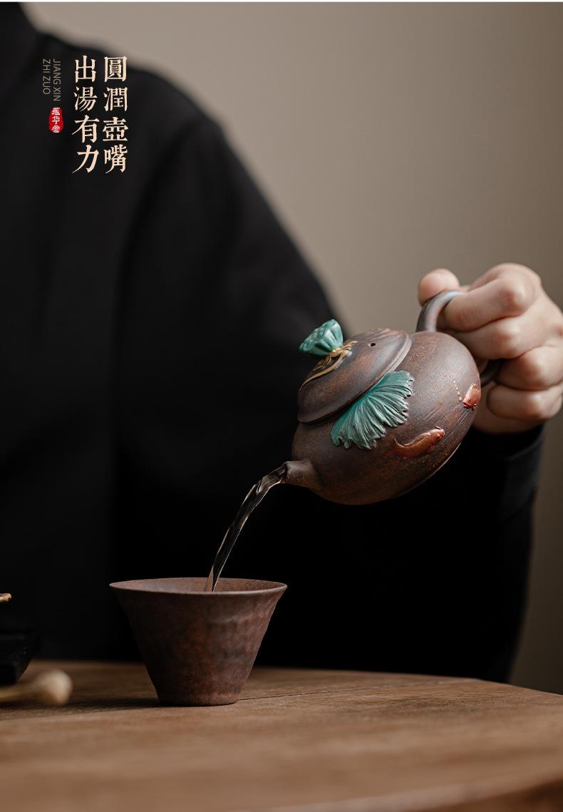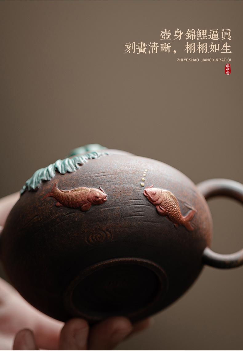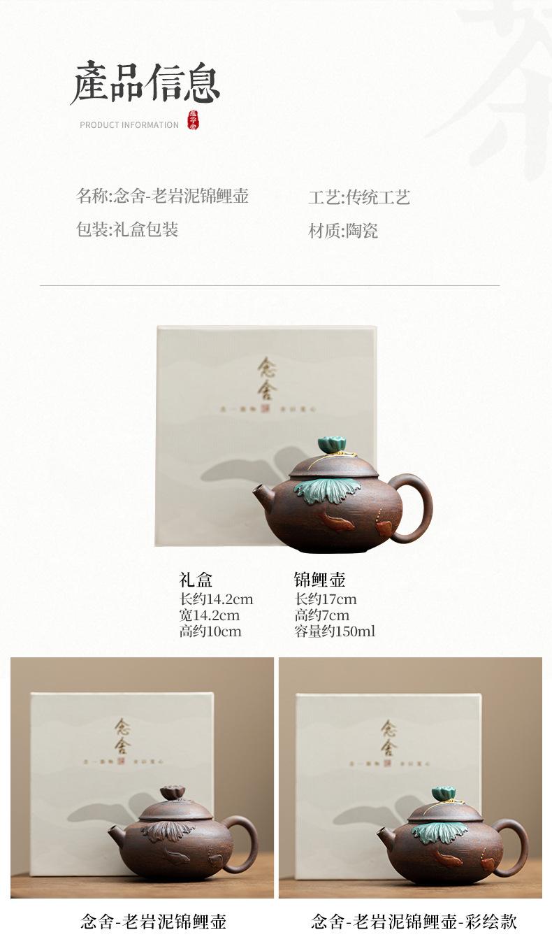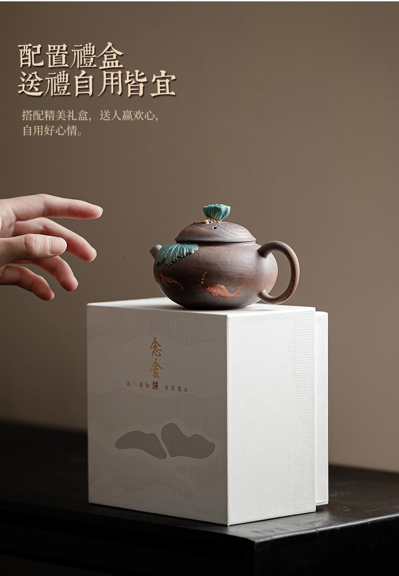 Tetera de cerámica con filtro, tetera de barro de roca antigua, tetera koi, regalo para el hogar, juego de té Kung Fu vintage, tetera individual, caja de regalo