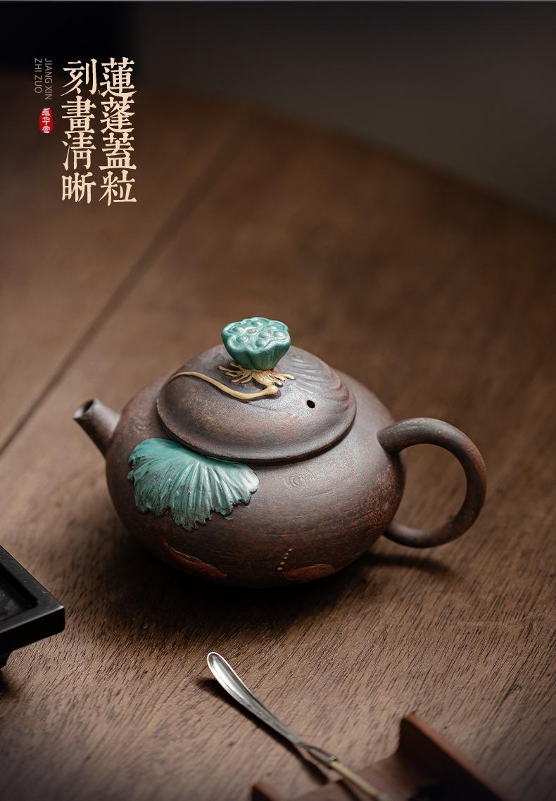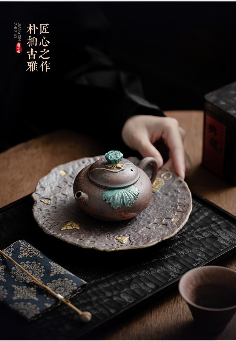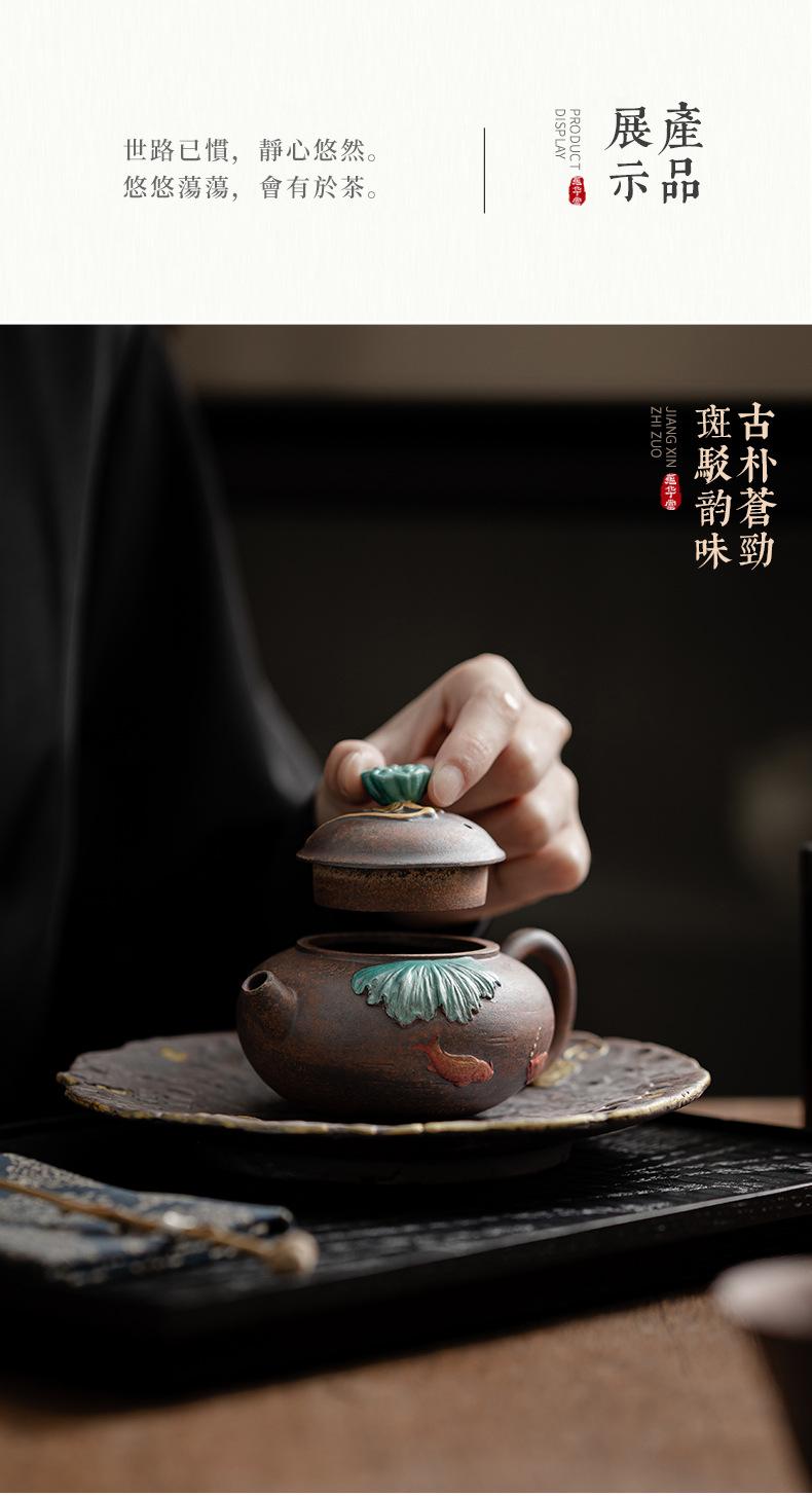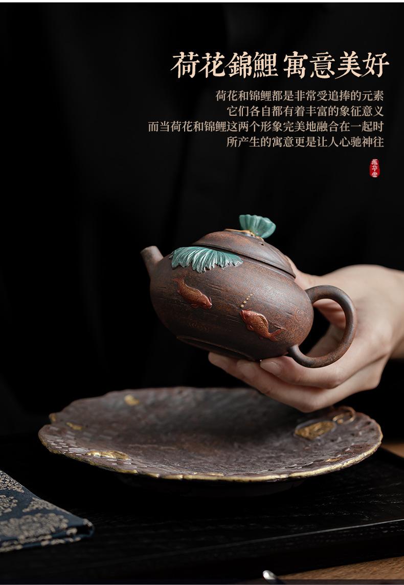 Tetera de cerámica con filtro, tetera de barro de roca antigua, tetera koi, regalo para el hogar, juego de té Kung Fu vintage, tetera individual, caja de regalo