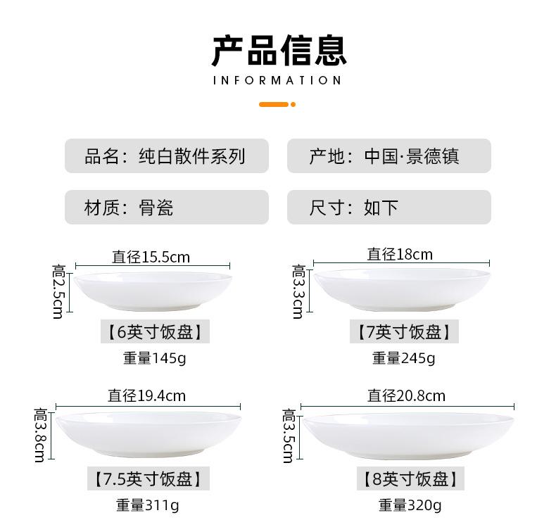 Compra Plato Hogar Plato de boca profunda Plato de porcelana blanca de hueso Plato de cerámica Juego combinado Blanco puro Plato hondo Vajilla de porcelana blanca al por mayor en Joom.pro