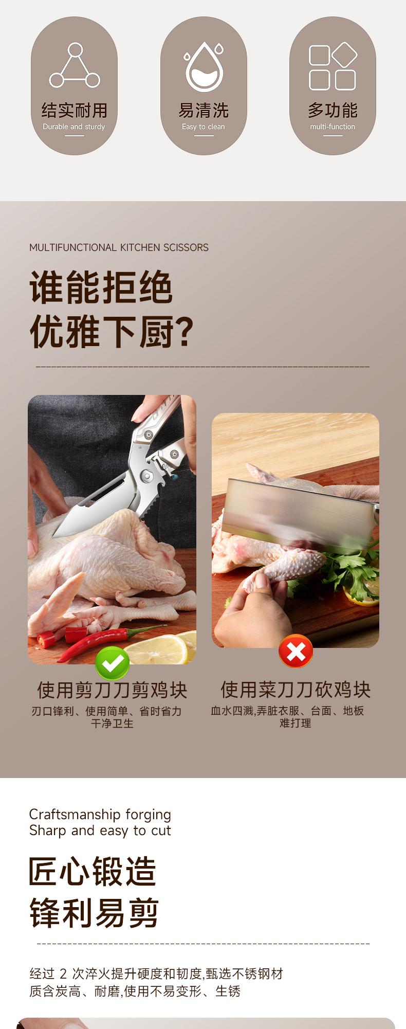 Tijeras de cocina de acero inoxidable para huesos de pollo, cuchillo tijeras para huesos de pollo, espinas de pescado, raspador de escamas de pescado, tijeras para verduras, tijeras multiusos para alimentos y hogar