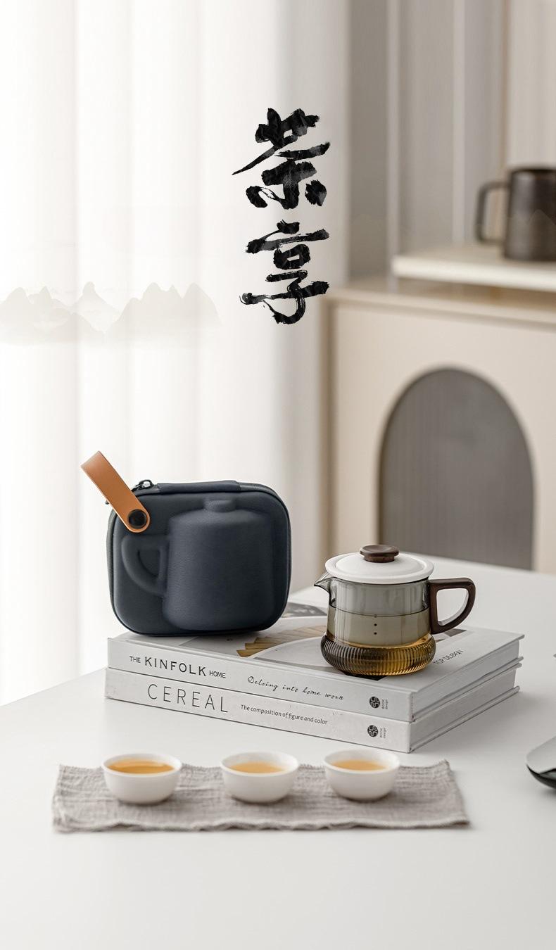 Juego de Té de Viaje Portátil traje Taza Expreso Personal para Exterior Una Tetera Tres Tazas Tetera para Camping al Aire Libre