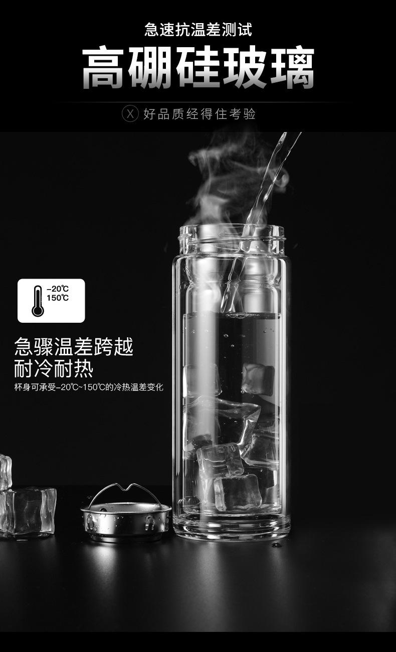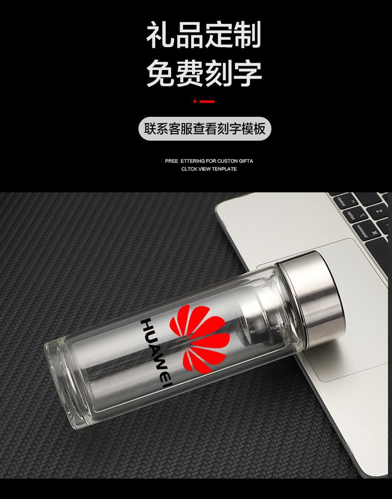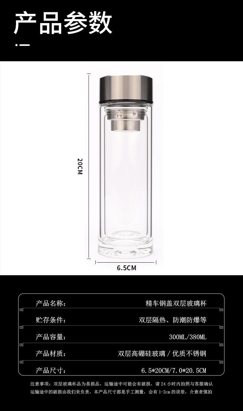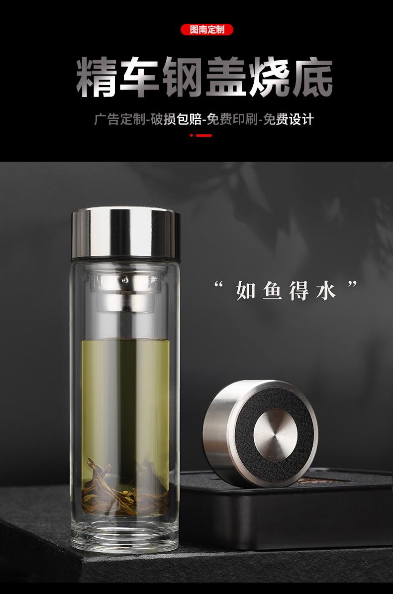 Vaso de agua con publicidad creativa de vidrio de doble capa con cubierta de acero Seiko, impresión de logotipo, vidrio de borosilicato alto, regalo, pequeño obsequio