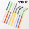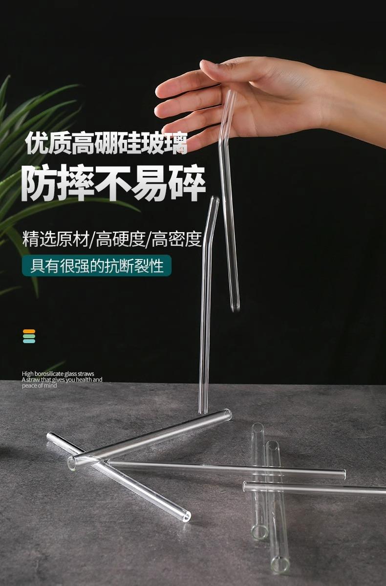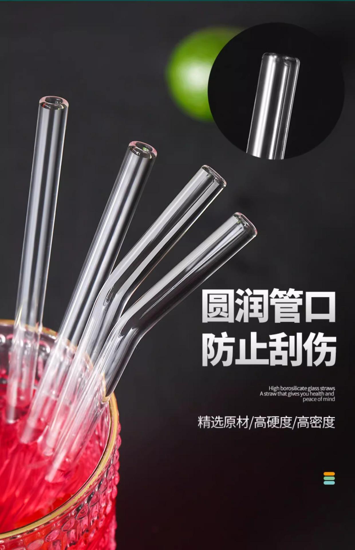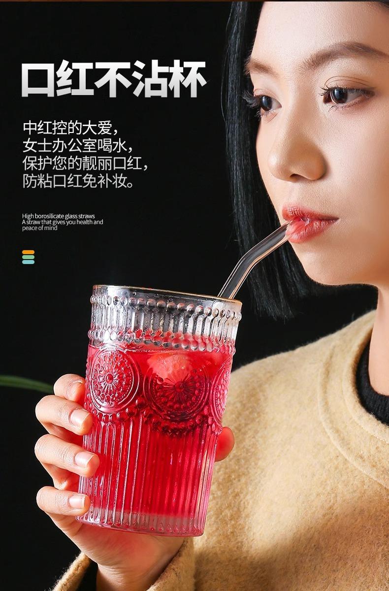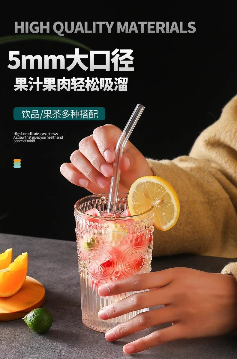 Pajita de vidrio alargada curvada rojo neto grado alimenticio resistente al calor lápiz labial transparente para beber café bebida pajita materna