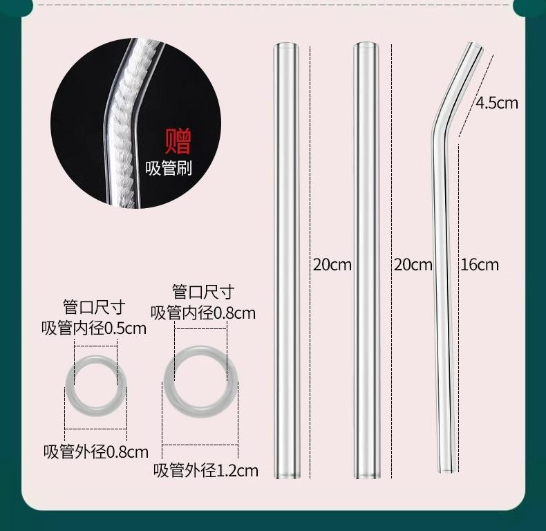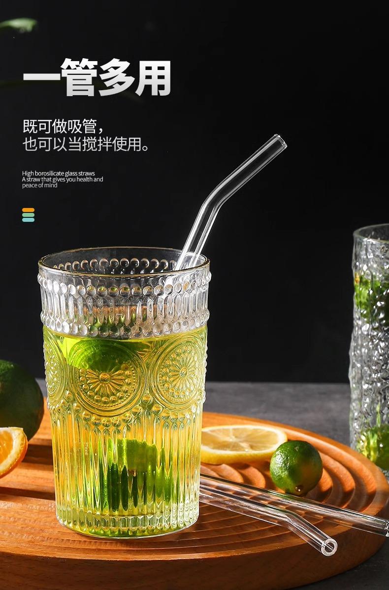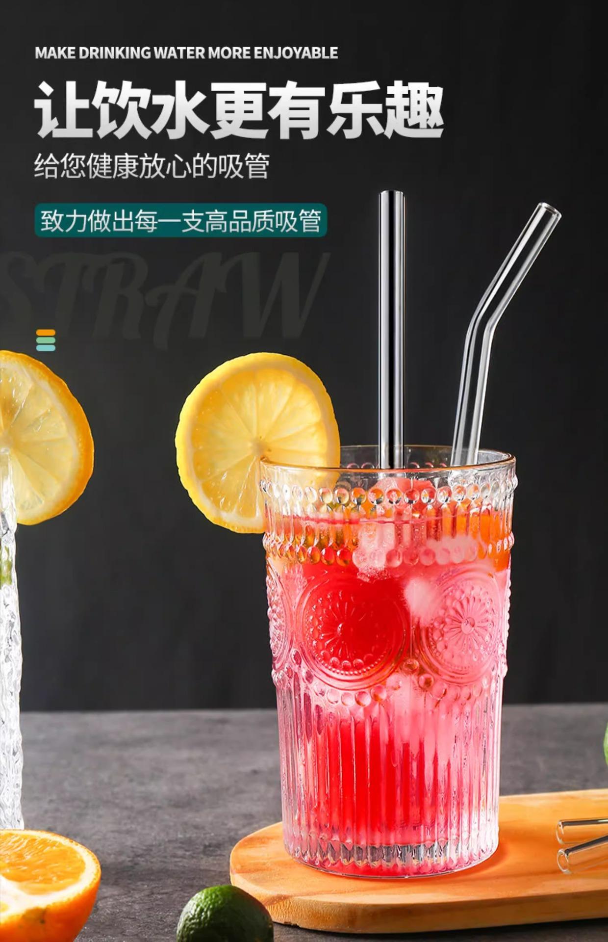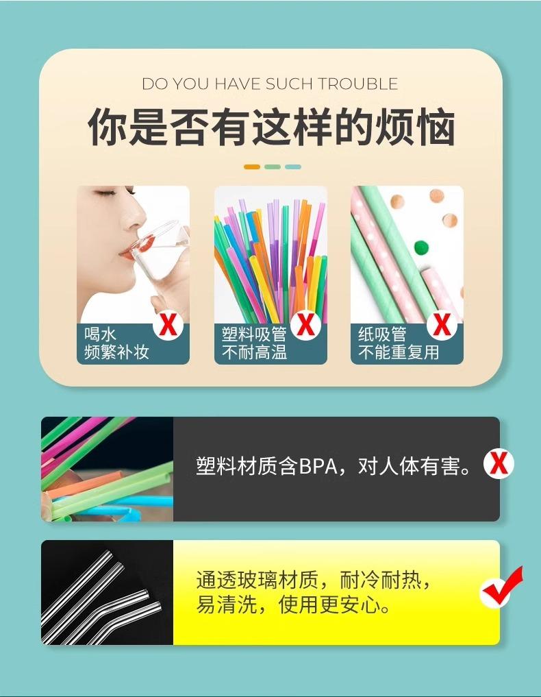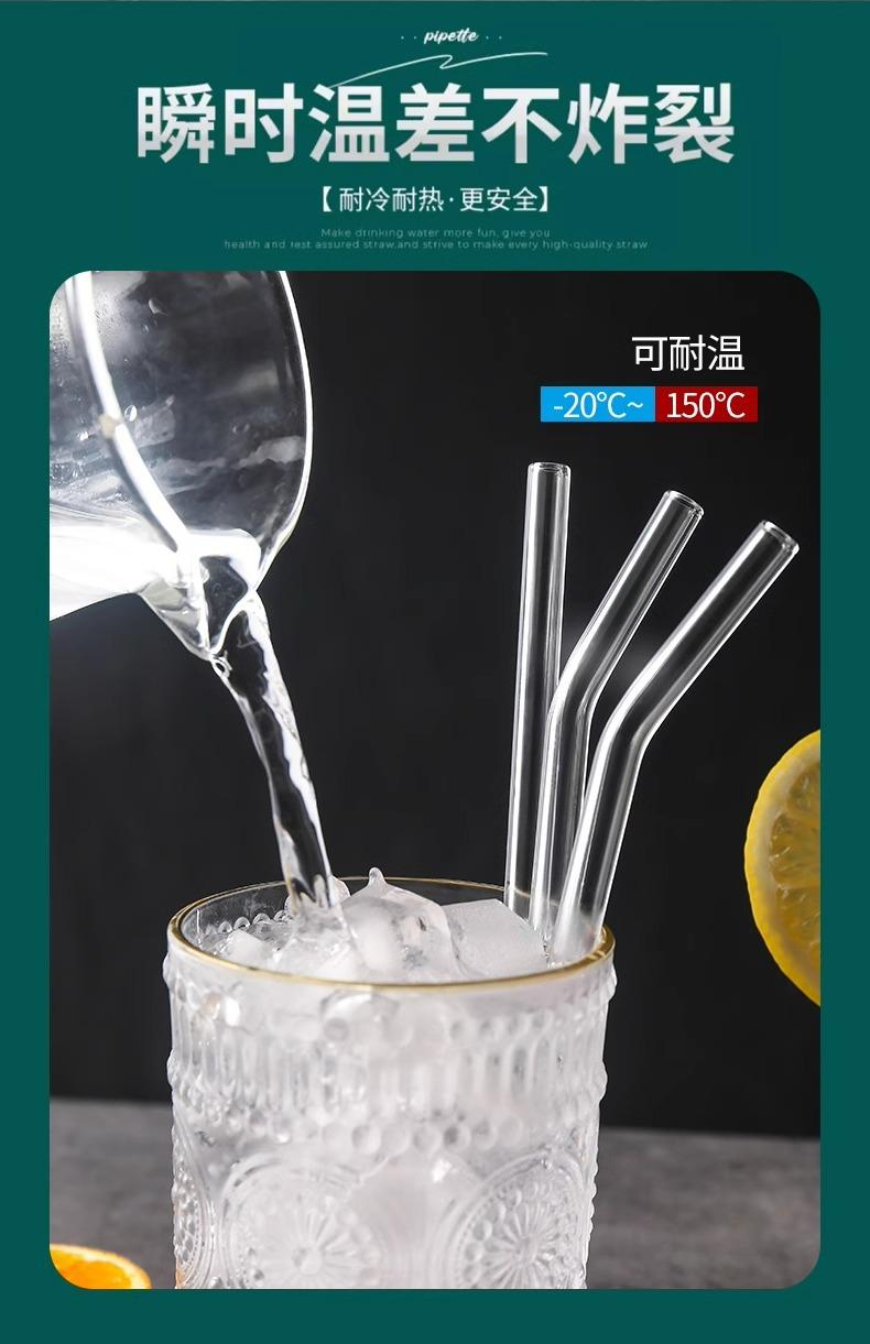 Pajita de vidrio alargada curvada rojo neto grado alimenticio resistente al calor lápiz labial transparente para beber café bebida pajita materna